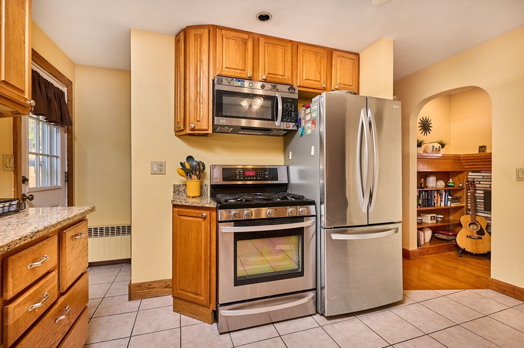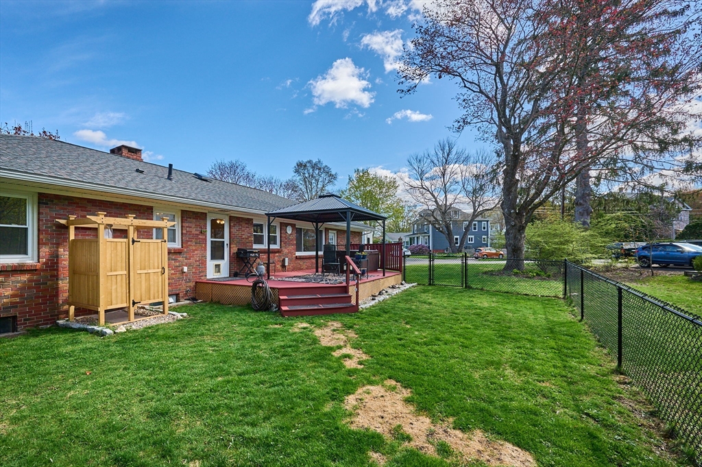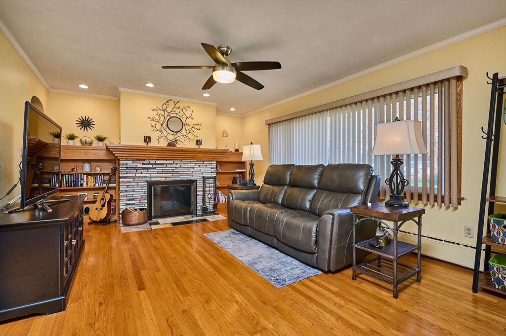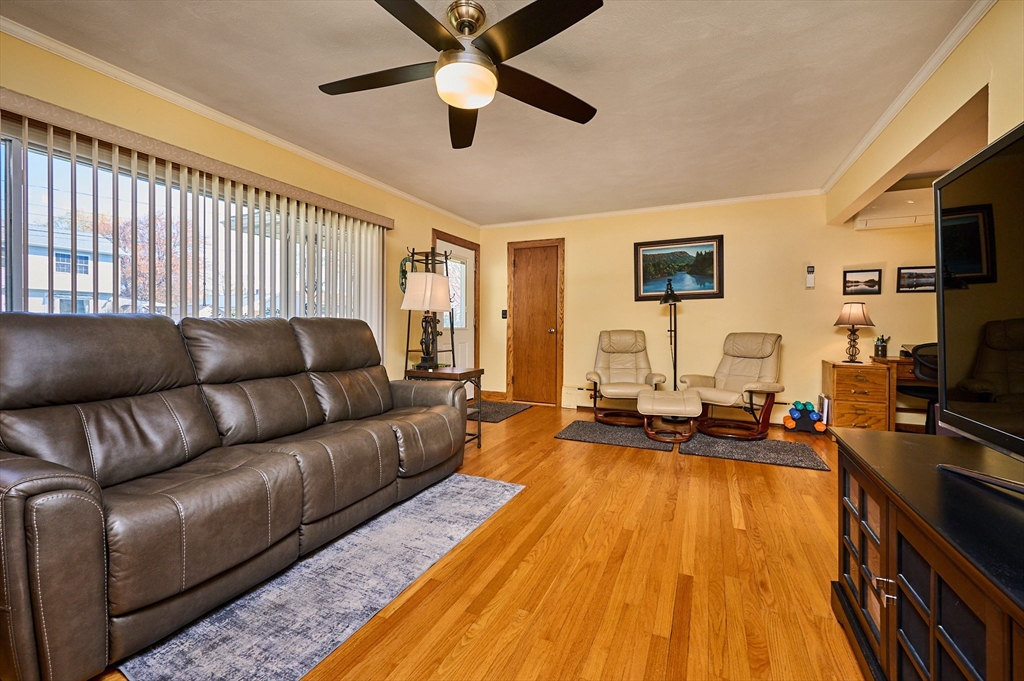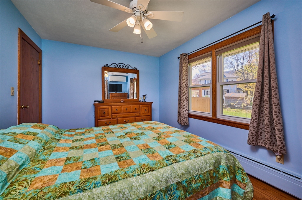 What a great location near the base of Mt. Tom on a quiet street yet close to all that Easthampton has to offer! The spacious living room has hardwood flooring, a beautiful fireplace flanked by custom built-ins, and is open to a good size dining area. The kitchen is nicely updated with granite counters and stainless steel appliances. There are three bedrooms and a full bath that is also tastefully remodeled with a tiled surround. You will enjoy your outdoor time with a rear deck that leads to a spacious, fenced yard with a hot tub and outdoor shower. Some of the recent updates include a new roof (10/23) with a solar powered vent fan & transferable warrantee, granite countertop in kitchen, remodeled bath with tiled shower, attic insulation and perimeter sealing, newer driveway, and Mini Splits for efficient cooling or heating. All in a convenient, peaceful setting! OPEN HOUSE Sun. April 26, 11 to 12:30.