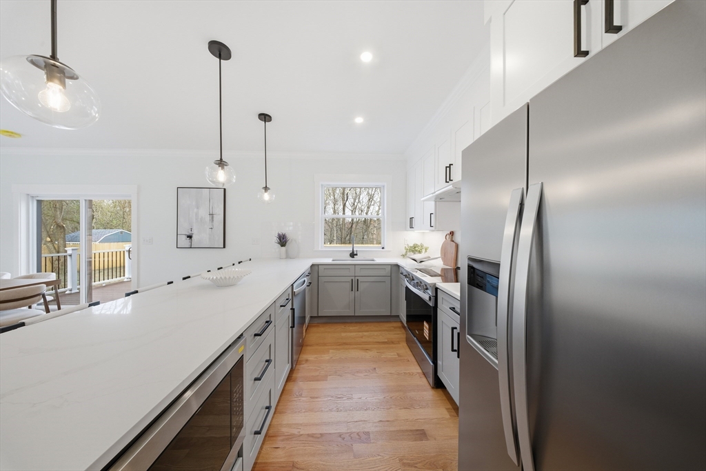 Be the first to live in this brand-new home in desirable North Framingham. Enjoy low-maintenance living with no major repairs or upgrades needed. This thoughtfully designed property features 4 bedrooms, including a spacious primary suite with walk-in closet and private bath. The open-concept layout seamlessly connects the kitchen, living, and dining areas; perfect for everyday living and entertaining. The kitchen will feature elegant quartz countertops. All bedrooms are located on the second floor with generous closets. Bathrooms offer stylish tile flooring. Step out through double screened doors to a large composite deck overlooking a private, fenced backyard with a remodeled shed. Additional highlights include a one-car garage, energy-efficient heat pump with central air, electric fireplace, hardwood flooring, durable HardiePlank siding, and 9’ ceilings on the first floor with 8’ ceilings above. Very conveniently located near Restaurants, shops and more!