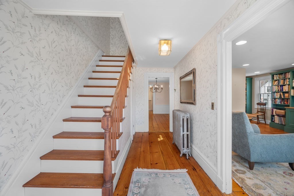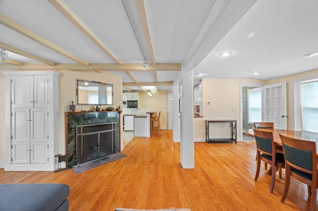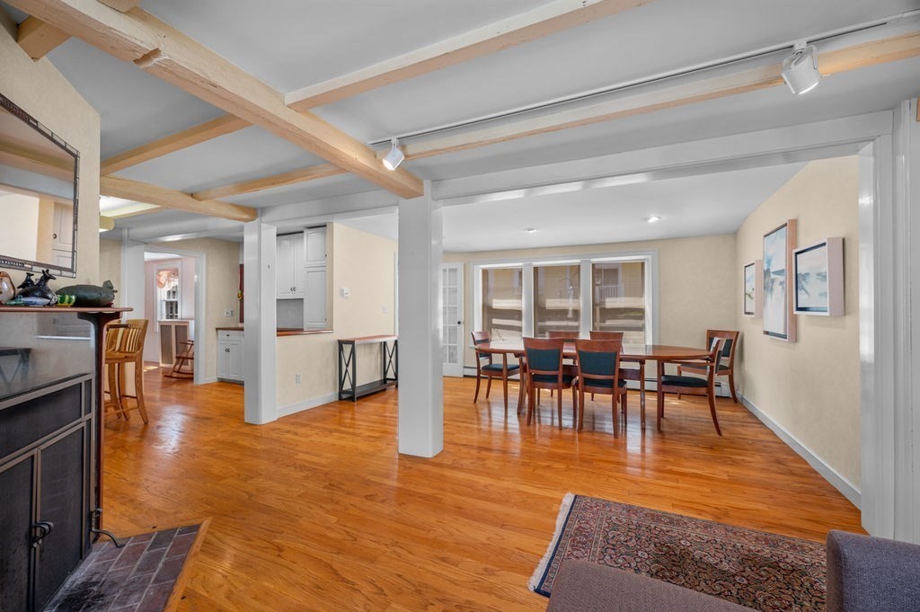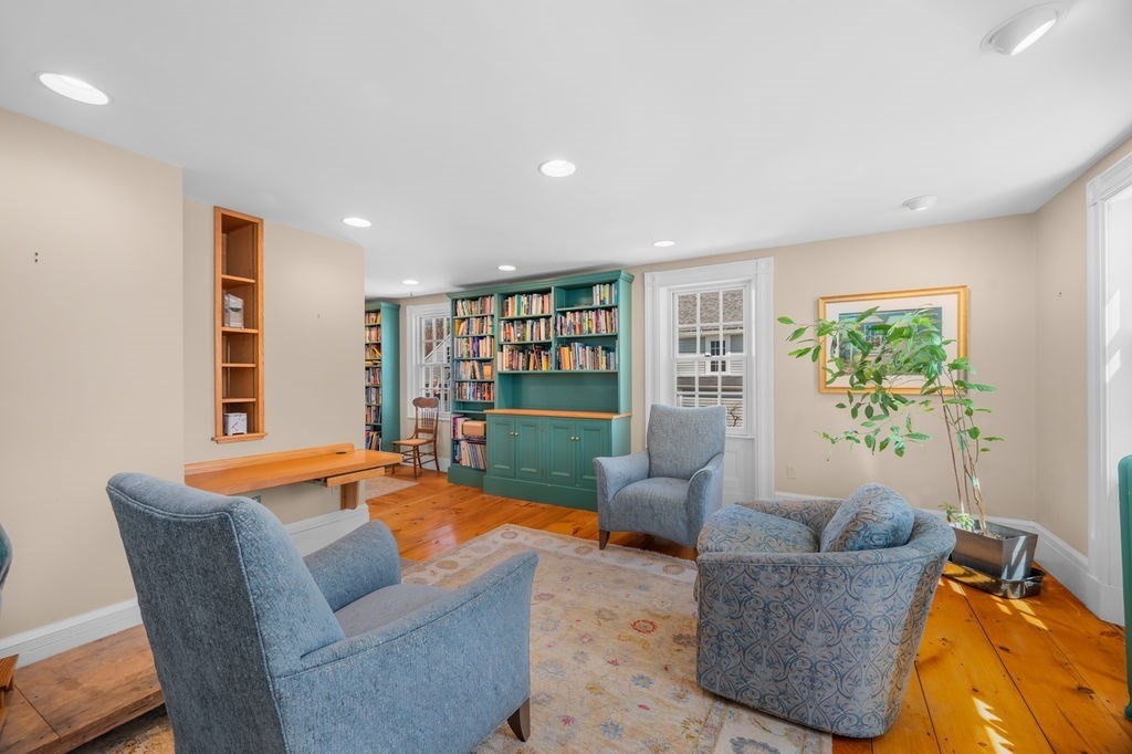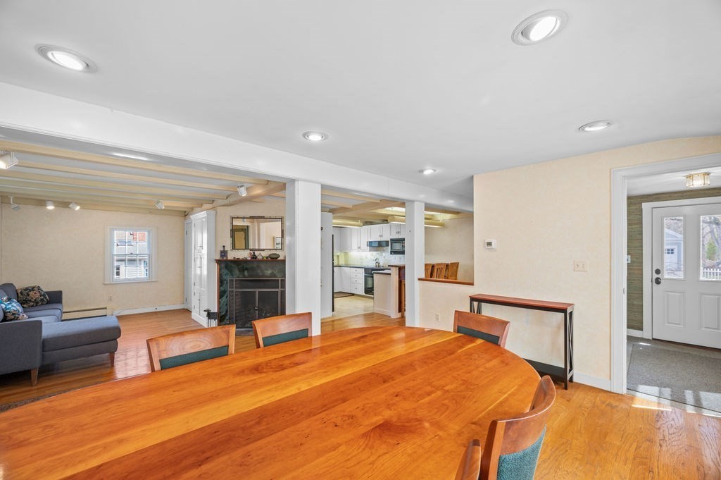 Welcome home to 104 River Rd! On a corner lot in picturesque Merrimacport, this 4 bedroom, 2.5 bath has so much to offer! Through the front door you're led into a bright, welcoming living room, with built-in bookshelves, and a home office. Continue to find a spacious dining room with custom built-ins. The inviting kitchen, packed with cabinetry, opens to a flexible space for sitting by the fire, dining, and enjoying company. A half bath, mudroom and laundry room complete the first floor. Upstairs, you'll find two full baths, and four bedrooms. The attached barn offers garage space, workbench and storage space, and the 2nd floor, currently a woodworking shop, offers endless possibilities. Turn it into a great room, an in-law or primary suite, or keep it as a workshop. The extensive manicured gardens outside offer a reprieve from busy life. Huge walk-up attic also offers expansion possibilities and storage. This special property is not to be missed!