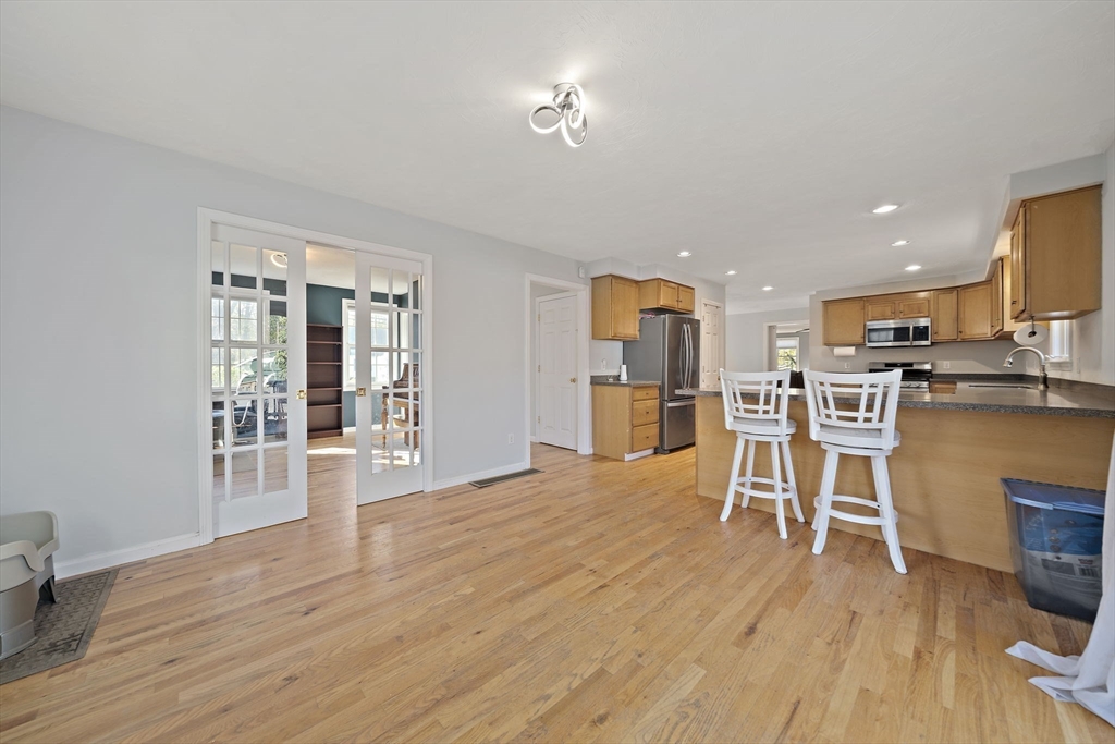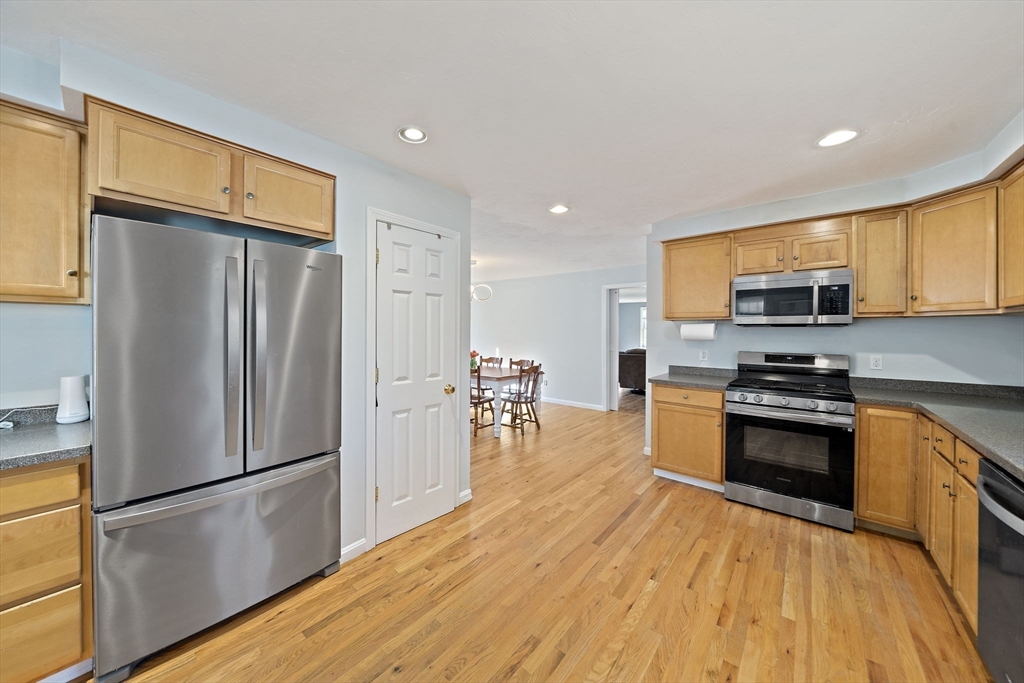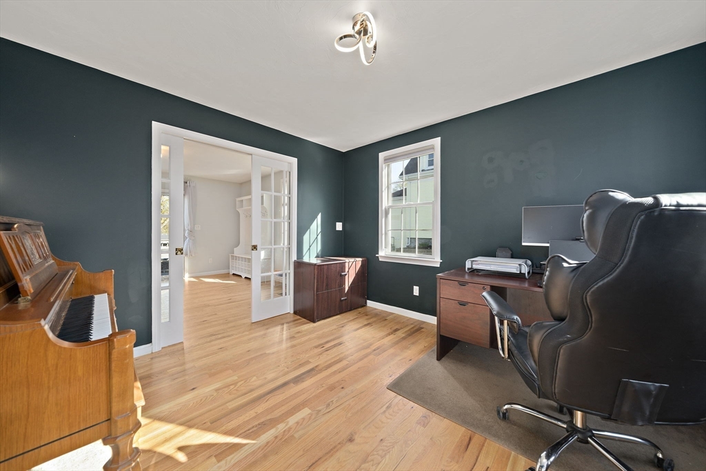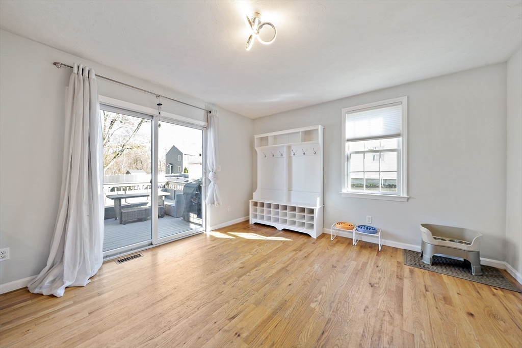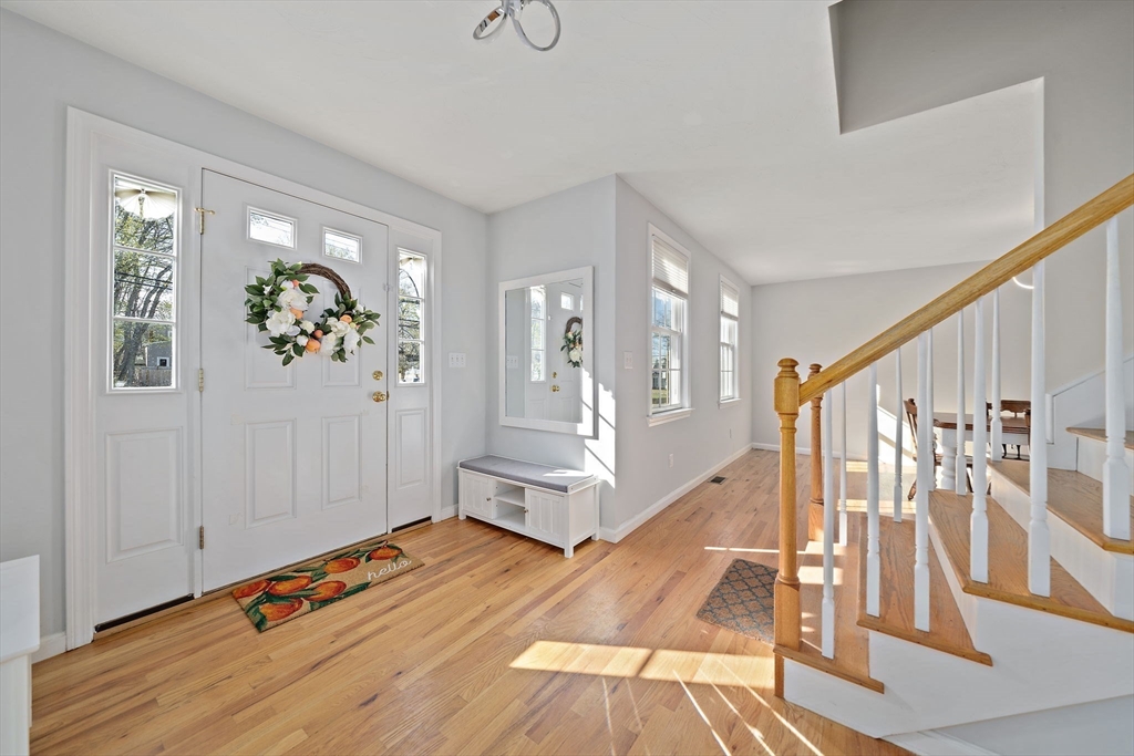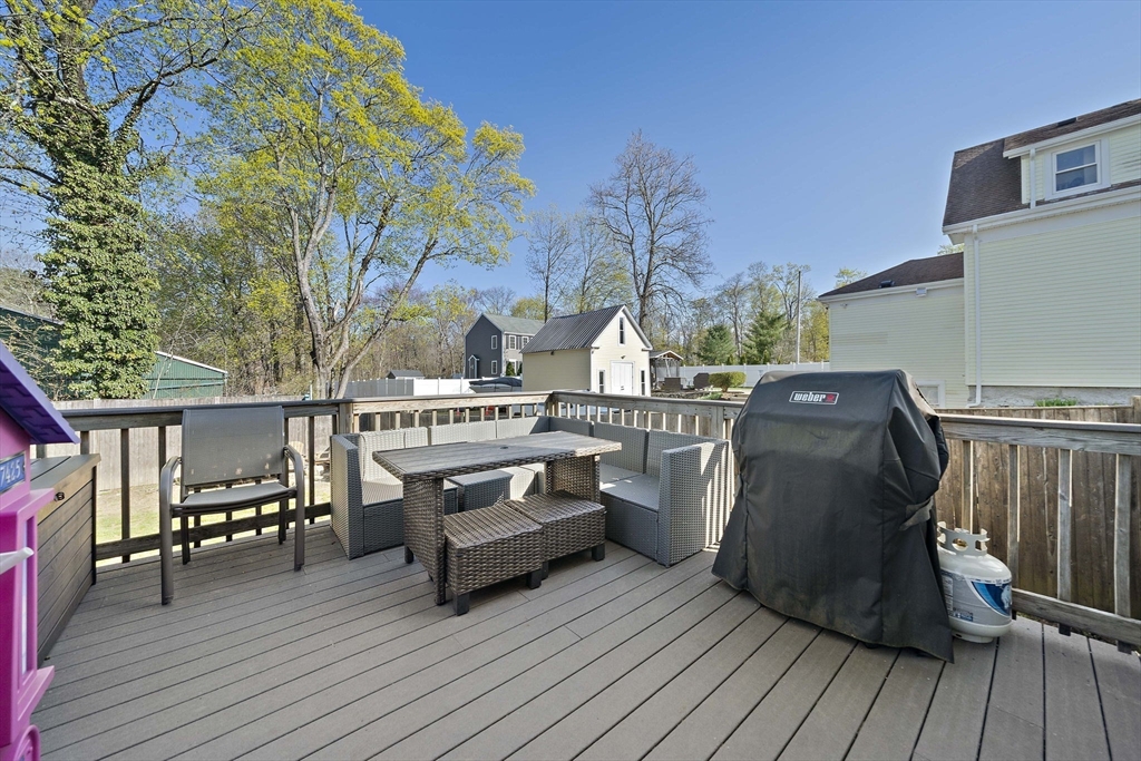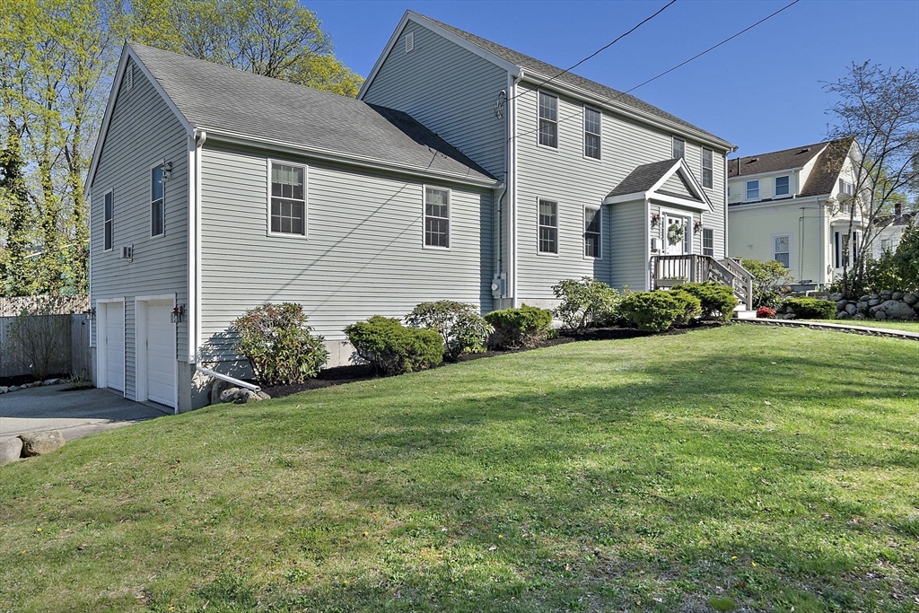 Ideally positioned with effortless access to major routes and the commuter rail, this distinguished Colonial harmonizes elegance with everyday comfort. Rich hardwood floors and a dramatic great room, anchored by a gas fireplace, set a tone of quiet sophistication. The chef-appointed kitchen boasts Corian countertops, stainless steel appliances, and a breakfast bar, opening to a sun-drenched dining area and composite deck overlooking a private fenced yard. A gracious foyer, formal dining room, and main-level office and laundry, add thoughtful flexibility. Upstairs, three generous bedrooms offer ample closet space, while a walk-in attic presents expansion potential. The immaculate basement, both clean and dry, with soaring ceilings, awaits transformation. Central air & a 2-car garage are additional perks! Meticulously maintained, this residence delivers timeless architecture and modern convenience. Open Houses on Saturday, 4/25 and Sunday 4/26, from 12-2pm. Private showings upon request.
