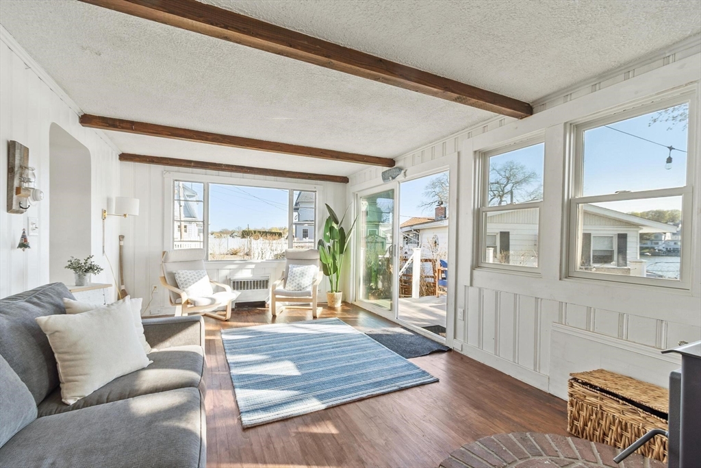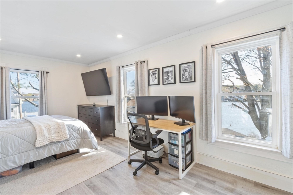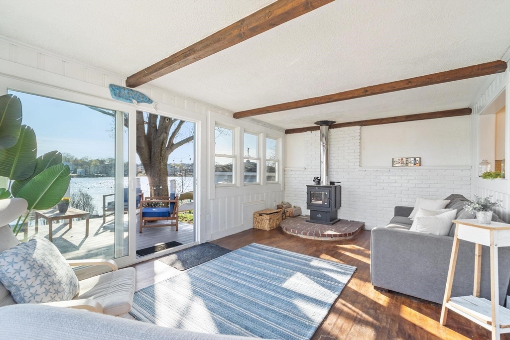 Enjoy peaceful waterfront living on Flax Pond with all the conveniences of Wyoma close by. Welcome to 10 Lake View Place. This inviting home offers the perfect blend of comfort and functionality, featuring three bedrooms, two full bathrooms, a partially finished basement, and versatile bonus rooms with scenic views overlooking Flax Pond. Step outside to a spacious backyard that leads directly to your private dock, ideal for enjoying kayaking, paddle boarding, fishing, and other waterfront activities. In the winter months, the pond transforms into a perfect setting for ice skating and pond hockey. After a day outdoors, head inside through the picturesque rear sliding doors and warm up beside the brand-new wood-burning stove, creating a cozy retreat year-round. A rare opportunity to enjoy four-season waterfront living while remaining conveniently located near everything the North Shore has to offer.