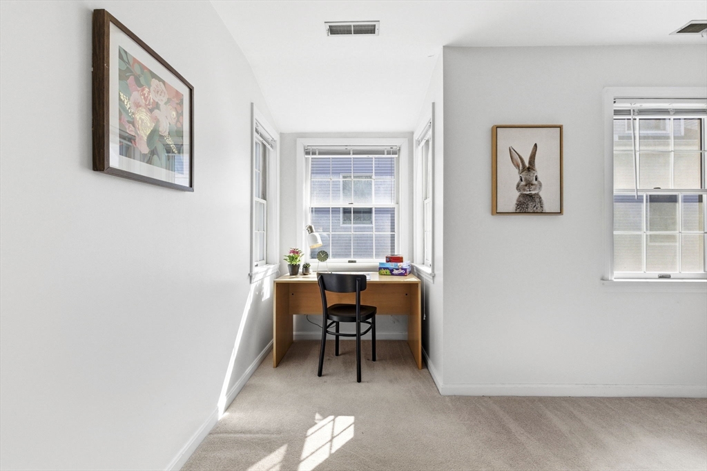 Welcome home to 59-R Union Street—one of Brighton's most charming enclaves. This 1987 townhome features 3 beds / 2.5 baths, ~2,043 sqft across 3 thoughtfully designed levels w/ assigned parking. As you enter, you'll love the open plan on the main level w/ open-concept living/dining, hardwood floors, granite counters, s/s appliances & a convenient half bath along w/ a tucked-away in-unit washer/dryer. Head upstairs; you'll find two equally sized bedrooms sharing a modern full bath. The entire top floor is dedicated to a spacious primary suite w/ a full bath & private roof deck. Central A/C, partially finished lower level & private outdoor space. Set within a boutique 17-unit community, just minutes from the Green Line, Brighton Center, Chestnut Hill Reservoir & Boston College. A rare combo of space, convenience & parking in a prime Brighton location.