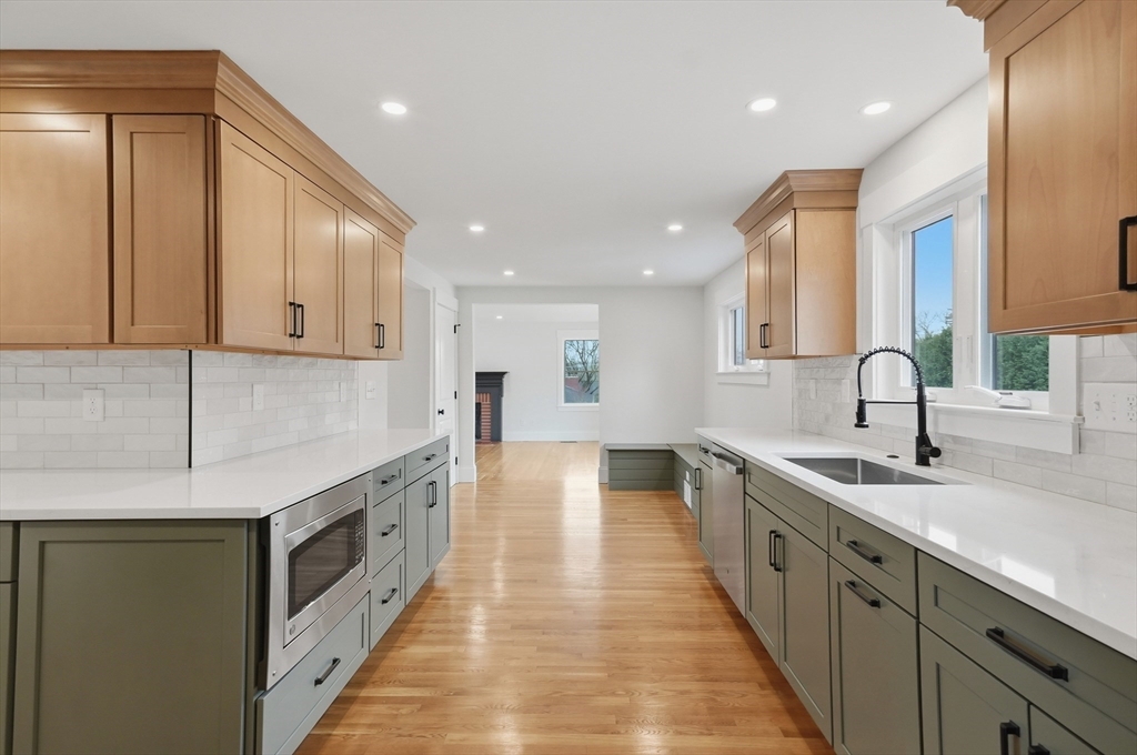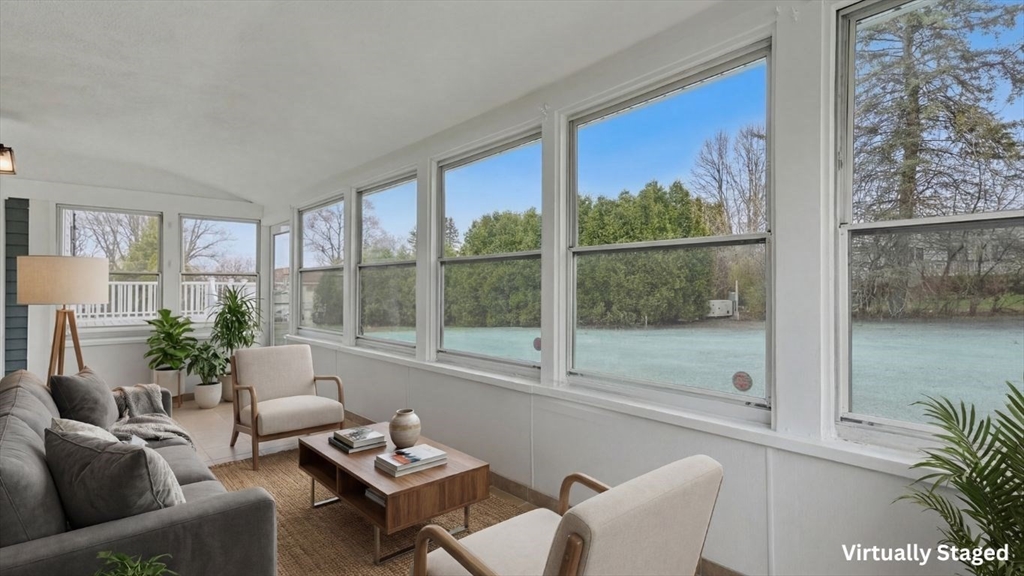 Discover modern luxury in this stunning, LIKE NEW, 3BR, 3.5BA Colonial in Lowell’s coveted Belvidere section. Completely renovated from top to bottom, this home blends designer aesthetics with modern systems. The main level shines with hardwood floors and recessed lighting, featuring a cabinet-packed custom kitchen with stainless appliances and a front-to-back living room with a cozy fireplace and slider to your new composite deck. Entertain in the formal dining room or relax in the bright enclosed porch. The second floor hosts laundry, full bath and three bedrooms, including a primary sanctuary with a walk-in closet and a "wow-factor" tiled en suite. The lower level adds flexible living space with another full bath—perfect for a gym or office. Outside, enjoy NEW Louisiana Pacific siding, a new paved driveway, and great curb appeal. With Central Air, 2 car garage and high-end upgrades throughout, there are too many details to list. This move-in-ready gem is a must-see!