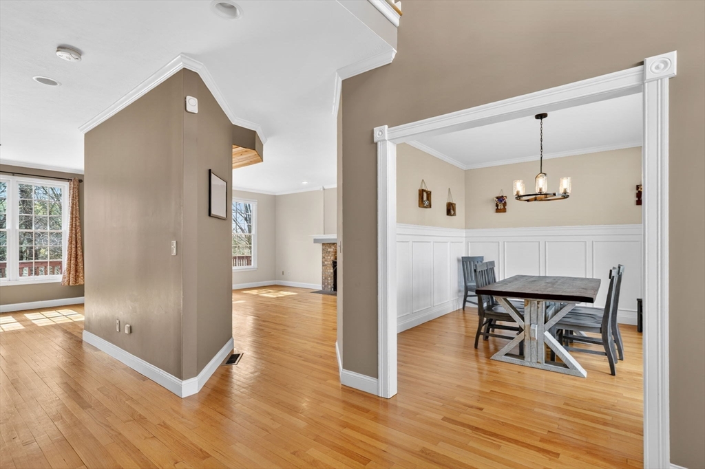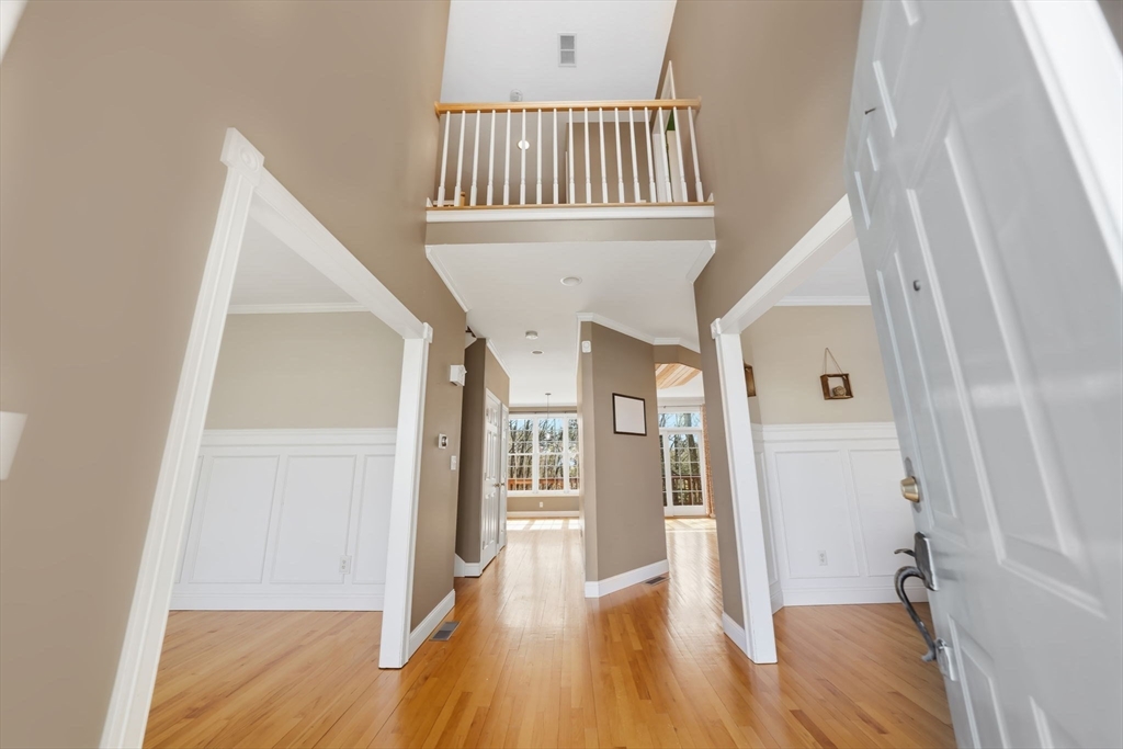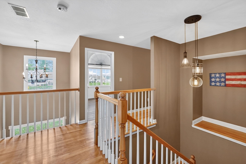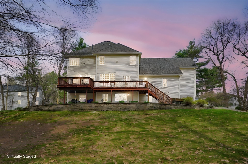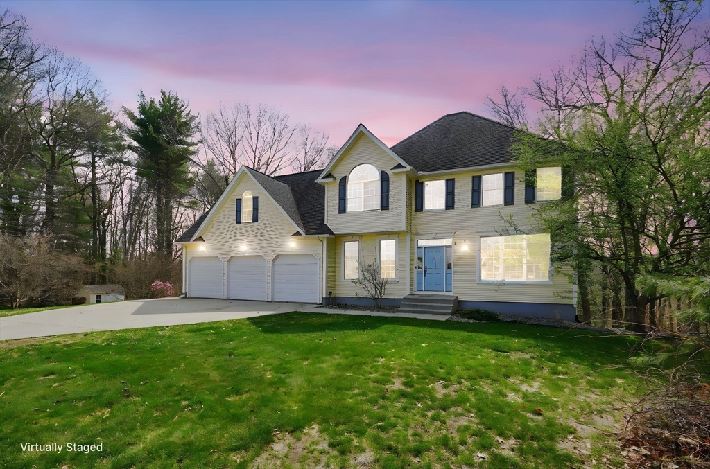 Nestled at the end of a quiet cul-de-sac on an expansive 1.4 acre lot, this stunning home offers over 2,800 sq ft of beautifully designed living space with the perfect blend of comfort, elegance and privacy. This home features 3 spacious bedrooms, 3.5 bathrooms, and a generous 3 car garage. The home is thoughtfully appointed with upscale detail throughout including rich crown molding, custom maple cabinetry, and an open welcoming layout ideal for both everyday living and entertaining. The living room includes a conveniently located wet bar and a cozy wood-burning fire place. The primary bedroom features an en-suite bathroom complete with a relaxing whirlpool tub, dual vanities, and a spacious walk-in closet. Step outside to enjoy the beautiful patio overlooking the expansive grounds, providing a peaceful setting for outdoor dining, entertaining, or simply relaxing in your own private oasis. This exceptional property is a true testament to luxury living.
