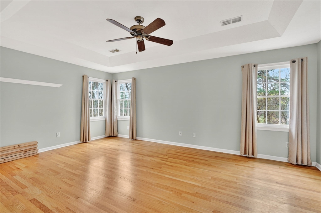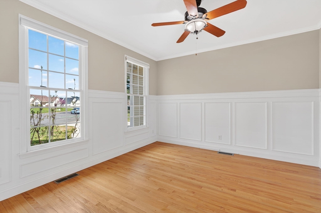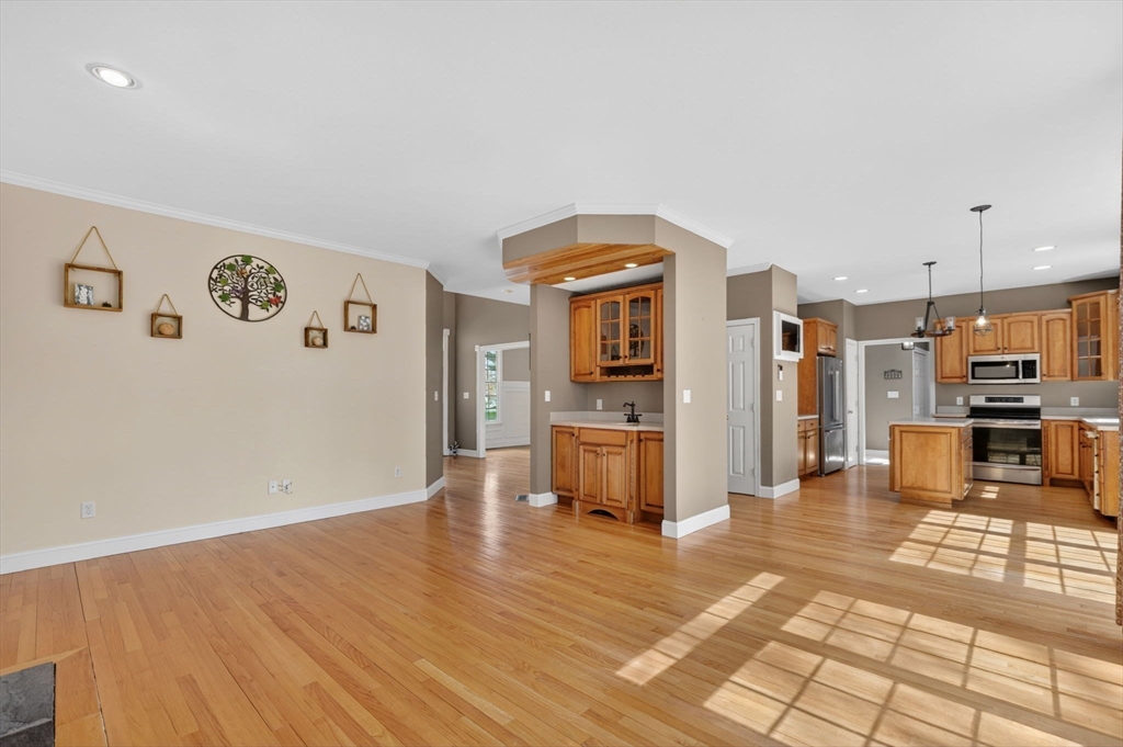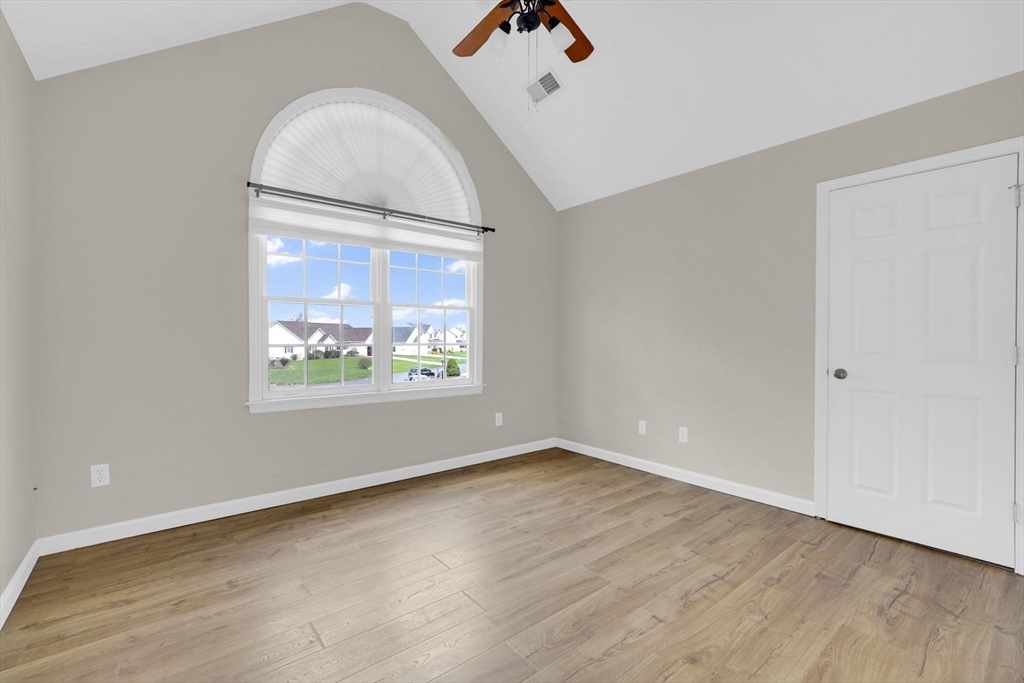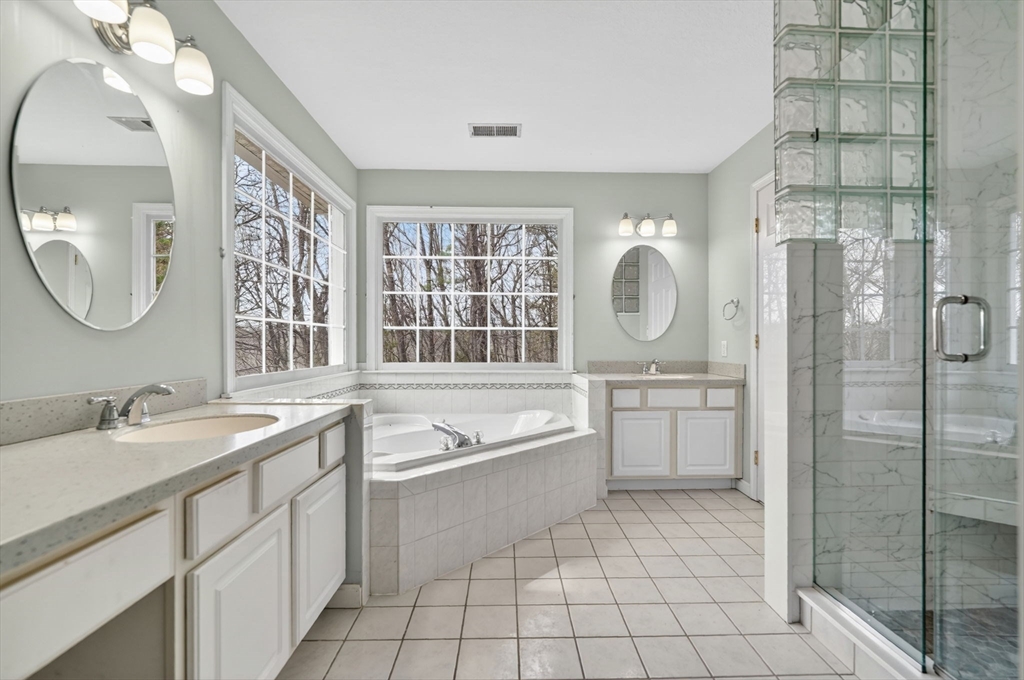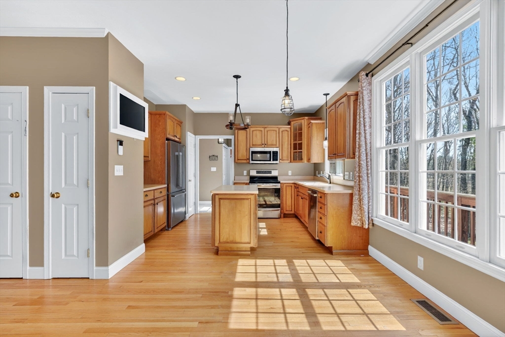 Nestled at the end of a quiet cul-de-sac on an expansive 1.4 acre lot, this stunning home offers over 2,800 sq ft of beautifully designed living space with the perfect blend of comfort, elegance and privacy. This home features 3 spacious bedrooms, 3.5 bathrooms, and a generous 3 car garage. The home is thoughtfully appointed with upscale detail throughout including rich crown molding, custom maple cabinetry, and an open welcoming layout ideal for both everyday living and entertaining. The living room includes a conveniently located wet bar and a cozy wood-burning fire place. The primary bedroom features an en-suite bathroom complete with a relaxing whirlpool tub, dual vanities, and a spacious walk-in closet. Step outside to enjoy the beautiful patio overlooking the expansive grounds, providing a peaceful setting for outdoor dining, entertaining, or simply relaxing in your own private oasis. This exceptional property is a true testament to luxury living.
