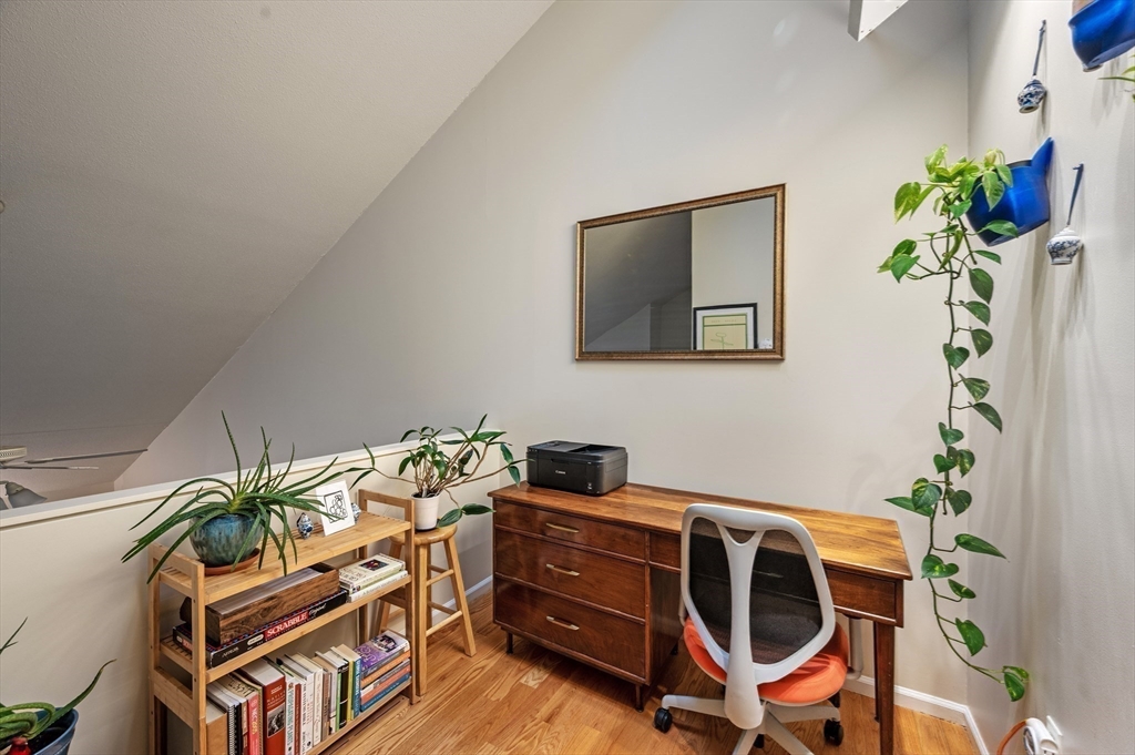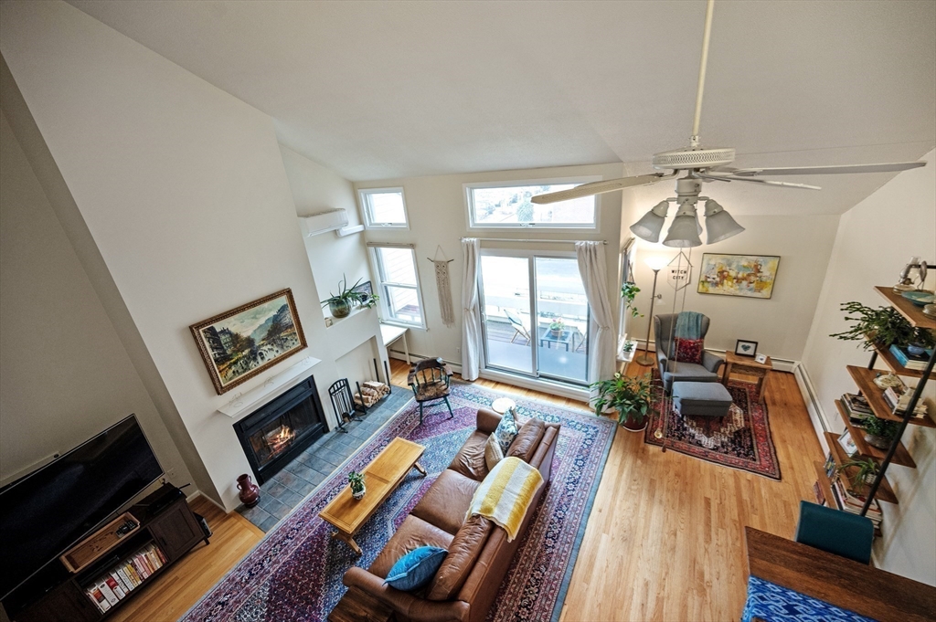 Presenting 28A Federal Street, a fantastic two-story 1488 sq ft condo with 2 bedrooms & 2 baths. This location cannot be beat with access to everything the historic city of Salem has to offer. Enter into the sun drenched living/dining space featuring beautiful hardwood floors, soaring cathedral ceilings, wood-burning fireplace & access to a sunny private deck. An efficient galley kitchen with stainless steel appliances and pantry, as well as a spacious bedroom, laundry & full bath round out the 1st floor. The 2nd floor showcases an incredible primary suite with wood floors, cathedral ceilings, double closets & ensuite bathroom. Additionally there is a wonderful loft space perfect for a home office. One car parking, attic storage, pet-friendly building, condo fee that covers heat & hot water, all in well-run association. Incredibly convenient to shopping, dining & the culture offerings of the city- all directly across from the commuter rail to zip into Boston. Nothing to do but move in!