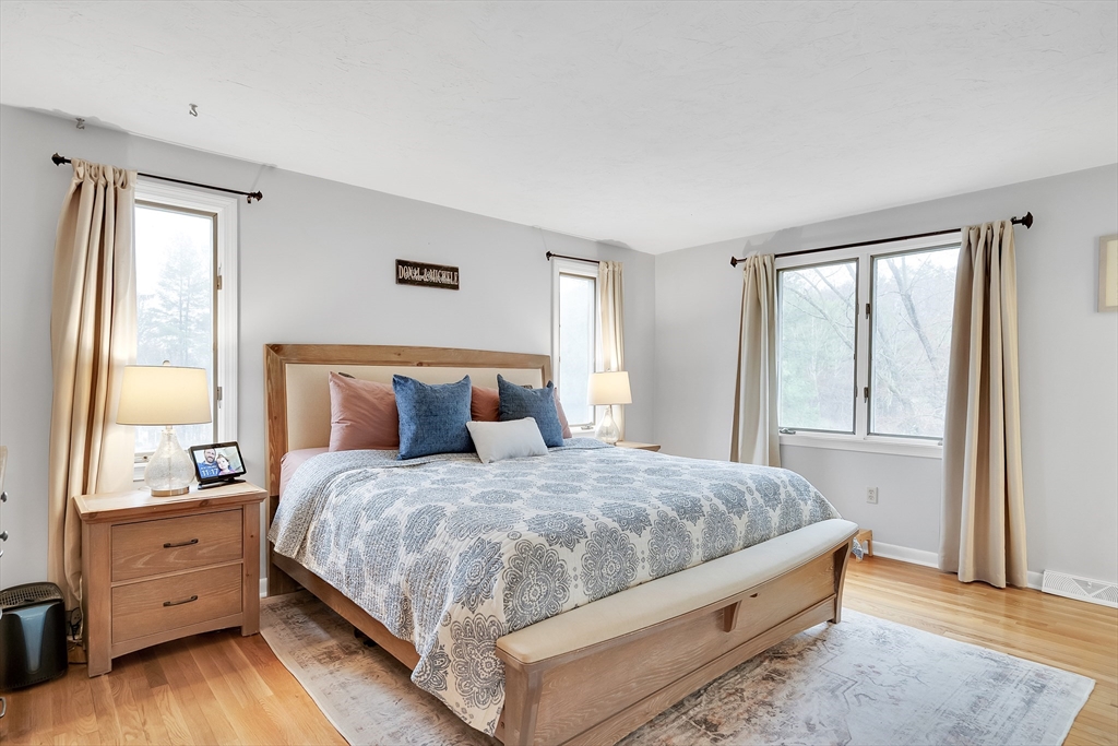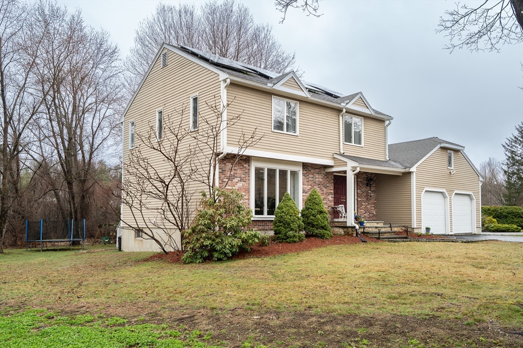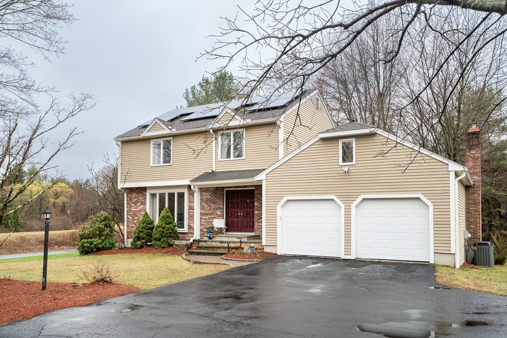 Beautiful Garrison Colonial in the desirable Fiddler’s Green neighborhood of North Framingham. This spacious 4-bedroom, 3.5-bath home offers three levels of comfortable living. The main level features gleaming hardwood floors and a bright, open-concept layout. The granite and stainless steel kitchen flows seamlessly into an inviting fireplaced family room with a cathedral ceiling and sliders that lead to a back deck overlooking a large, level backyard. Upstairs, the primary suite includes a private en suite bath, complemented by three generously sized bedrooms and a full bath. Hardwood flooring has been recently added throughout the second floor. The finished lower level provides excellent flexibility, complete with a 3rd full bath. Additional highlights include central air (2007), owned solar panels for energy efficiency (2016), two rear decks, an attached two-car garage, roof replaced in 2005, and heat in 2003. Come tour this move-in-ready home in a wonderful Framingham neighborhood!