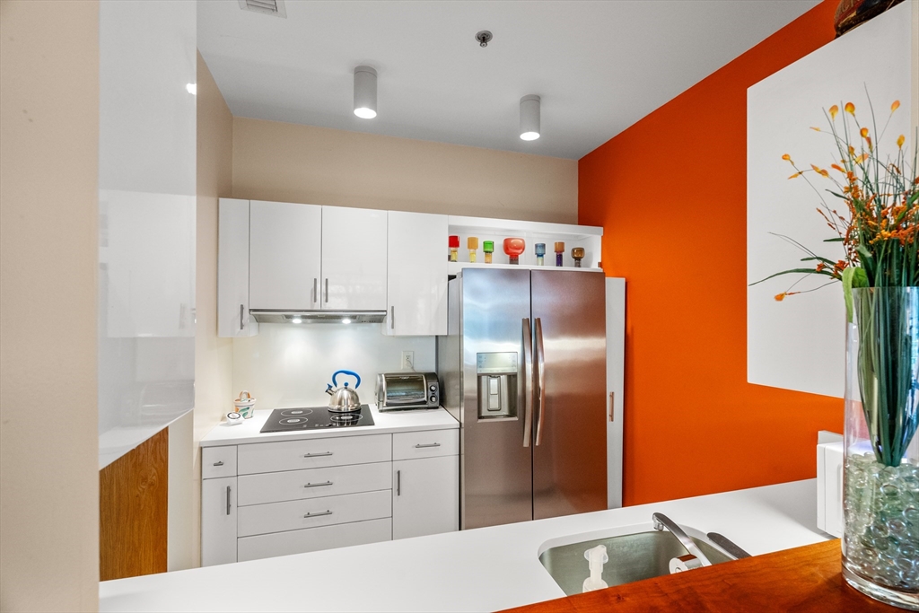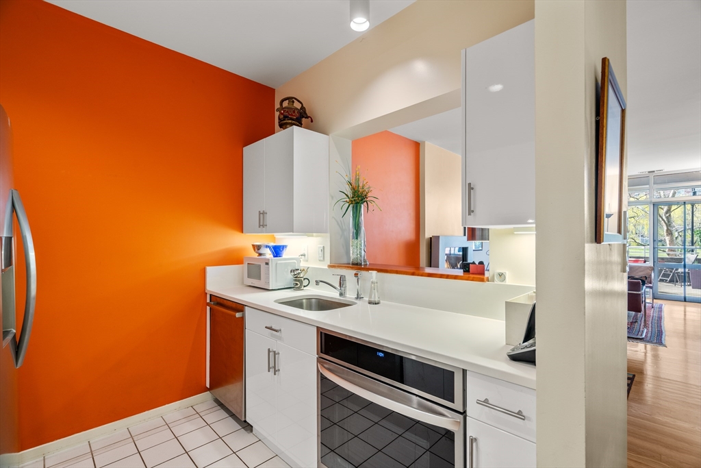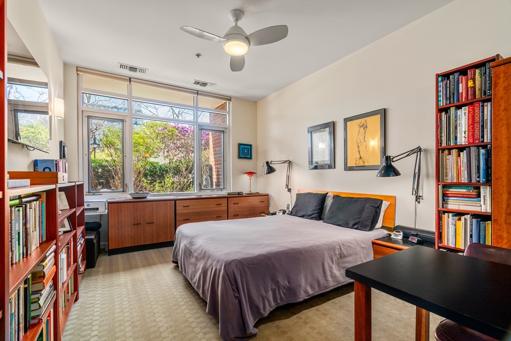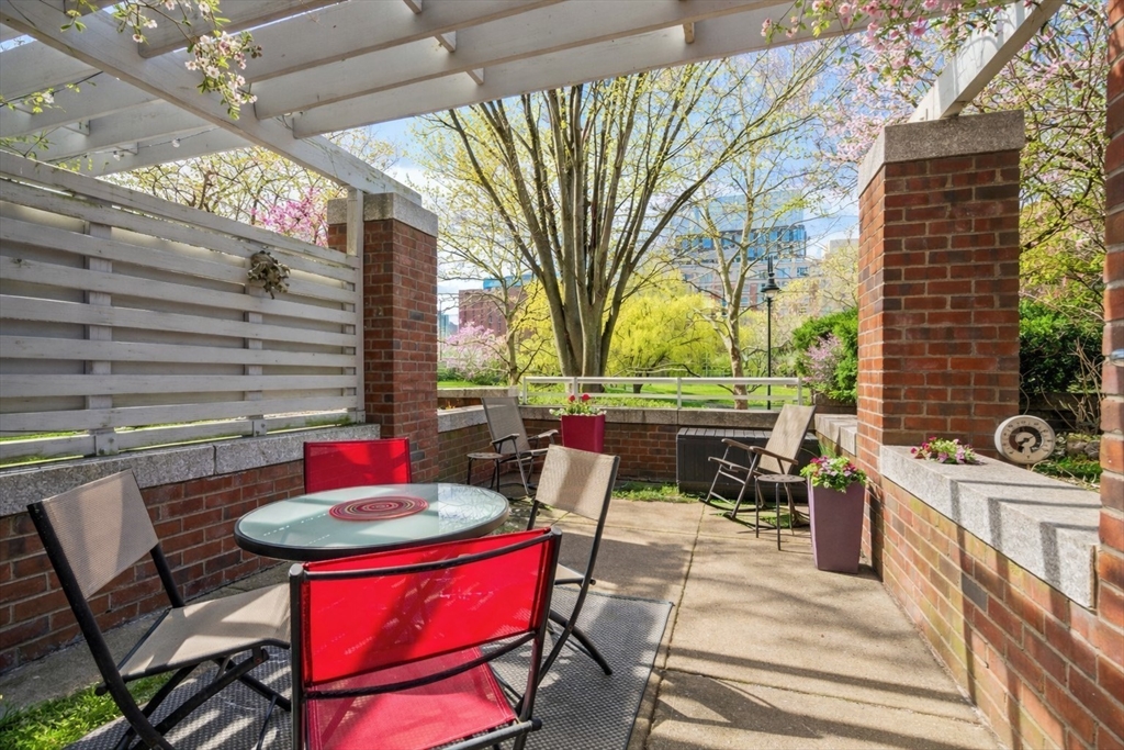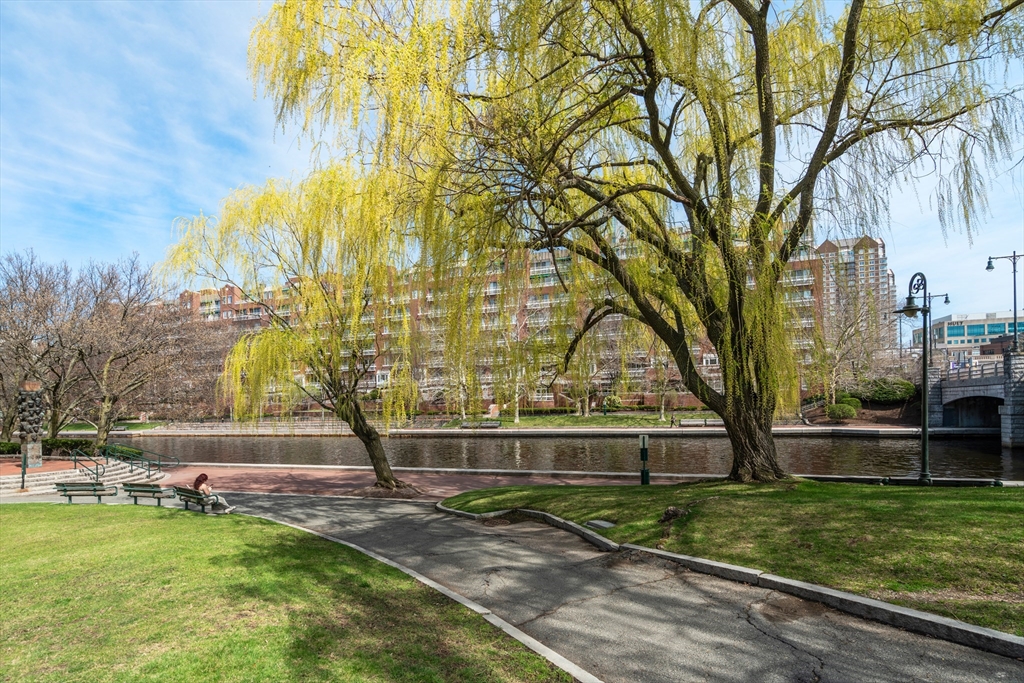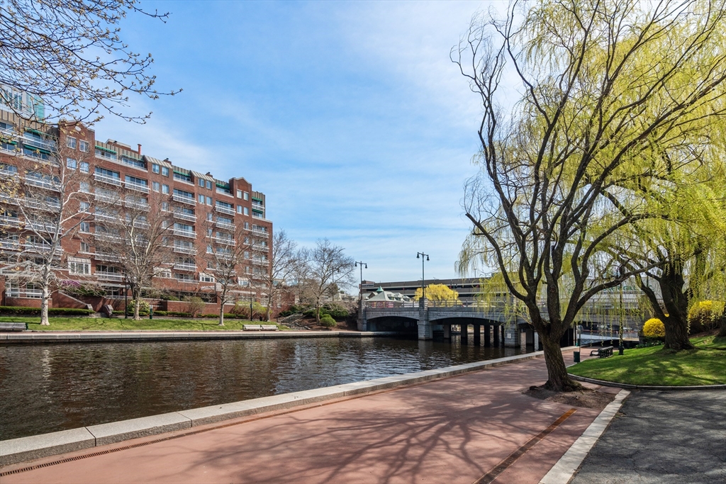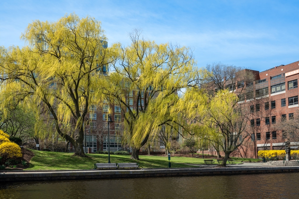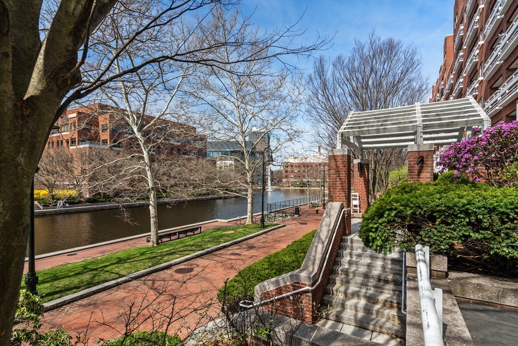 Located in a professionally managed elevator building with 24/7 concierge service, this waterfront residence showcases long views of the canal and fountain. The open living area has floor to ceiling windows and opens to a 200+ sq. ft. private patio with a pergola. The kitchen features modern stainless steel appliances and a pass through to the dining area. The spacious bedroom has two closets, and en-suite bath. There's in-unit laundry as well. Thomas Graves Landing provides many sought-after amenities, including a swimming pool, hot tub, gym, and community room. Additional conveniences include an electric heat pump, deeded underground parking with shared EV charging stations, visitor parking, dedicated storage for small boats & paddle craft, and FirstService Residential's expertise. Located just minutes from Kendall Square, and easily accessible to MGH and Assembly Square. The building is sited only 0.2 miles to the new Lechmere Green Line Station and Cambridgeside Galleria.