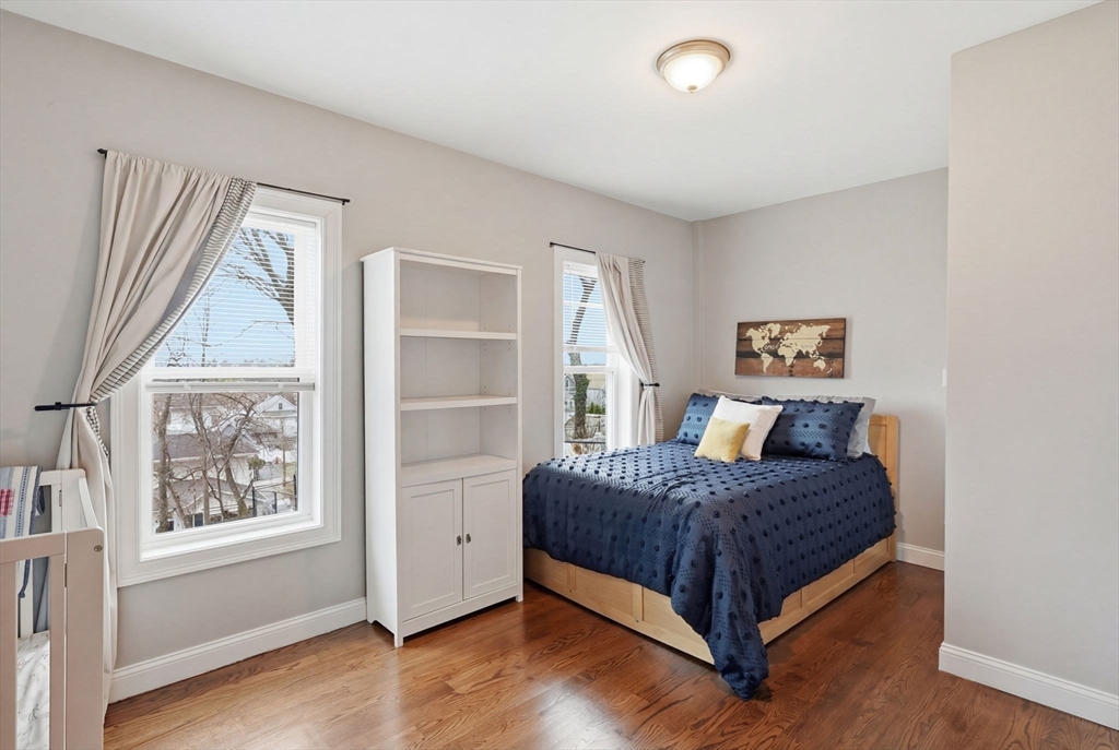 Welcome to 101 Summit Ave, a beautifully updated condo offering ocean proximity and stunning views of the Boston skyline, all just a short walk to Winthrop Beach. The bright, open living area is perfect for both relaxing and entertaining. The updated kitchen features a newly installed oversized island, stainless steel appliances, quartz countertops, white shaker cabinets, and a charming coffee nook for your morning routine. Additional highlights include stained hardwood flooring throughout, an updated tiled bath, in-unit laundry, central AC, and recessed lighting. Step outside to your private deck and take in sweeping views of Winthrop and Boston. Dedicated storage space beneath the home, a large shared yard, and garden area add to the home’s appeal. All just minutes to the beach, local shops, and restaurants. A rare opportunity at this price to enjoy both high-end finishes and an unbeatable coastal location with easy access to the city.