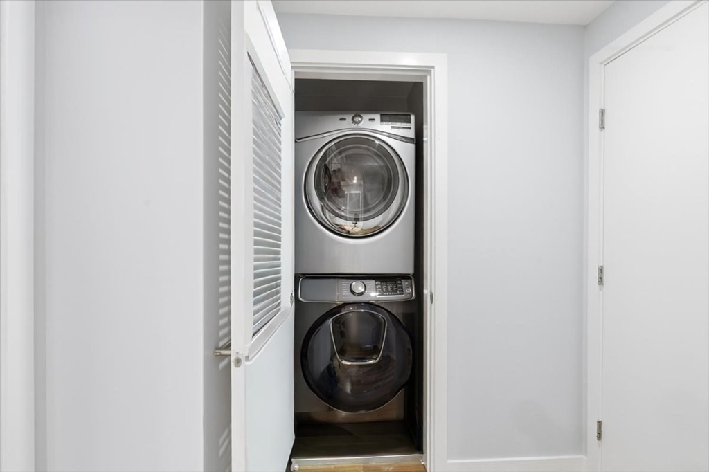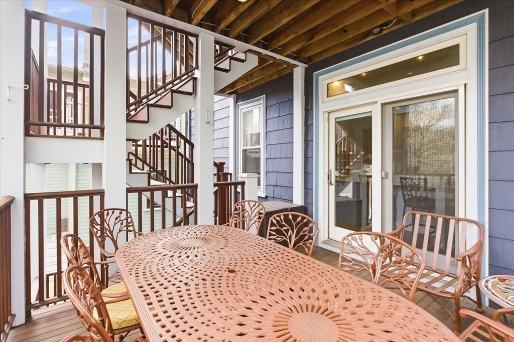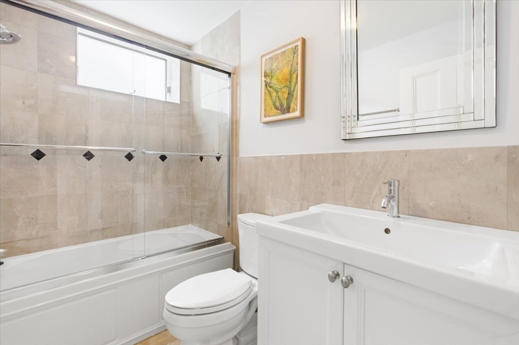 A 1905 Jamaica Plain condo that doesn't ask you to choose. The refresh touched everything that mattered: a rebuilt kitchen with European cabinetry, mother-of-pearl accents, marble counters, and Calacatta tile floors; fresh paint throughout; and a private backyard opened back up after the old bamboo fence came down. The main floor holds the living space, two bedrooms, a full bath, and a private covered deck off the kitchen; the garden-level primary suite is where the rest of your day goes quiet — integrated wardrobes, a radiant-heat marble bath with dual sinks and a jetted tub, and a door that walks out to your own private yard. Not a shared deck. Not a patio. A yard. Central AC, tankless hot water, in-unit laundry, and private oversized storage. One year of rented off-street parking included. Pet-friendly. Steps to Green Street, Centre Street's shops and restaurants, Jamaica Pond, and the Arboretum — the kind of neighborhood that still remembers how to be a neighborhood.