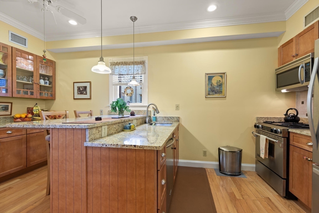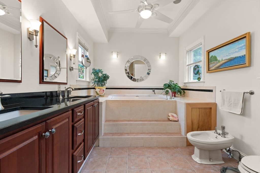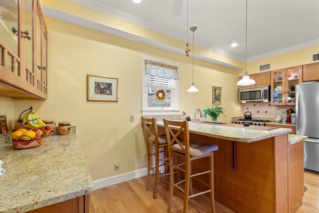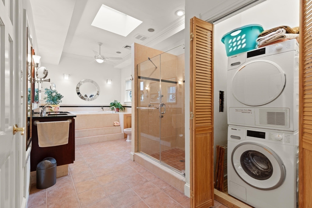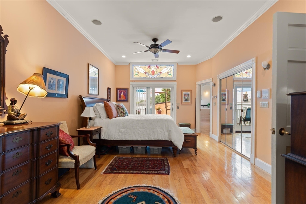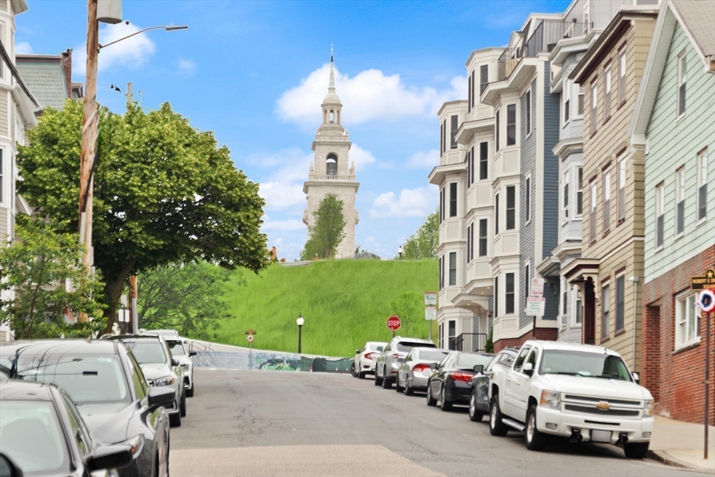 This handsome 2 family has tremendous curb appeal and sits proudly on the edge of Thomas Park. Home has been totally renovated and carefully maintained with attention to detail. Long term owner's pride is evident both inside & out. The upper levels are sure to please. Roomy open living and dining room with gas fireplace, classic built in .ook cases, dental molding and lots of light. Generous size kitchen with breakfast bar, distinctive cabinetry, Jenn Air range and large pantry. Enjoy Al Fresco dining on the deck. The primary bedroom on the 3rd level has terrific space. California closet, X/L magazine quality bath with skylight and Miele washer/dryer. There is also a flexible guest room or office area. Panoramic skyline views from the 500 sf roof deck are ever changing. The rental unit has been freshly painted and shows well. Photos taken prior to tenant moving in. Basement offers good storage. This well located offering is a wonderful place to call home.