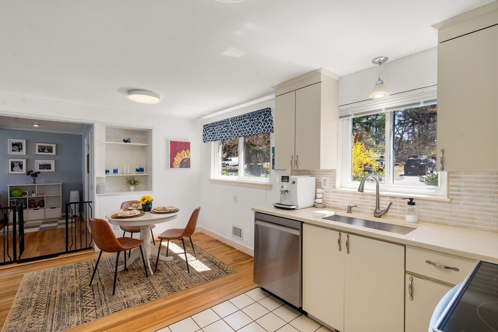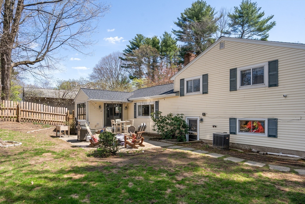 Move right in to this beautifully maintained multi-level home tucked at the end of a quiet cul-de-sac. Enjoy an inviting eat-in kitchen with updated countertops and backsplash, perfect for everyday meals or casual gatherings. The spacious family room is ideal for entertaining or cozy movie nights and has a slider to the outdoors. A separate living room offers flexible use as a sitting area or formal dining room. A full bath completes the first level. Upstairs are three comfortable bedrooms and another full bath. Outdoor enthusiasts will love the large, flat, fully fenced backyard with patio and ample play space, supported by an irrigation system that keeps the lawn lush and green. Additional highlights include AC, one-car garage, and numerous updates: roof (2026), water heater (2024), insulation (2025), refrigerator and oven (2023), washer and dryer (2022). Direct access to the Cochituate Rail Trail and close proximity to Lake Cochituate. Convenient to the Mass Pike and Rt 9