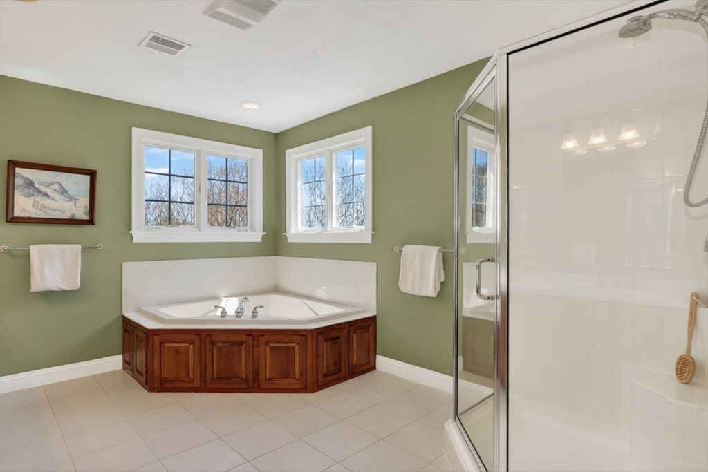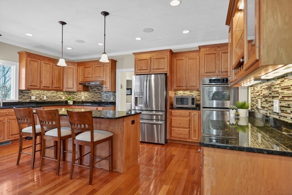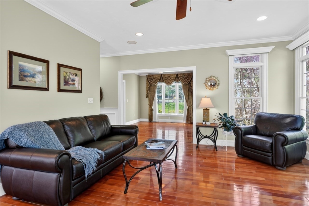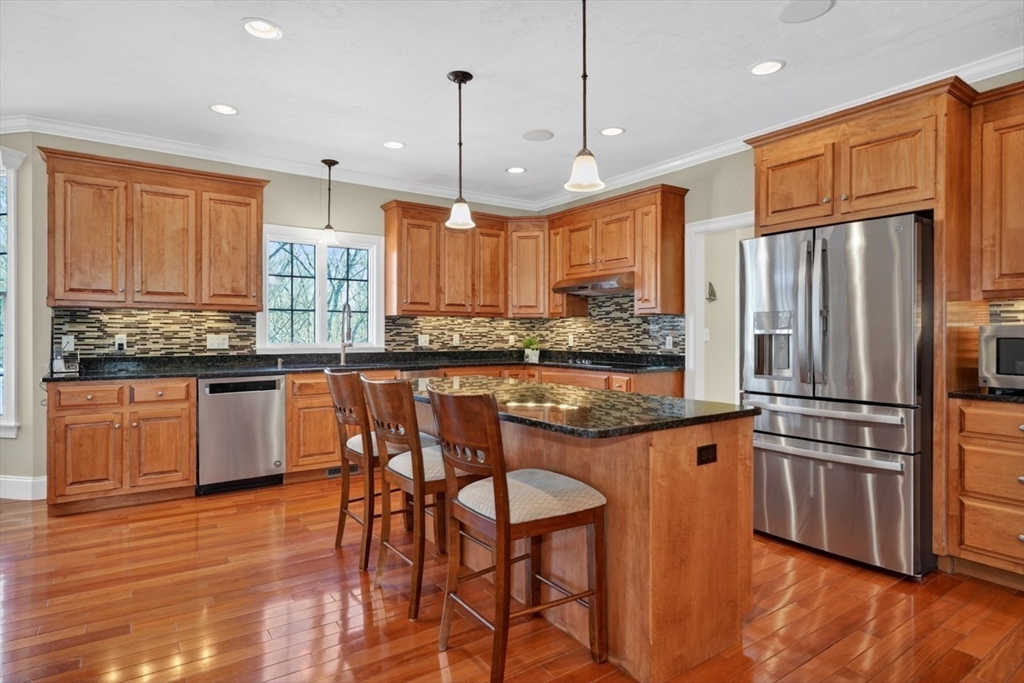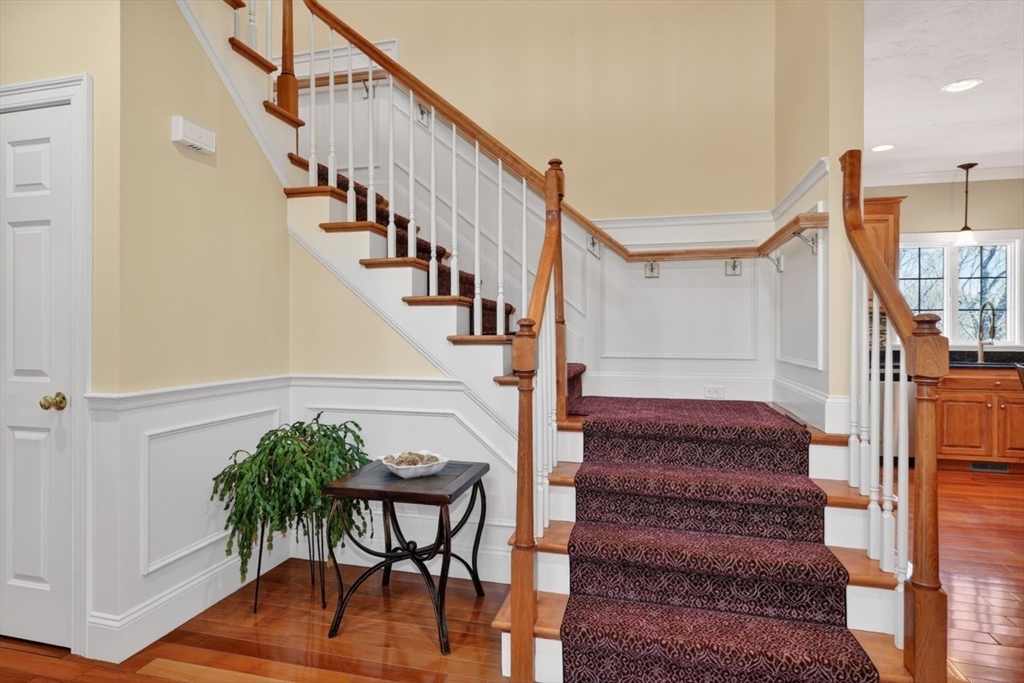 Presenting a thoughtfully designed and impeccably maintained home in Wrentham. Set on two private wooded acres at the end of a cul-de-sac, this 4-bed, 4.5-bath SMART home blends luxury, comfort, and efficiency. The open layout features 11-foot ceilings, travertine tile and Bolivian rosewood floors, granite, custom cabinetry, and crown molding. Smart home controls manage audio/video, security, thermostats, shades, and exterior lighting, with new shades in the living area and breakfast nook. The primary suite offers multiple rooms, a private office, and walk-in closet. The finished walk-out basement includes a surround sound theater, full bath, and yard access. Enjoy a composite deck with plumbed gas grill. Additional highlights include a converted gas fireplace, whole-house generator, water filtration, surge protection, roof de-icing system, newer second-floor carpet, and a 3-car garage with epoxy floors and storage. Do not miss this lovely home and opportunity!