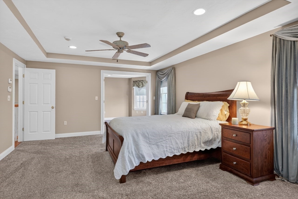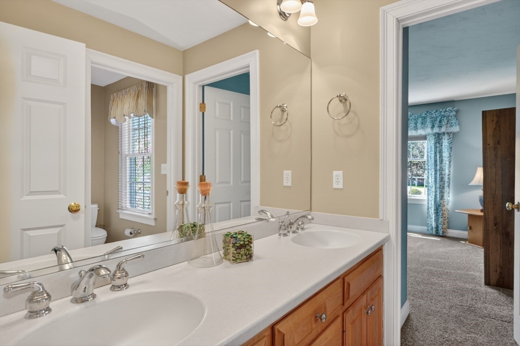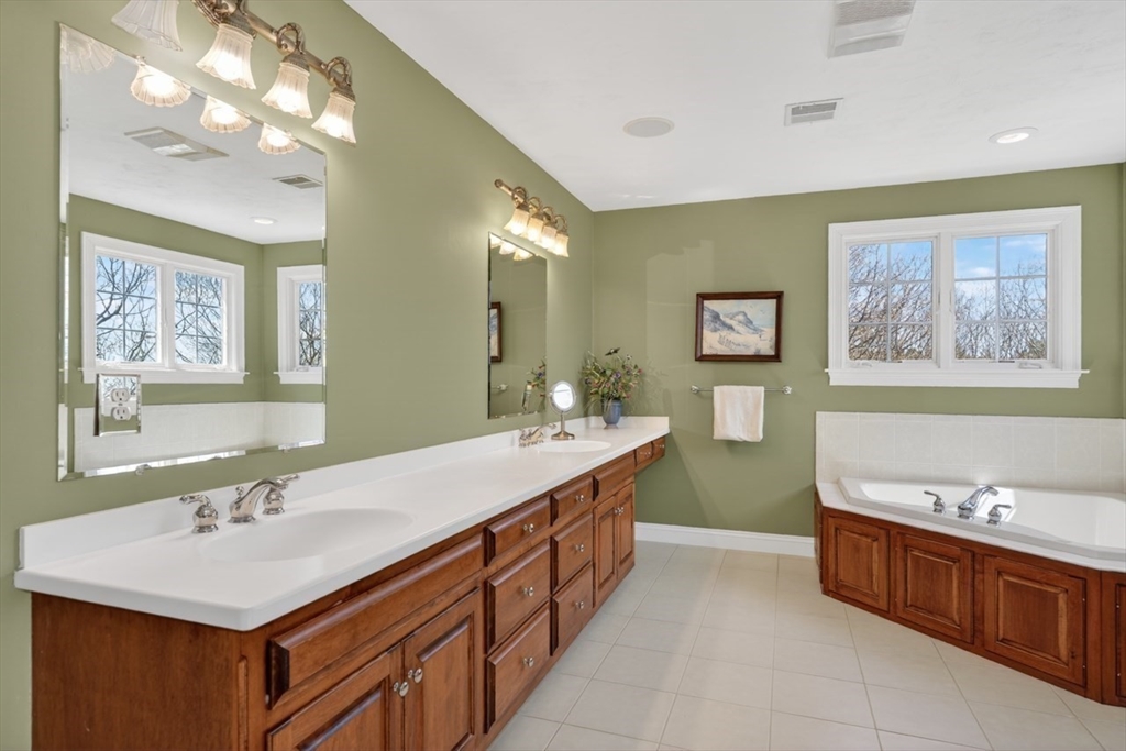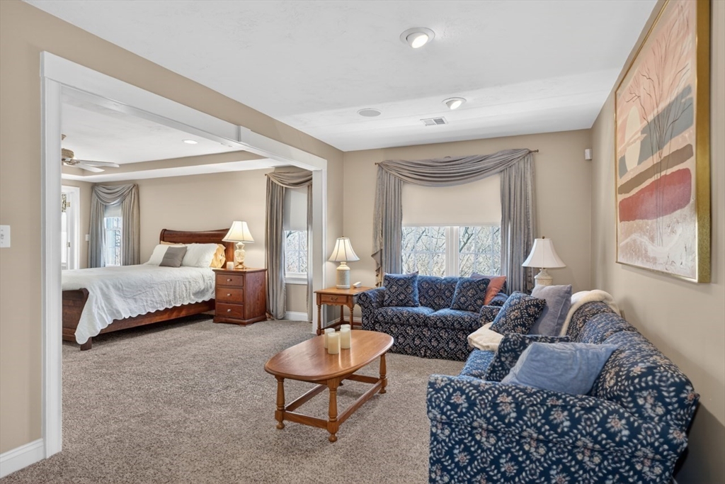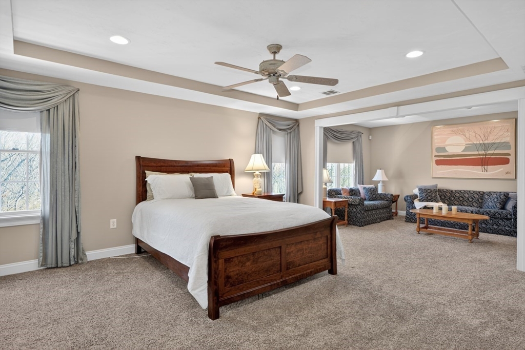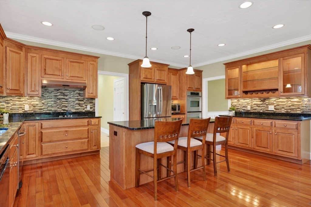 Presenting a thoughtfully designed and impeccably maintained home in Wrentham. Set on two private wooded acres at the end of a cul-de-sac, this 4-bed, 4.5-bath SMART home blends luxury, comfort, and efficiency. The open layout features 11-foot ceilings, travertine tile and Bolivian rosewood floors, granite, custom cabinetry, and crown molding. Smart home controls manage audio/video, security, thermostats, shades, and exterior lighting, with new shades in the living area and breakfast nook. The primary suite offers multiple rooms, a private office, and walk-in closet. The finished walk-out basement includes a surround sound theater, full bath, and yard access. Enjoy a composite deck with plumbed gas grill. Additional highlights include a converted gas fireplace, whole-house generator, water filtration, surge protection, roof de-icing system, newer second-floor carpet, and a 3-car garage with epoxy floors and storage. Do not miss this lovely home and opportunity!