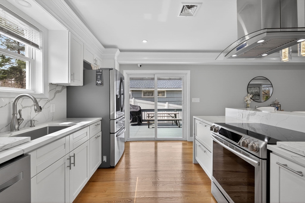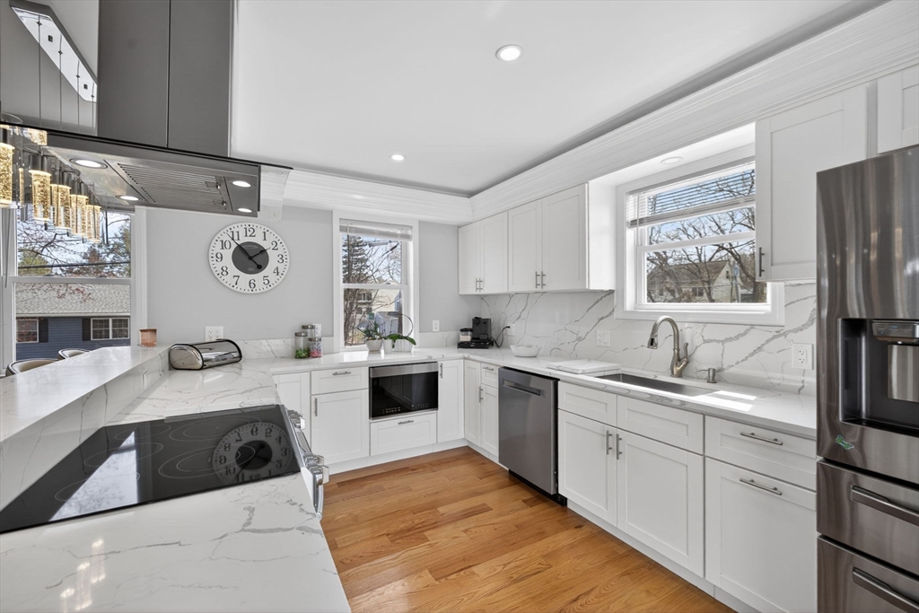 Fully rebuilt (only keeping the original foundation), this beautiful property showcases great craftsmanship and beautiful, modern living. It was designed with style and functionality in mind. On the first floor, be ready to be amazed by the stunning kitchen with elegant quartz countertops, premium finishes, and a seamless open-concept layout that connects kitchen, dining and living areas. A conveniently located laundry on the first floor bathroom adds to the home’s thoughtful design. This home also features 3 bedrooms, 2 full bathrooms on the second level, with 2 of the bedrooms featuring its own spacious walk-in closet. The finished walkout basement provides additional versatility and direct access to the backyard, offering endless possibilities. The property also features a fenced in yard with a remote controlled gate for privacy and convenience. This is a rare opportunity to own a truly turnkey, like-new home where timeless elegance meets modern convenience