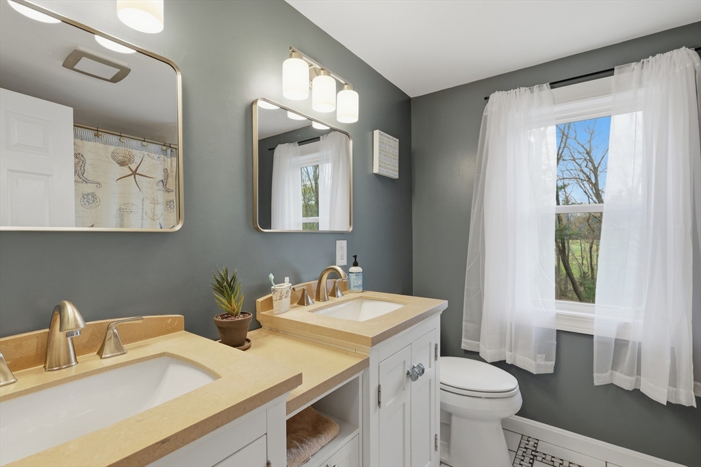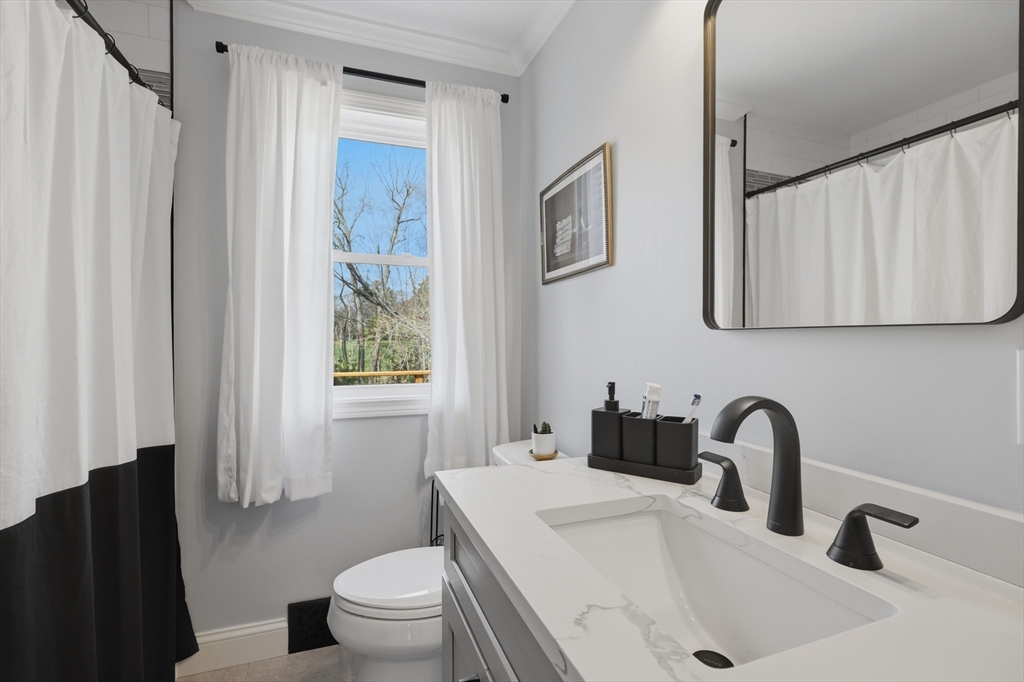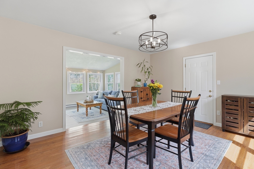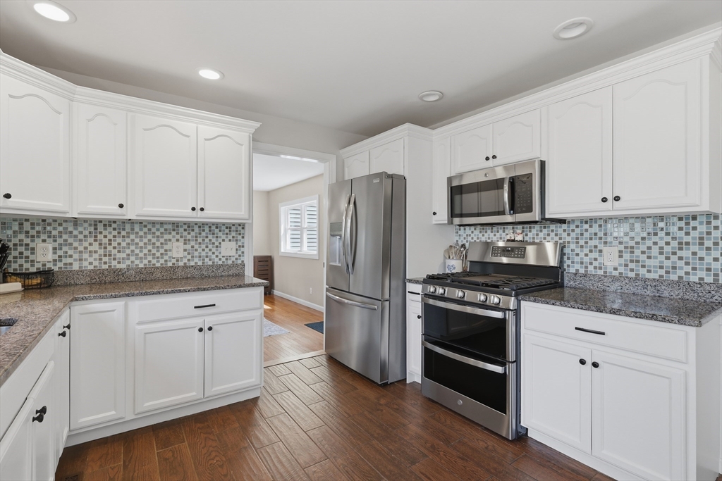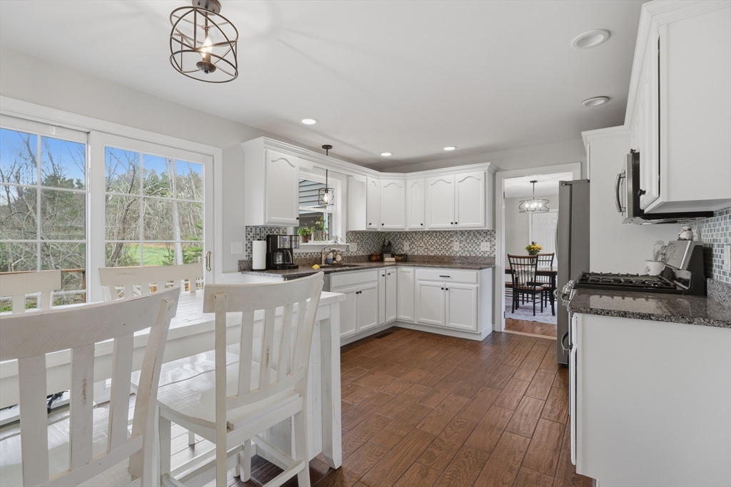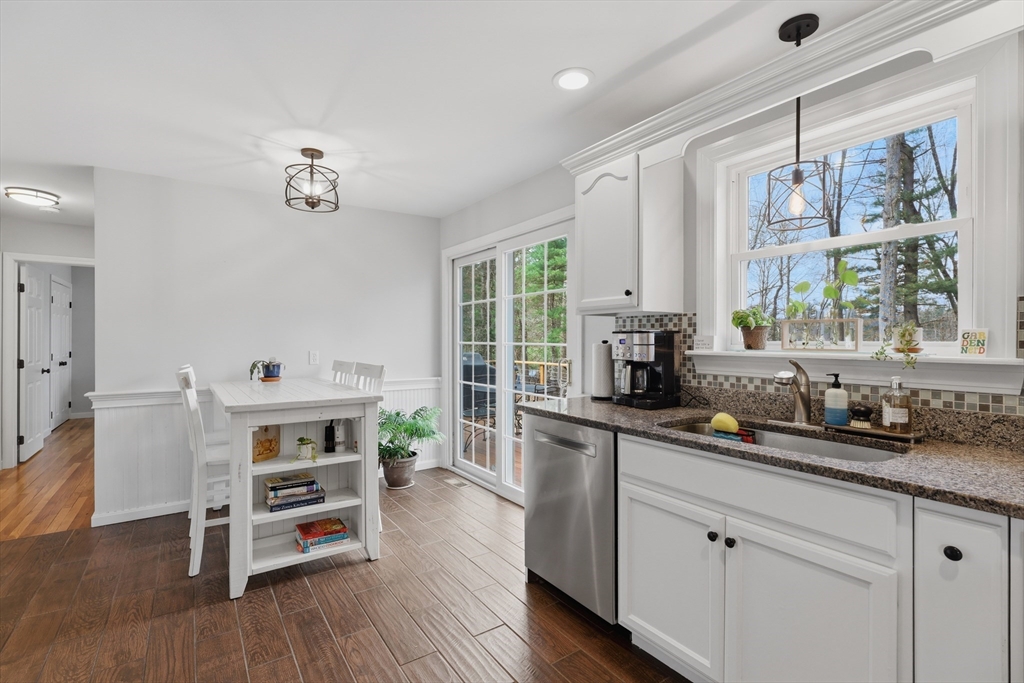 Stunning 4-bed, 2-bath Cape-style home, perfectly situated in desirable Northborough. Enter inside to a sun-drenched living room featuring hardwood floors. The heart of the home is the bright kitchen, complete w/ sleek granite countertops, modern SS appliances, gas cooking, & a comfortable dining area. For more formal gatherings, the dedicated dining room flows seamlessly into a versatile family room, which offers slider access to the back deck. The main level is thoughtfully designed w/ 2 convenient bedrooms & a full renovated bath. Upstairs, you will discover 2 additional generously sized bedrooms, both offering peaceful views of the backyard. A 2nd full bathroom completes this floor. The outdoor space is truly an entertainer’s dream & a serene retreat; the back deck overlooks a dedicated firepit area & a tranquil brook, providing the picture-perfect backdrop. With an unbeatable location, this Northborough gem is one you don't want to miss!