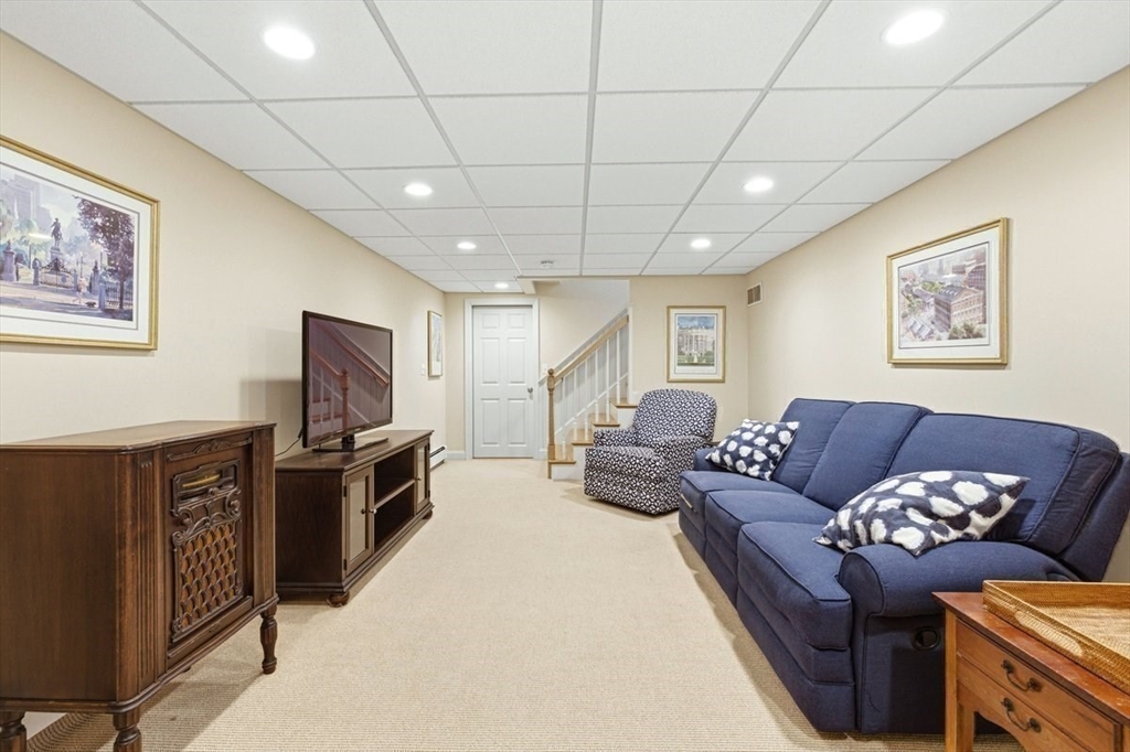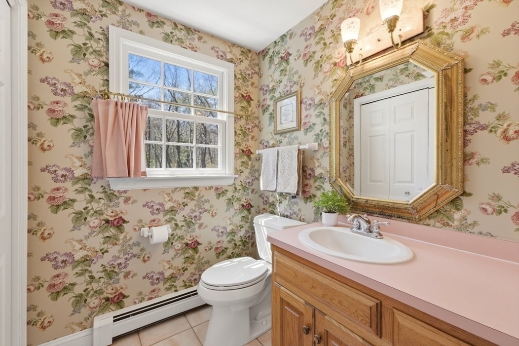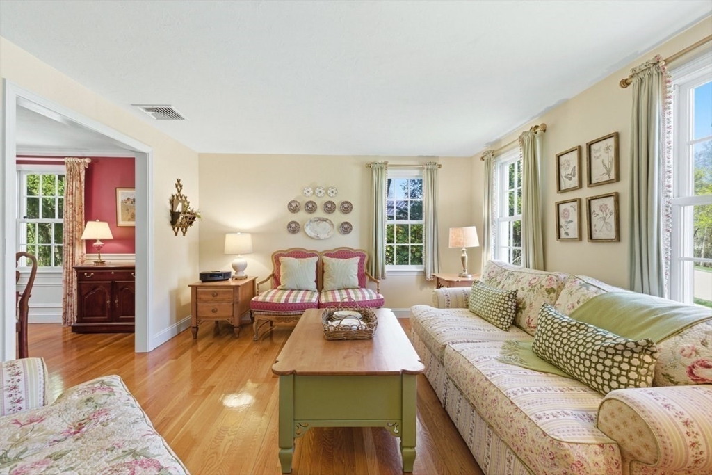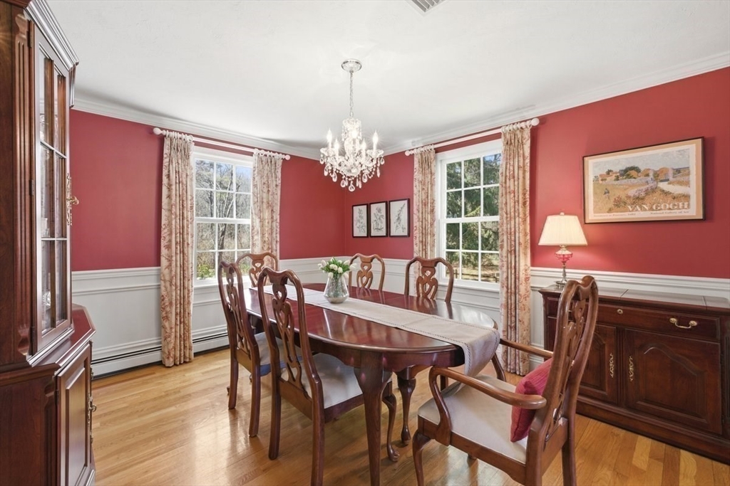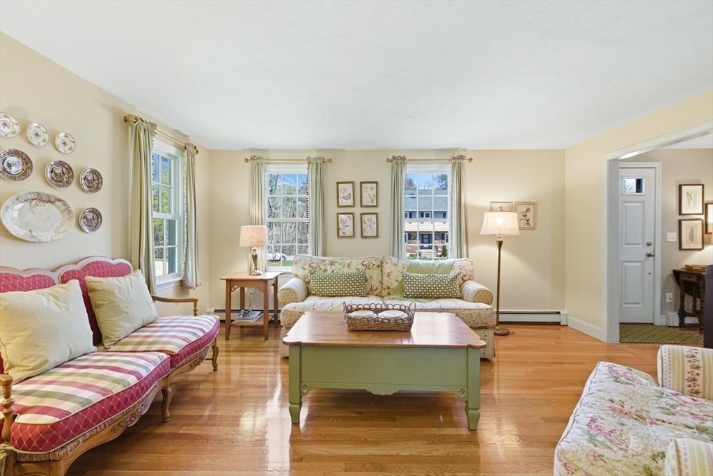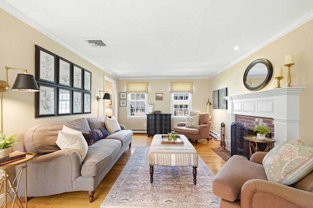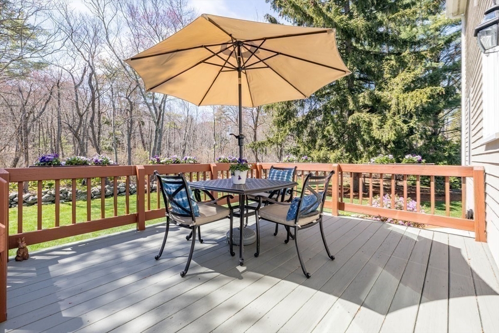 Immaculate 4 bed colonial situated on a cul-de-sac neighborhood in the desirable Old Post Road School district. This beautifully maintained home offers a well-designed and flexible floor plan. The main level includes a cozy living room, formal dining room, eat in kitchen, and a sun filled family room with wood burning fireplace. The second-floor features three generous bedrooms, a family bath, and a primary suite with updated bathroom, office area and an oversized walk-in closet with custom built in shelving. The finished, heated lower level provides additional living space, ideal for a playroom as well as music room or additional home office. Sliding doors from the kitchen open to a private and lush backyard with mature plantings and pond views, creating a peaceful setting for outdoor enjoyment and entertaining. Additional highlights include an attached two car garage, ample storage throughout, and convenient access to the train, shops and restaurants of Walpole Center.