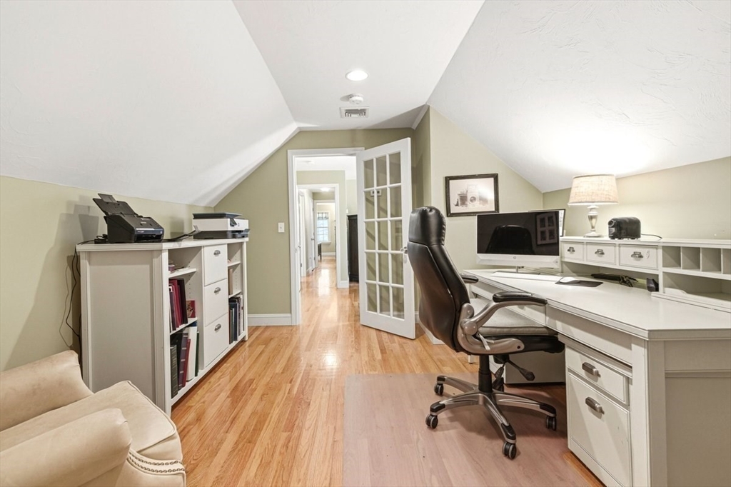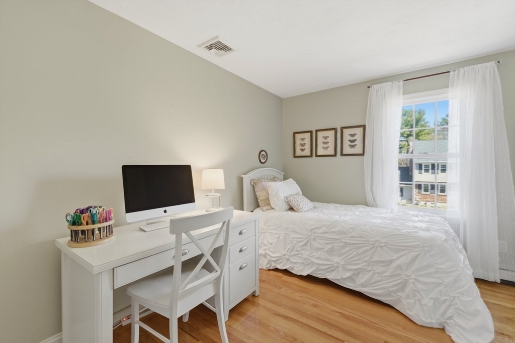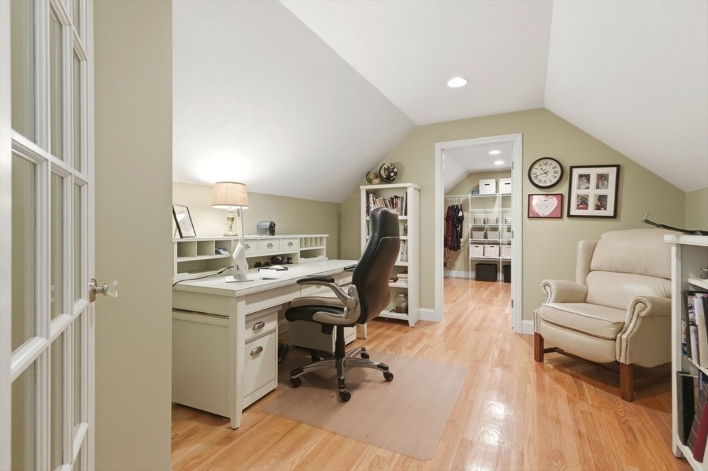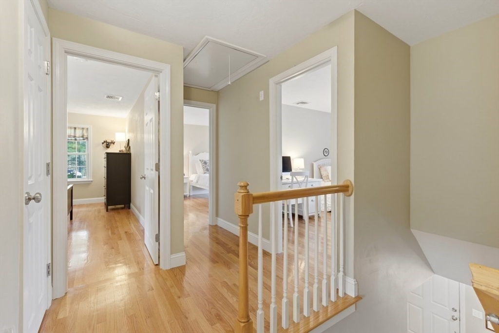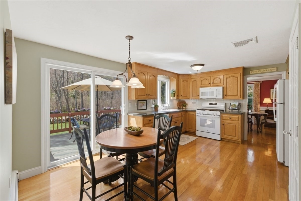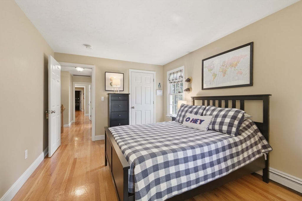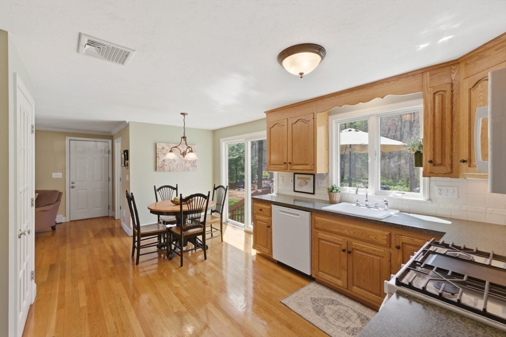 Immaculate 4 bed colonial situated on a cul-de-sac neighborhood in the desirable Old Post Road School district. This beautifully maintained home offers a well-designed and flexible floor plan. The main level includes a cozy living room, formal dining room, eat in kitchen, and a sun filled family room with wood burning fireplace. The second-floor features three generous bedrooms, a family bath, and a primary suite with updated bathroom, office area and an oversized walk-in closet with custom built in shelving. The finished, heated lower level provides additional living space, ideal for a playroom as well as music room or additional home office. Sliding doors from the kitchen open to a private and lush backyard with mature plantings and pond views, creating a peaceful setting for outdoor enjoyment and entertaining. Additional highlights include an attached two car garage, ample storage throughout, and convenient access to the train, shops and restaurants of Walpole Center.