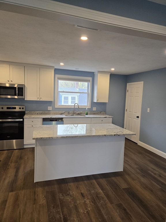 Newly built TWO - FAM house in Sought after Stoughton available for Rent Below fair market rent in State of Massachusetts for 2026 House built in 2025! Apartment living with feel of a single family home. Brand new everything ! Recessed lights throughout. Step into a large living room with open concept to Kitchen with huge Island. Lots of Cabinet space, A breakfast nook and dedicated Pantry. Stainless steel appliances, In unit washer and dryer. 3 Bedroom unit ONE FULL BATHROOM AND ONE HALF BATH! rare find in Stoughton available for RENT NOW