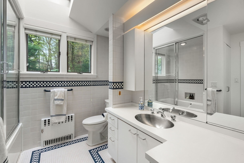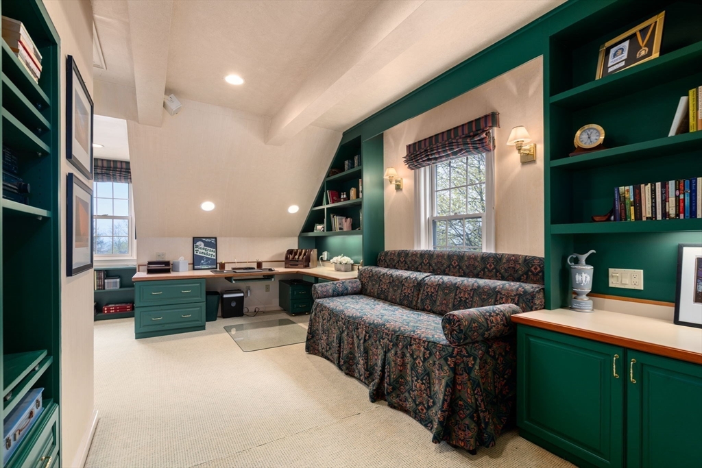 Stately brick Colonial set in desirable Chestnut Hill near Boston College, offering timeless curb appeal, beautifully landscaped grounds & commanding presence. A warm foyer with rich hardwood floors & elegant French doors opens to a sun-filled entry porch, setting the tone for a home that balances classic charm with everyday comfort. The living room, with striking floor-to-ceiling windows, flows seamlessly into a generous dining room, ideal for both relaxed living and entertaining. A well-appointed cook’s kitchen with a spacious eating area overlooks the private, level yard & hardscaped patio, a large mudroom, inviting family room & half bath complete the main level. Upstairs, the serene primary suite features an ensuite bath, with 3 additional bedrooms and a full bath. The third floor offers a den, a bedroom, and full bath, perfect for guests or work-from-home needs. The lower level includes a large playroom, office & 2-car garage completing this exceptional home. Close to T.