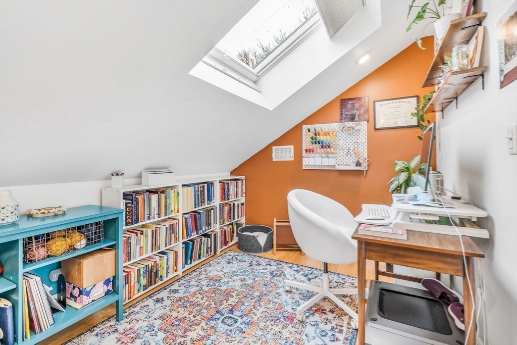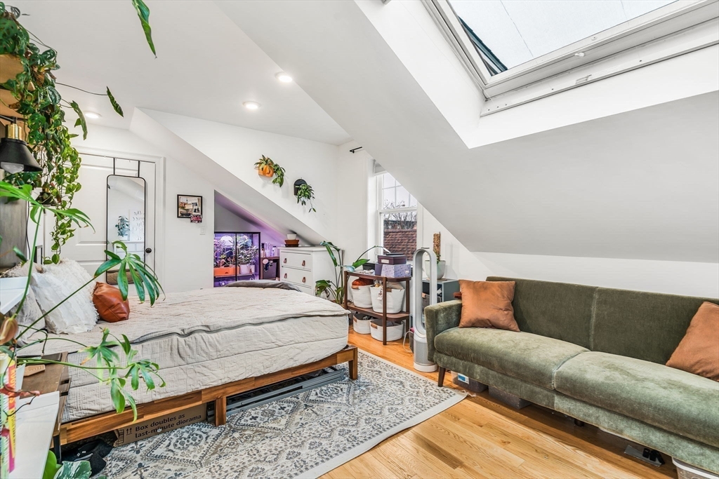 Location location, welcome to Uphams Corner! Beautiful penthouse unit in a 2018 renovation. This 2 bed 1 bath condo has central air, a built-in electric fireplace,in-unit laundry,and hardwood floors.. Great light, with many windows and large Velux skylights in every room, affording incredible natural light.The best part is being able to enjoy city views and 4th of July fireworks from your private deck. It is also a 5-minute walk to the Uphams Corner Commuter Rail and a 15-minute walk to the newly revised Nubian Square, where you'll find many shops, eateries, and banking options. It's a 10-minute walk to South Bay shopping and entertainment plaza. This location is also a short commute to both the Longwood medical area and the BU medical campus. The Kroc Center is a 2-minute walk, complete with basketball courts, tennis courts, and a swimming pool. FYI, This isn't the ideal roomate set-up due to the bedrooms not being equal in size. I added a few staged pics, taken before new paint job.