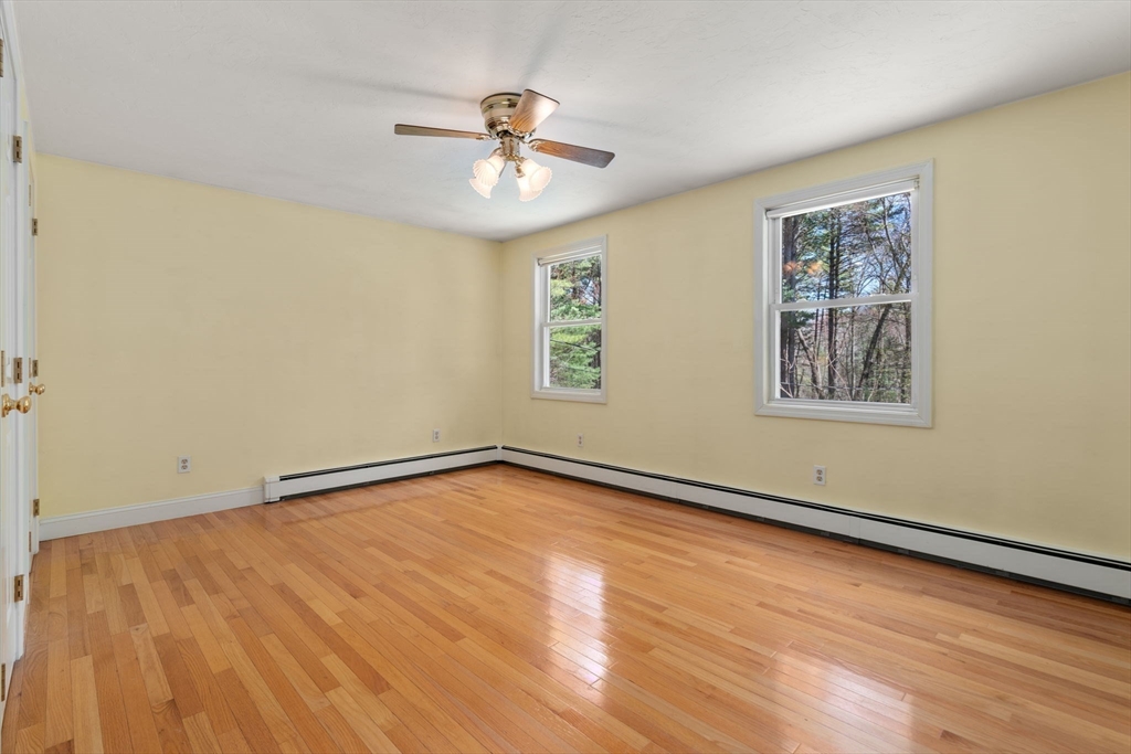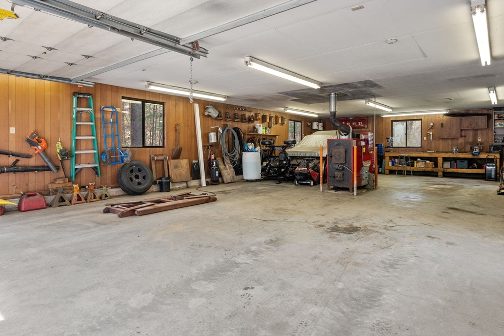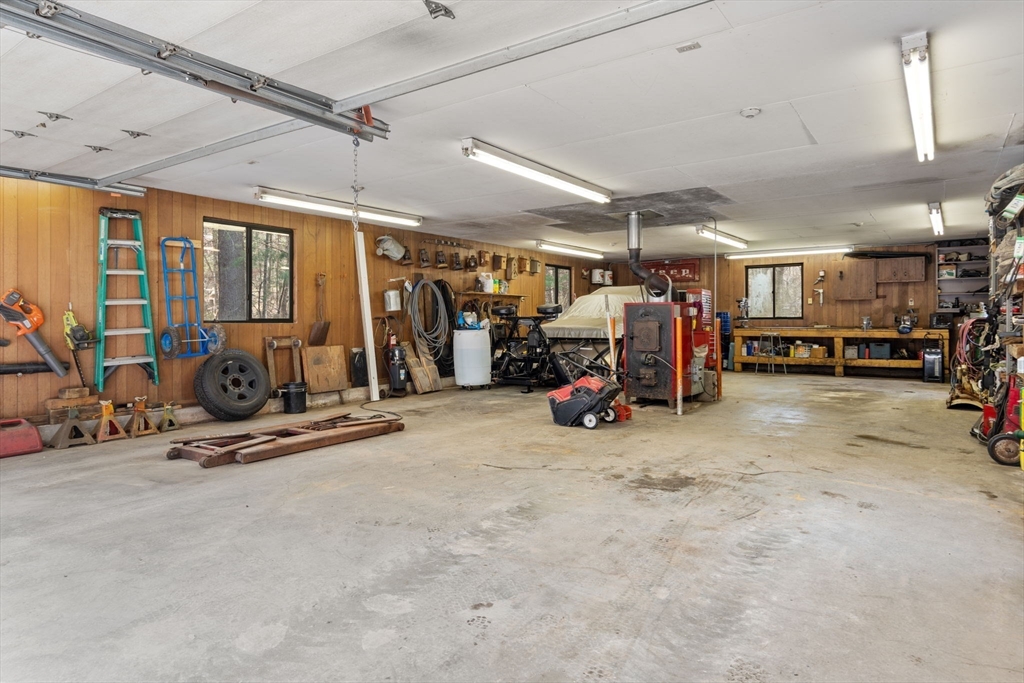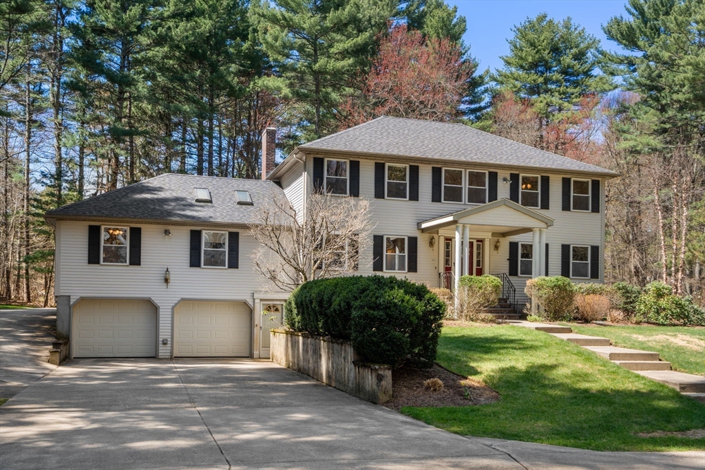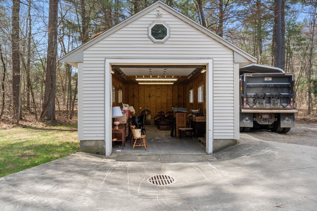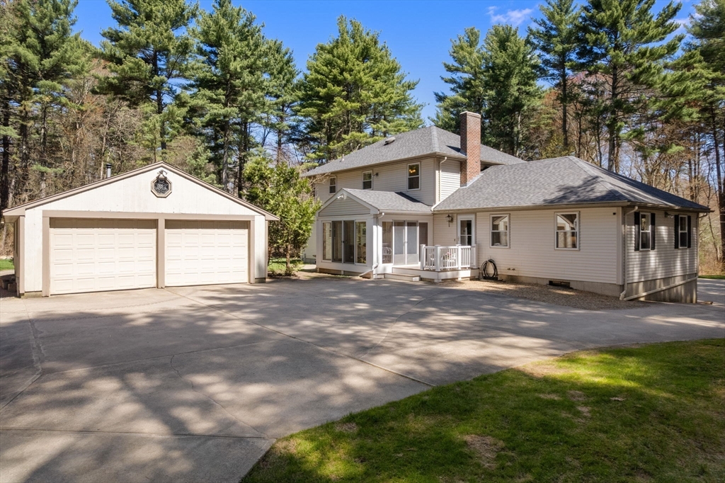 Set back from the road on 9 acres of serene privacy, this beautifully maintained 4-bedroom Colonial offers the perfect balance of classic elegance & exceptional functionality. The home features an updated kitchen with center island, ideal for everyday living & entertaining, & gleaming hardwood floors throughout. A spacious first-floor primary suite includes a large walk-in closet & private bath, offering convenient one-level living. Highlights include a dedicated home office & a flexible bonus room, perfect for a study, second office, or creative space. Outside, the property truly shines with an attached 2-car garage, plus a massive 24x48 detached garage & a second 16x26 detached garage—an incredible setup as an ADU, car collectors, contractors, hobbyists, or potential equestrian use. This private, expansive setting provides endless possibilities while remaining a peaceful retreat from the road. A rare opportunity to own a spacious Colonial with land, privacy, & unmatched garage space