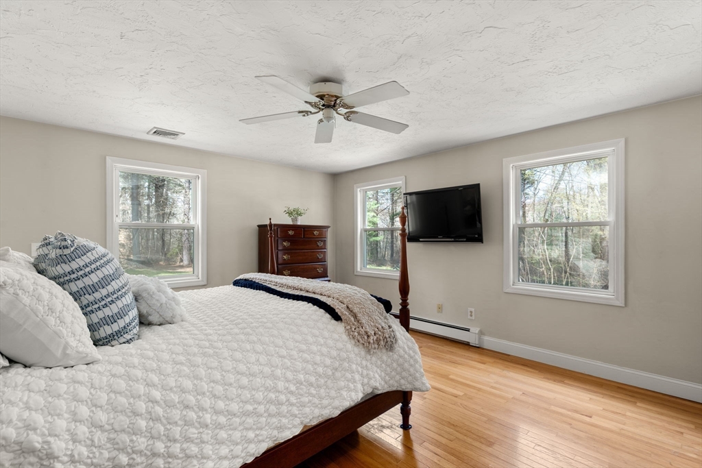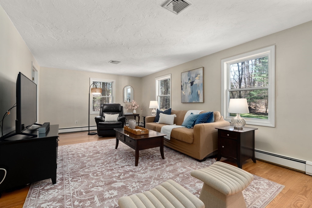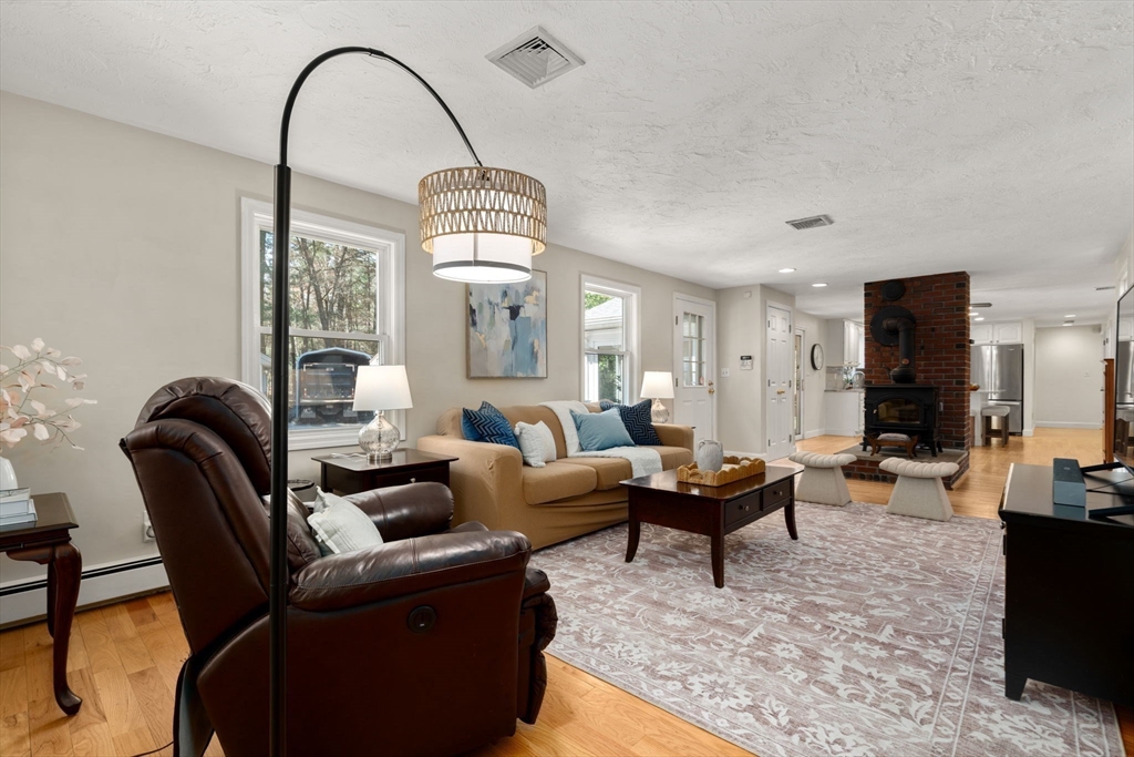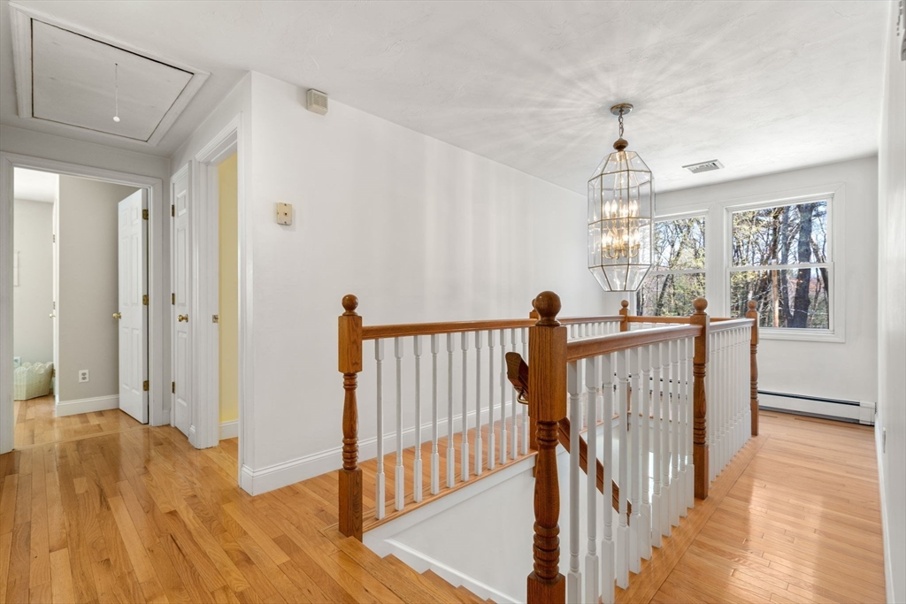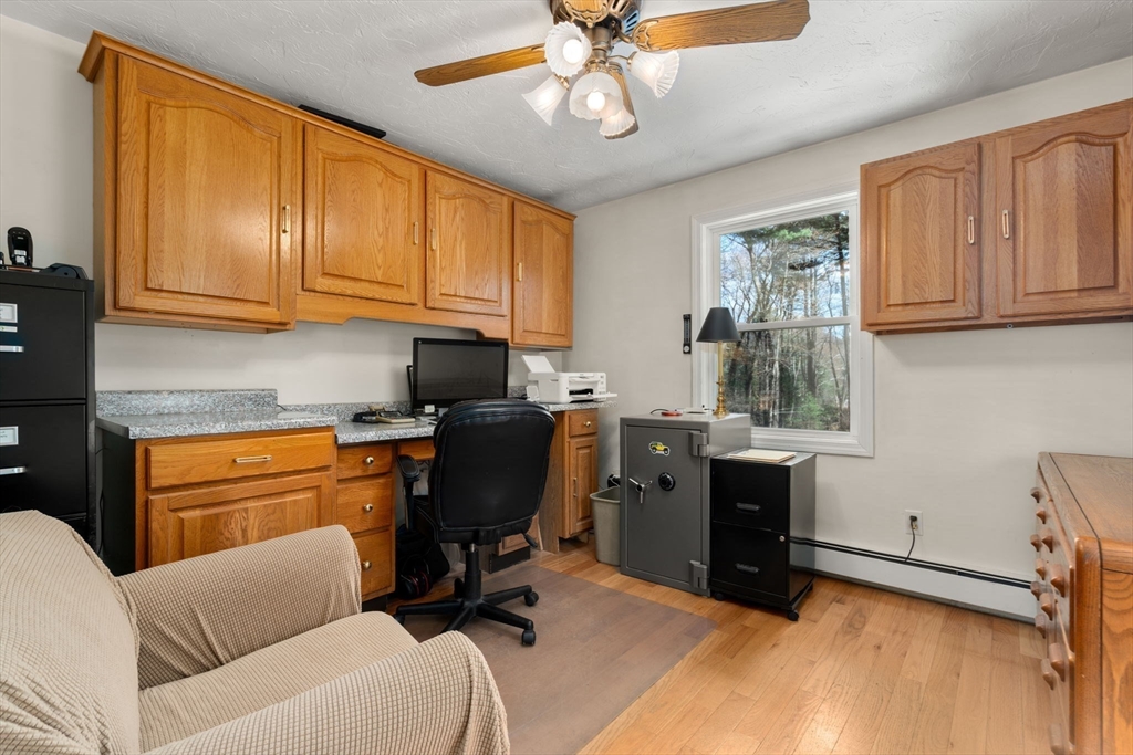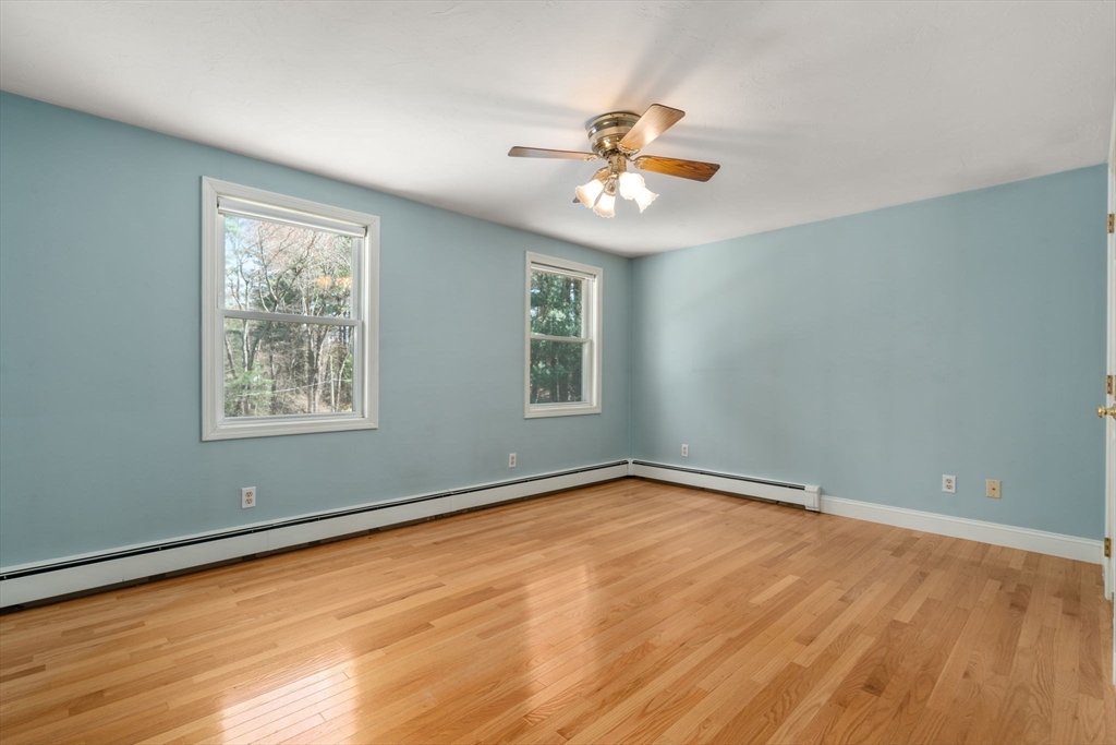 Set back from the road on 9 acres of serene privacy, this beautifully maintained 4-bedroom Colonial offers the perfect balance of classic elegance & exceptional functionality. The home features an updated kitchen with center island, ideal for everyday living & entertaining, & gleaming hardwood floors throughout. A spacious first-floor primary suite includes a large walk-in closet & private bath, offering convenient one-level living. Highlights include a dedicated home office & a flexible bonus room, perfect for a study, second office, or creative space. Outside, the property truly shines with an attached 2-car garage, plus a massive 24x48 detached garage & a second 16x26 detached garage—an incredible setup as an ADU, car collectors, contractors, hobbyists, or potential equestrian use. This private, expansive setting provides endless possibilities while remaining a peaceful retreat from the road. A rare opportunity to own a spacious Colonial with land, privacy, & unmatched garage space