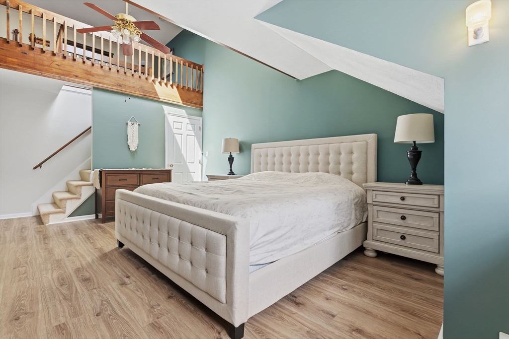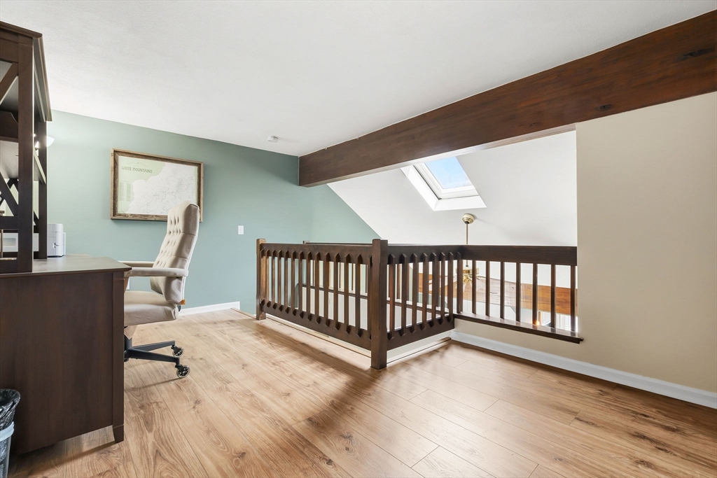 Welcome to this beautifully maintained townhouse in the highly desirable community at Casablanca Court! This unit features an open floor plan with living room, dining room and kitchen with stainless appliances and small kitchen island that provides additional seating in the kitchen. First floor bath with washer and dryer. Upstairs is the master bedroom with vaulted ceilings, exposed beam and walk in closet. A "bonus" loft area on the 3rd level that makes a perfect home office or additional living area and access to the walk in attic - making storage easy! Additional bedroom with generous closet and full bath complete the second level. Freshly painted and updated flooring thoroughout all you have to do is move in! All this conveniently located near shopping, dining, commuting routes and local ammenities 25 Casablanca Court offers the perfect blend of low maintenance lifestyle with all the comforts of home! Don't miss your opportunity to make this wonderful townhouse - your next HOME