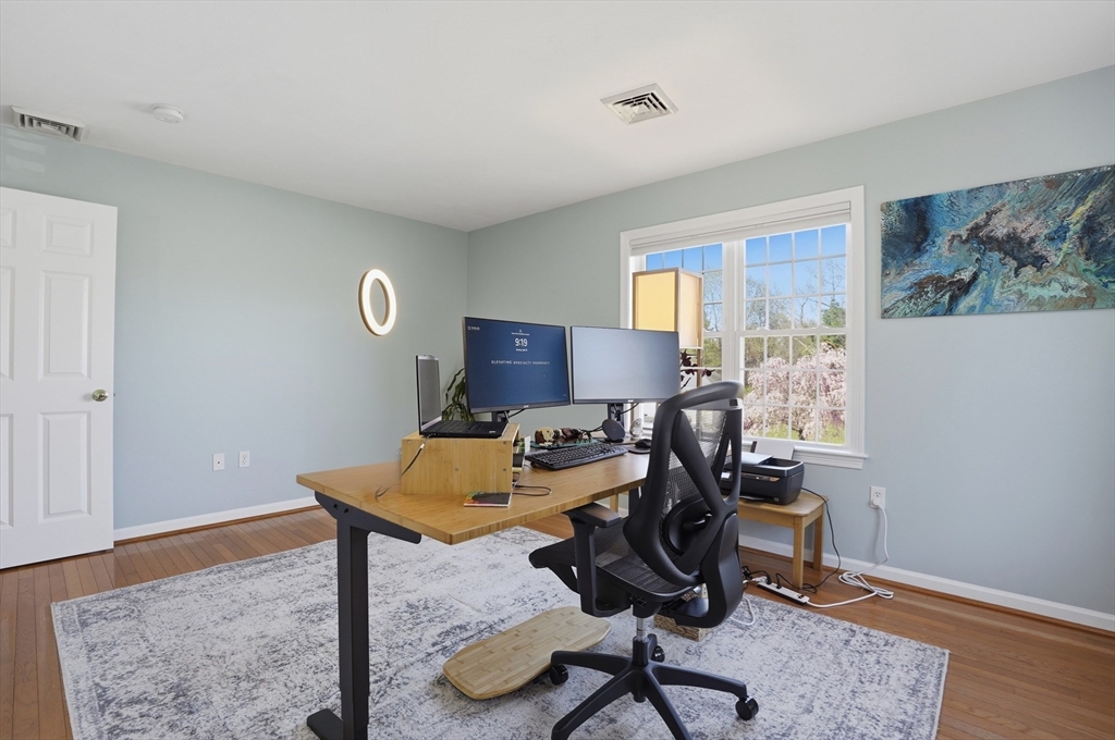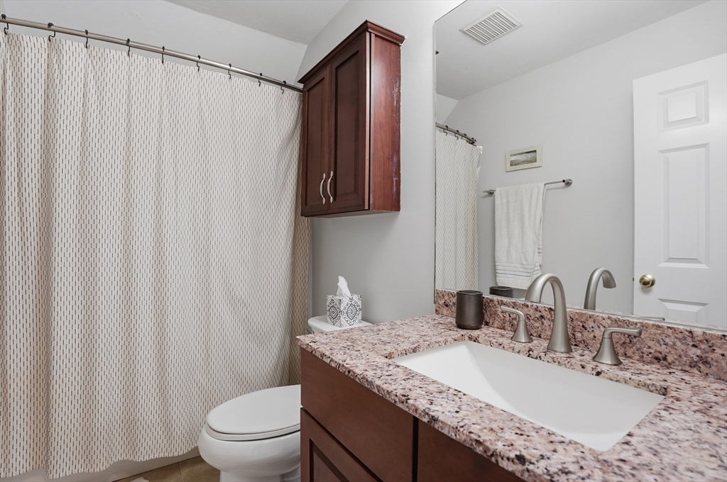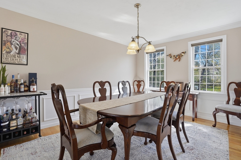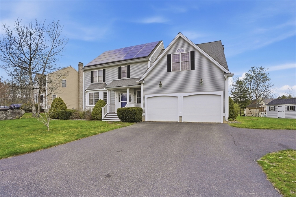 Welcome to this meticulously maintained Colonial home in the highly sought-after town of Millbury, offering a prime location with easy access to Routes 122A, 20, and the Mass Pike. Inside you will find a formal living room with gleaming hardwood floors and a charming bay window, a formal dining room, and a warm, inviting family room featuring a beamed, vaulted ceiling, brick fireplace, and skylight. The spacious kitchen is perfect for everyday living and entertaining, complete with a tile backsplash, stainless steel appliances, and abundant cabinet and countertop space. Upstairs, the main bedroom offers double closets and a private en suite bath, accompanied by three additional generously sized bedrooms, a full bath, and the convenience of second-floor laundry. Enjoy outdoor living with a covered front porch, back deck, and stone patio overlooking the large yard with a storage shed. An attached two-car garage and ample off-street parking complete this exceptional home.