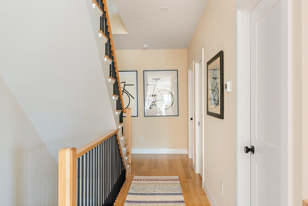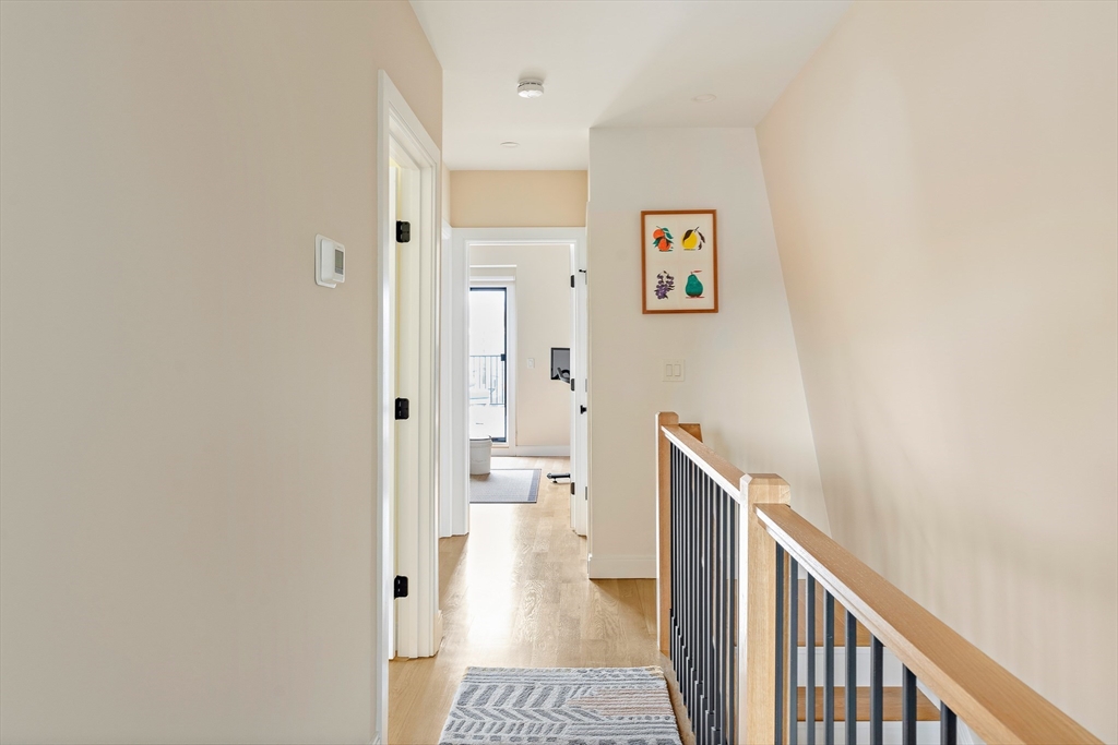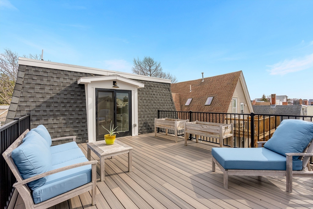 Step into a home where everyday living feels thoughtfully elevated. At the heart of the main level, a stunning chef’s kitchen sets the tone with Thermador appliances, an inviting eat-in island, and a beautifully designed dry bar with a built-in wine fridge. Just beyond, step onto your private deck for morning coffee or evening gatherings under the open sky. The main-level primary suite offers a spacious walk-in closet and a spa-inspired bath with double vanity and walk-in shower. A dedicated laundry room, half bath, custom shades, hardwood floors, and a gas fireplace with built-ins enhance both comfort and style. Upstairs, three generously sized bedrooms provide flexibility for living, working, or hosting, including one en-suite and an additional full bath. A standout space opens to a large private roof deck—perfect for entertaining or unwinding. Located moments from Union Square, with easy access to dining, parks, and the MBTA Green Line into Boston and Cambridge.