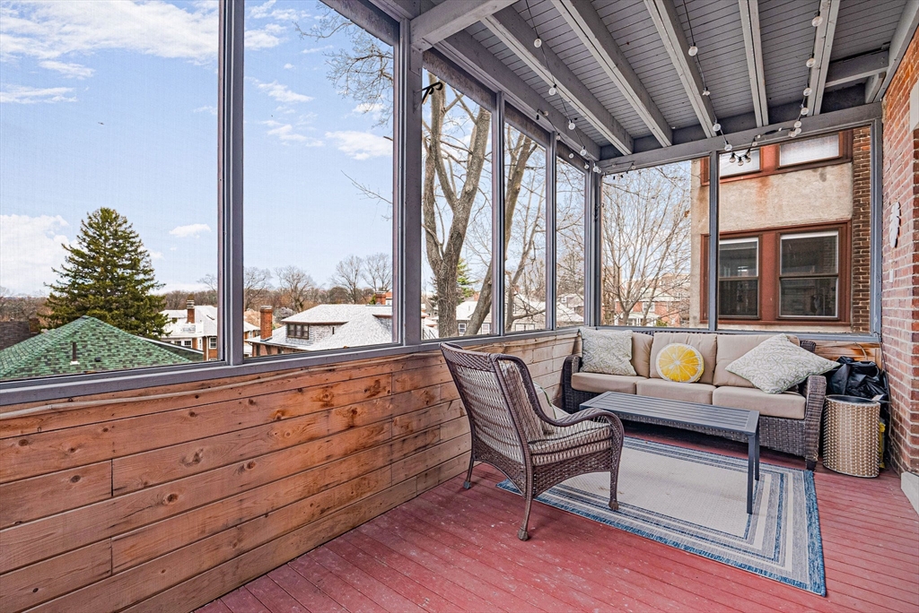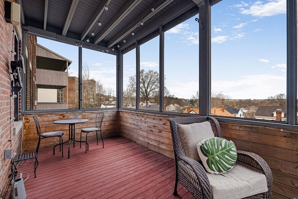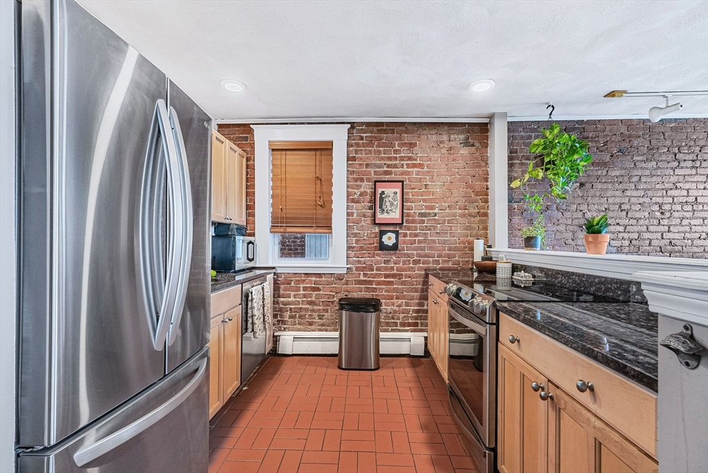 Welcome to this charming one-bedroom residence at Ivy Gate Halls, a distinguished brick building ideally located near Cleveland Circle. Thoughtfully designed for both comfort and functionality, the home features an open-concept kitchen and living area that flows seamlessly together. Hardwood floors and oversized windows fill the space with natural light, creating a warm and inviting atmosphere with serene neighborhood views. The kitchen is equipped with granite countertops, stainless steel appliances, and ample cabinet space, opening directly into a spacious living area perfect for everyday living or entertaining. Just off the living space, a large private deck offers an ideal setting for outdoor relaxation. Distinctive architectural details, including exposed brick walls and high ceilings, add character and charm throughout. The bedroom is well-proportioned and offers comfortable living with convenient access to the full bath.