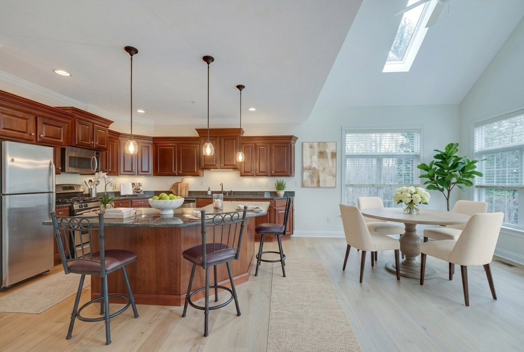Looking for maintenance free living that has been remodeled & only 1 step to get in? Freshly painted & new flooring throughout! Welcome to 102 Candlewood Lane! This SF detached condo has 3 bdrms, (2 primary bdrm ensuites - 1 on each floor) along with 1st flr guest room w/full bath & 1st flr office off main entry & loft on 2nd floor. Bright breakfast room adjacent to gorgeous cherry cabinet packed kitchen & granite counters. Livrm w/gas FP looks out to spacious patio overlooking private tree lined back yard w/beautiful stone wallls & includes high end patio furniture,weber grill & oversized umbrella. 2nd level sun drenched loft can be used as a 2nd livrm or 2nd office. Lots of crown molding, chair rail, wainscoting, walk in closets & ample storage space! Garage floors just epoxied! Enjoy over 3000 sq ft of living space w/9 ft ceilings, brand new hdwds through 1st flr living areas. Bdrms & loft w/new carpet. Miles of groomed hiking traiils, pet frendly, no age restrictions.