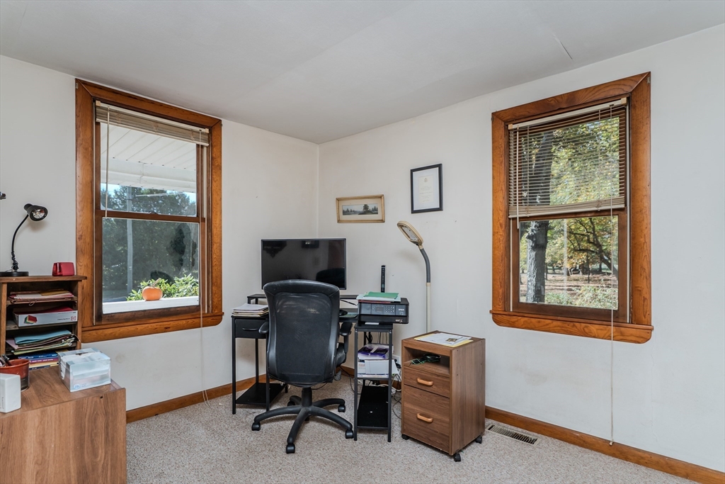 Charming bungalow set on 10 scenic acres complete with a peaceful pond and just minutes from downtown Amherst. Enjoy serene views from the deck overlooking the water and expansive backyard.This home offers character,space and endless potential. Featuring warm wood floors and a welcoming porch, the home blends rustic appeal with country living. Inside you'll find a cozy layout ready for your personal updates and finishing touches.This inviting home features three bedrooms, a spacious living room with a cozy wood stove and a bright three-season enclosed porch ideal for enjoying the changing seasons. Enjoy serene views from the deck overlooking the water and expansive backyard—perfect for relaxing, gardening or entertaining.The unfinished second level offers excellent potential for expansion.