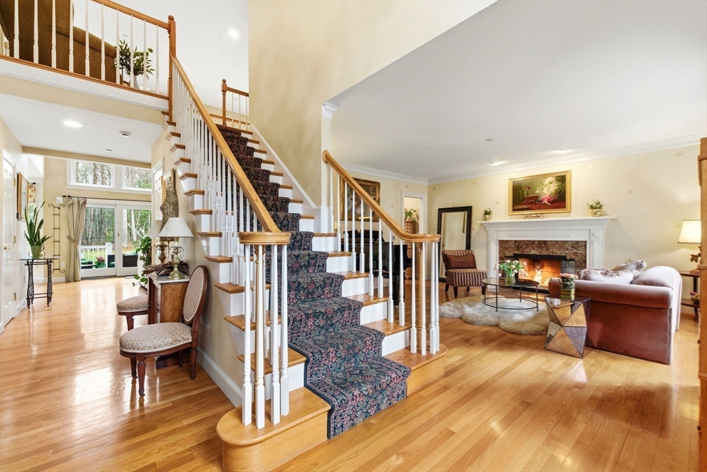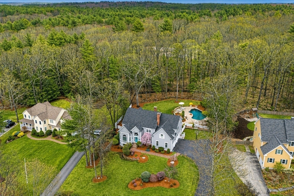 Set within one of Acton’s most coveted neighborhoods, this luxurious 5-bedroom, 6-bath residence offers a seamless blend of refined living and modern comfort. The heart of the home, a sunlit great room with soaring 15-foot ceilings overlooks the private, meticulously landscaped grounds, while three gas fireplaces lend warmth and elegance throughout. The chef’s kitchen flows effortlessly into formal dining and sitting room, complemented by a first-floor study with custom mahogany built-ins. The serene primary suite features a steam shower and spacious walk-in closet, accompanied by four additional bedrooms. A fully finished lower level with wet bar offers flexible space for recreation or fitness. Outdoors, a breathtaking resort-caliber setting awaits with a heated gunite pool, waterfall, jacuzzi, stonework and fully fenced-in expansive lot. Complete with a three-car garage, walk-up attic with expansion possibilities, and premier access to Rt-2, I-495, top schools, shopping, and trails.
