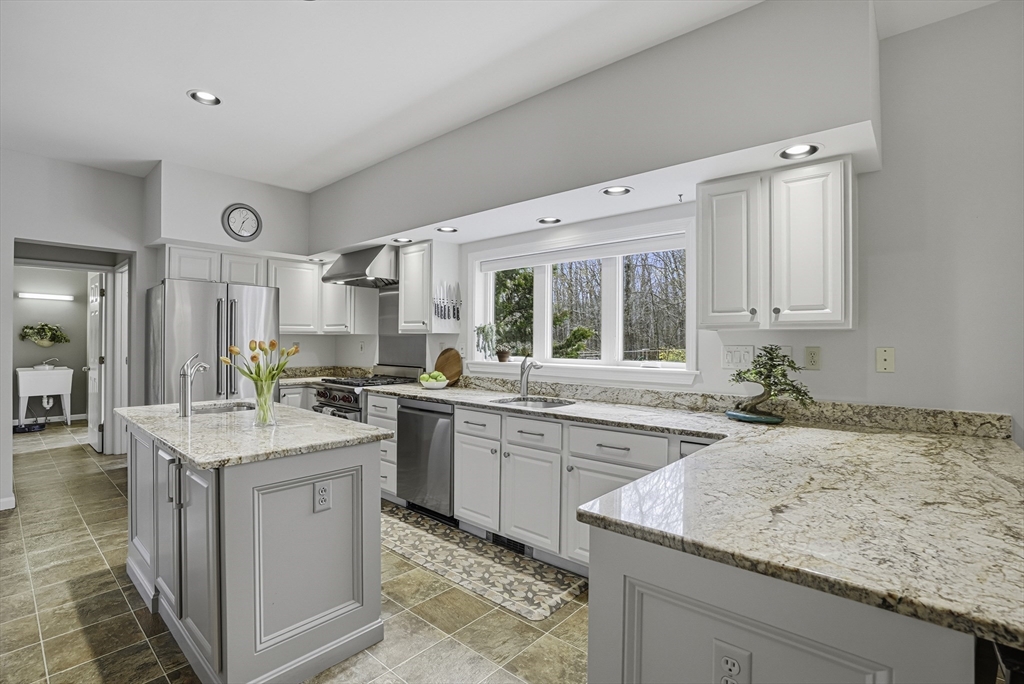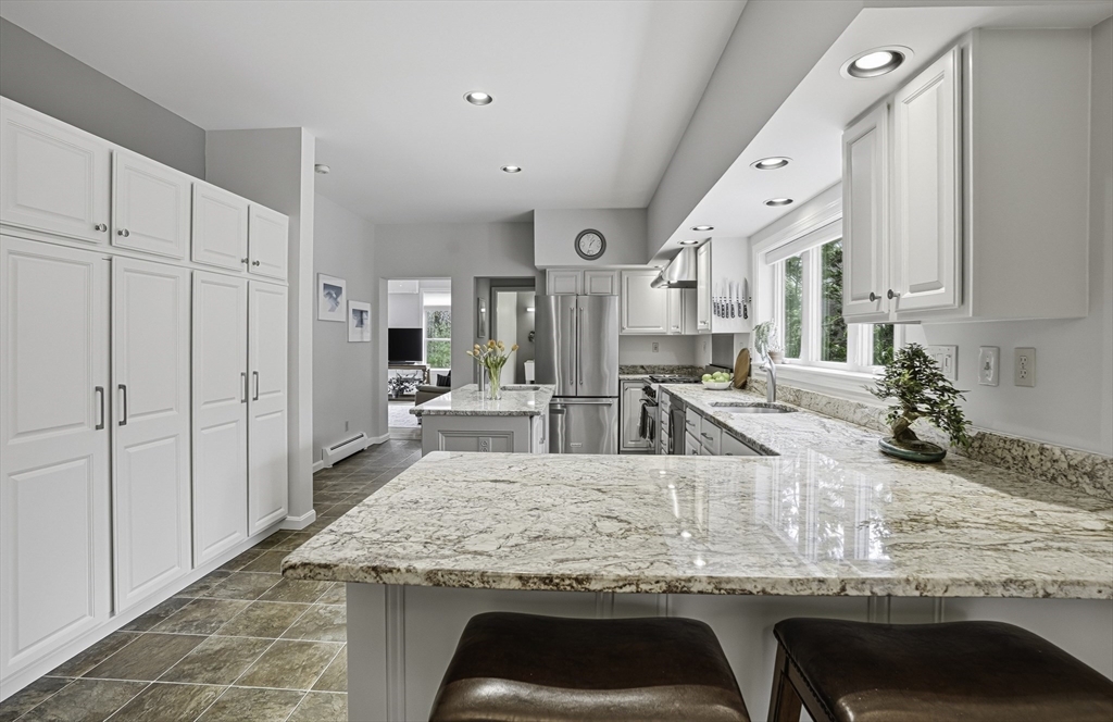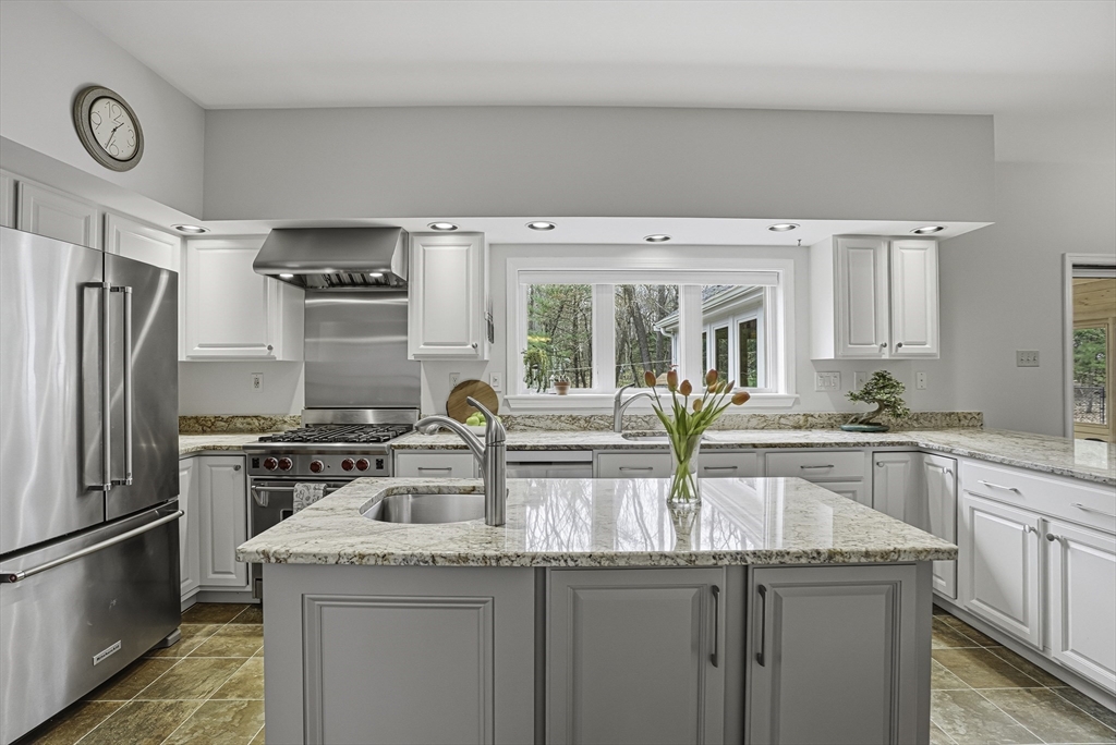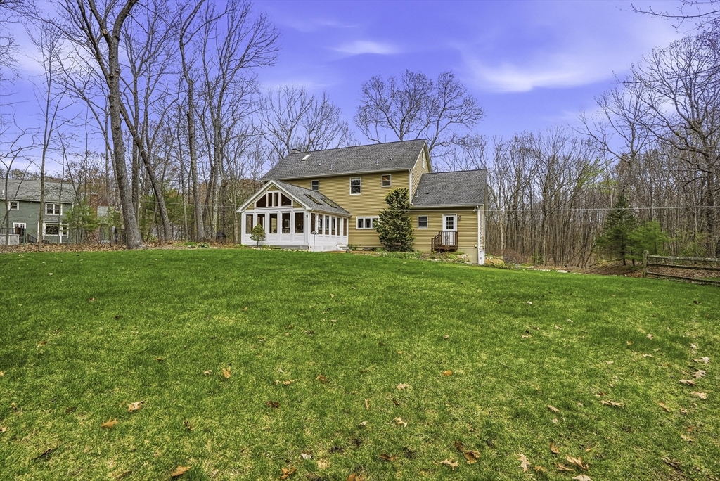 Stunning East-facing Colonial on lush .69-acre cul-de-sac lot in sought-after Charlesview Estates. Exceptional curb appeal w/ perennials & new walkway leads inside gorgeous home offering 4 BR, 2.5 BA, 9' 1st-flr ceilings, 8' 2nd flr & spacious layout. Chef’s kitchen features white cabinets, granite counters, vented Wolf gas cooking, pantry & breakfast area open to family room & huge vaulted 3-season sunroom. Elegant dining room & living rooms w/ pocket doors, Brazilian cherry floors & wood burning fireplace adjacent to office/guest room. Huge powder/laundry room w full bath potential. Primary suite includes large walk-in closet & renovated bath w/ glass/tile shower & jetted tub. Three additional BRs w/ hardwoods & updated full bath. Walk-up 3rd flr & lower-level offer expansion potential for media room, gym or office. Updates: new gas boiler, central air & EV car charger. Cul de sac trails lead to Center Trail & 85. Close to top Hopkinton schools, commuter rail, I-495 & Mass Pike!