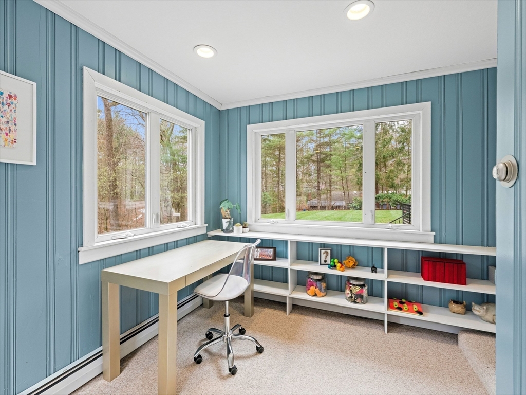Perched on a hill at the end of a picturesque cul-de-sac in sought-after West Concord, this meticulously maintained ranch offers move-in ready living. A sun-filled fireplaced living room with hardwood floors and a large bay window flows seamlessly into the dining room with sliders to a large deck—ideal for indoor-outdoor entertaining. The eat-in kitchen provides ample space for everyday living, while a separate office offers a perfect work-from-home retreat. Four bedrooms and a full bath complete the main level. Designed for easy one-floor living, this home also presents a wonderful condo alternative. The renovated lower-level features high ceilings, a full bath, and flexible space for a bonus room, teen retreat, or gym, plus additional unfinished areas for storage or a workshop. Ideally located just minutes to West Concord Village, the commuter rail, shops, and restaurants.