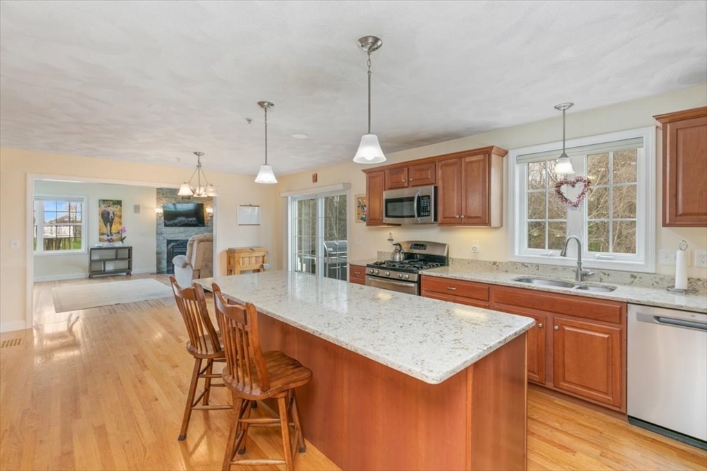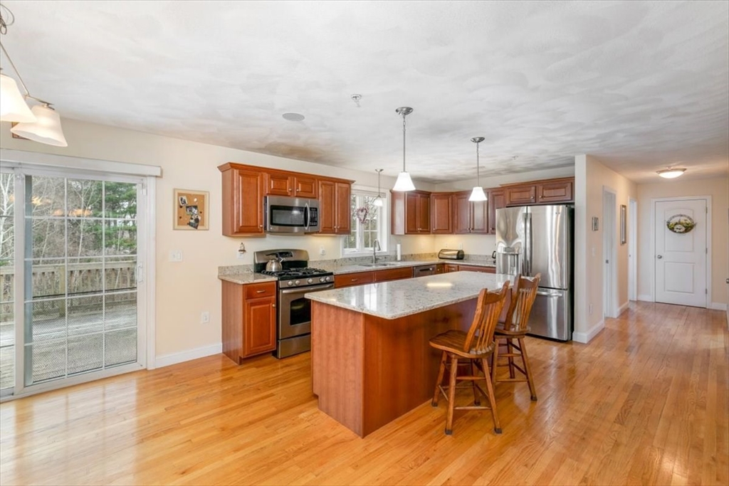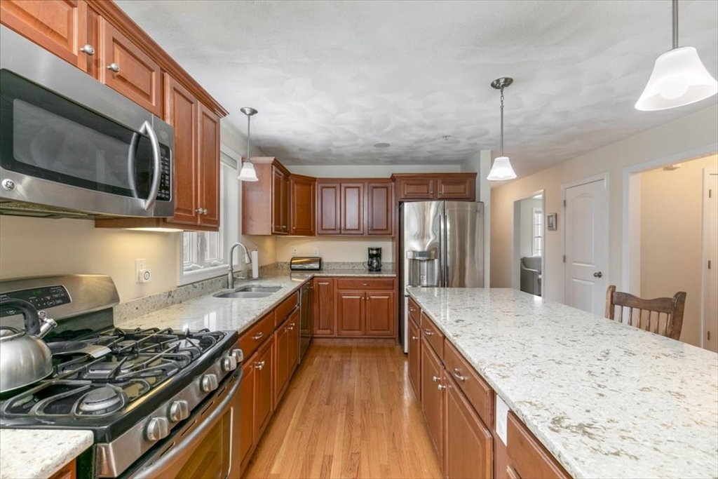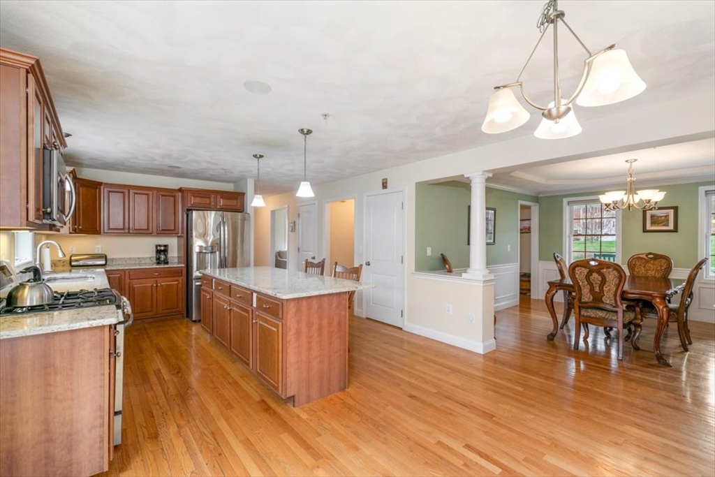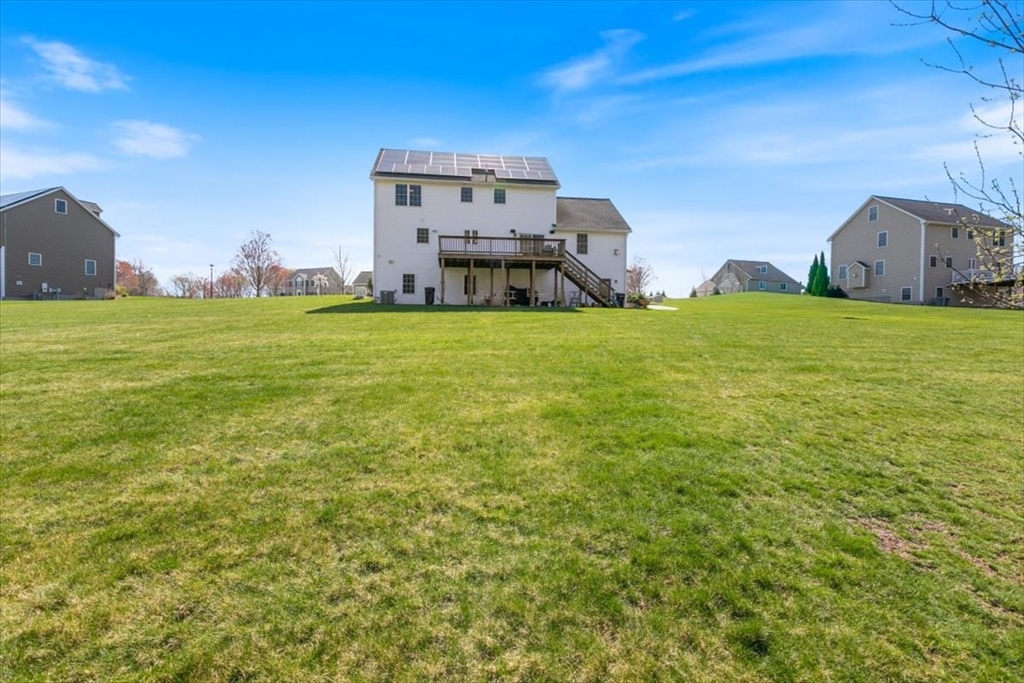 Young oversized colonial in a sought after neighborhood! Built on nearly an acre lot, it offers grand curb appeal with a large farmers porch, landscaping and irrigated lawn. The first floor has hardwood throughout. The eat in kitchen is perfect for entertaining with granite counters, stainless steel appliances and an oversized island. The dining room has a tray ceiling with crown molding. The family room is soaked with natural light and has a cathedral ceiling with recessed lighting and a gas fireplace. There's an additional formal living room, half bath and laundry room to sum up the first level. Upstairs has a main en-suite with a granite double vanity, walk in shower and walk in closet. There's an additional 3 bedrooms and another full bath with a tub/shower. The walk up attic has potential for expanded living space. Central air. Generac whole house generator, cleared back yard abutting woods with a 12x24 storage shed. 24x16 deck. ADU potential in the basement.