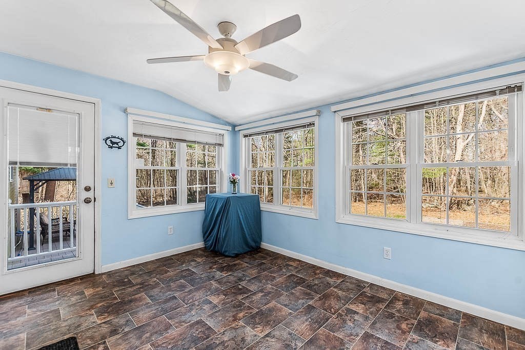 Welcome Home! Tucked away at the end of a quiet dead-end street, this beautifully maintained 3-bedroom, 2.5-bath raised ranch offers the perfect blend of comfort, space, and privacy. Surrounded by woods, the property creates a peaceful retreat while still being conveniently located in Stoughton and close to public transportation. Step inside to an inviting foyer that leads you to either level. The upstairs living features 3 bedrooms and one full bathroom, a living room with a brick fireplace connecting into your spacious kitchen perfect for entertaining. Enjoy the sunroom in the back that leads you out to your deck and above ground pool. The lower level features a bonus family room with a full bathroom, an at home salon with a working sink and nail station, a sitting room, and also a bonus lower level room for many optional uses. Well maintained and ready for the next home owner to enjoy as much as the first owners have.