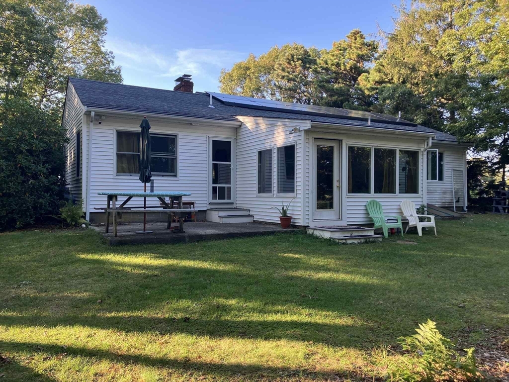 Welcome to this charming ranch-style home filled with afternoon sunlight & easy, single-level living. 3 bedrooms, 2 full baths, this home is perfect for both relaxation & entertaining. The inviting eat-in kitchen flows seamlessly into a bright sunroom, where walls of windows bring in natural light and provide direct access to the backyard—ideal for morning coffee or evening gatherings. Step outside and enjoy a peaceful setting with a convenient path leading to the local playground, perfect for outdoor fun. All new windows. Located close to beautiful Sagamore Beach, Scusset Beach, the Cape Cod Canal & Commuter Park and Ride. You’ll love the coastal lifestyle and fresh ocean air just moments from your door. Whether you're looking for a year-round residence or a serene getaway, this home combines comfort, location, and charm in one delightful package. Disclosure: Leased solar panels convey with sale. Video/audio front and back. Seller would prefer a July 1st closing date if possible