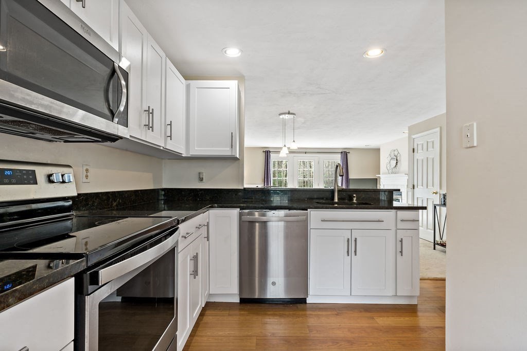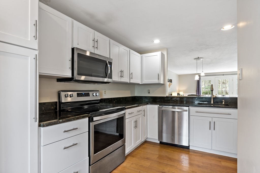 Kingsberry Hill—one of Norton’s premier communities. This 3-level townhome offers a peaceful setting at the end of a private drive, surrounded by mature landscaping & a serene wooded backdrop. Inside you'll find an updated kitchen featuring modern cabinetry, granite countertops, and stainless steel appliances. The open-concept layout flows seamlessly into the living area which has a cozy gas fireplace and elegant French doors that open to a private deck—perfect for grilling, relaxing, and enjoying tranquil wooded views.Upstairs, you’ll find 2 generously sized bedrooms, each with cathedral ceilings, ample closet space, and its own en suite bathroom.The finished lower level provides additional versatile living space, complete with a dry bar and French doors leading to the backyard—perfect for a media room, playroom, home office, etc. pdates include HVAC and central air (2019). Professionally managed association. Conveniently located with easy highway access, shopping, and dining.