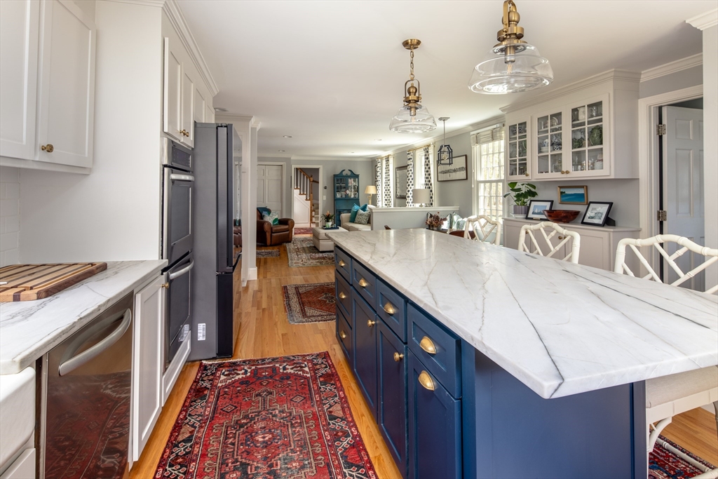 OPEN HOUSE SAT (11-1) & SUN (1-3). Gorgeous updated Olde Knoll Rd home w/ 4 bedroom, 3.5 baths, a 1st fl primary, spacious mudroom, w/ town sewer & water and a well for irrigation. You’ll find a beautifully landscaped, comfortable family home w/ a vaulted sunroom/family room w/ gas fireplace, stunning eat-in kitchen w/ island/quartzite counters/significant cabinetry/high end appliances open to a comfortable living room w/ wood stove; formal dining room w/ wood burning fireplace open to a flex room ideal for a home office or playroom; a 1st floor primary bedroom suite w/ sitting room/vaulted bedroom/walk-in closet/full bath; three 2nd floor bedrooms, one w/ shared full bath and one w/ ensuite half bath; a large basement w/ a finished rec room and craft area, laundry, and significant storage; and many other amenities like new windows, whole house automatic generator, outdoor shower, 3 sump-pump/French drain system, irrigation and enormous yard ideal for your dream pool or barn.