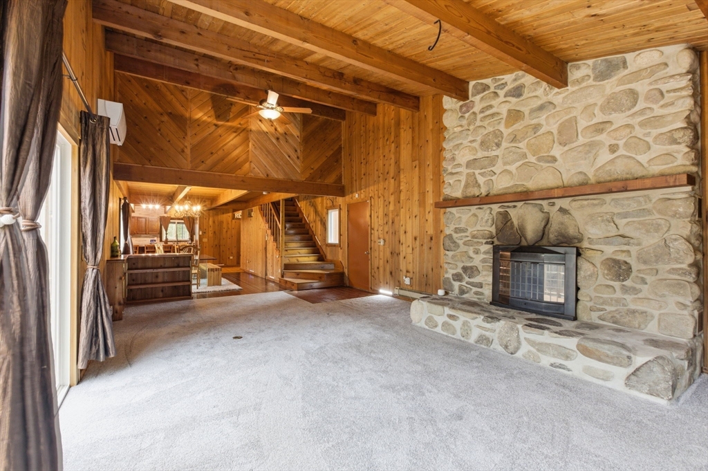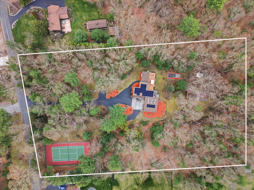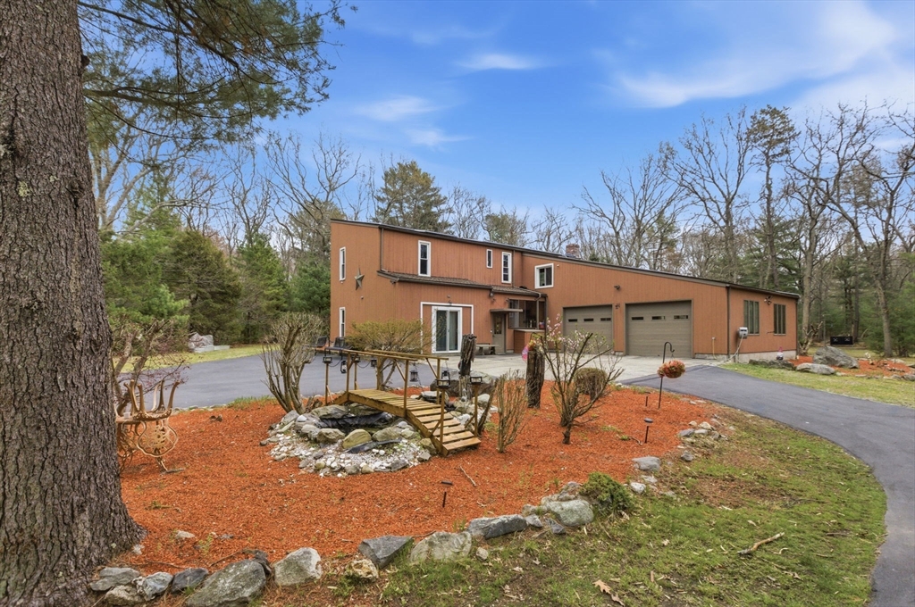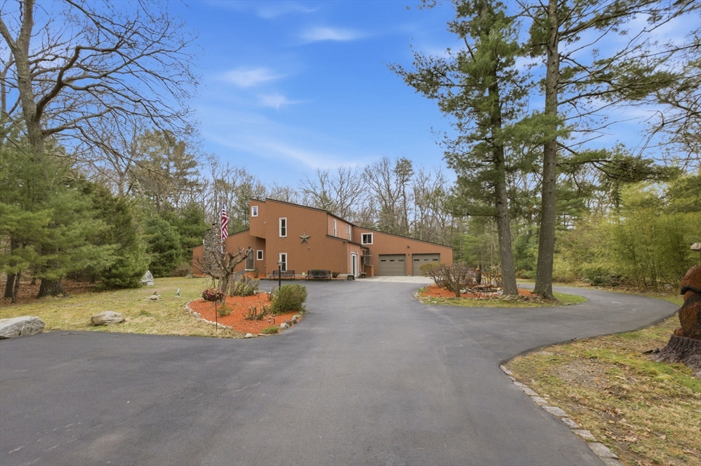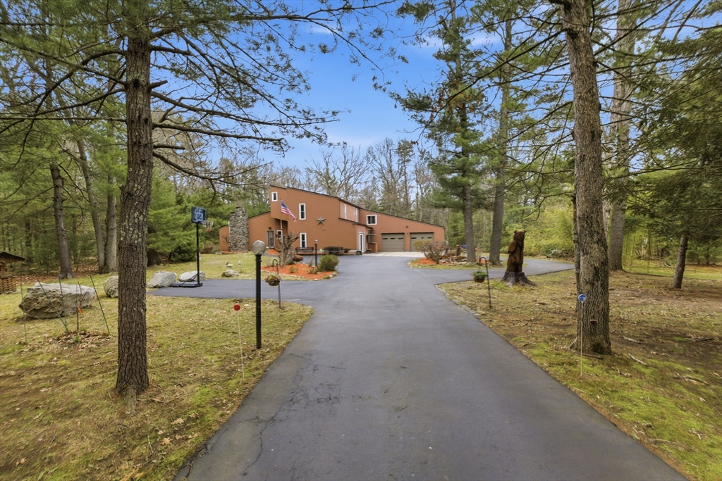 Maximize your outdoor freedom with this massive 4.48-acre combined parcel—a truly rare find. This exceptional three-level contemporary estate is thoughtfully curated for the discerning buyer seeking both serenity and scale. Rich natural wood finishes flow seamlessly throughout the interior, lending warmth and understated elegance to the home’s sophisticated, lodge-inspired aesthetic. A dramatic open-concept layout centers around a grand stone fireplace, while the expansive eat-in kitchen is perfectly suited for both intimate gatherings and elevated entertaining. Spanning three levels, the residence offers a remarkable sense of volume and versatility, including a dedicated top-floor office retreat and an additional flexible living space ideal for a media lounge, library, or private family suite. Outdoors, a private, resort-like retreat awaits with an expansive patio, wraparound driveway, and spacious two-car garage. Experience your very own full basketball and tennis court. Welcome Home