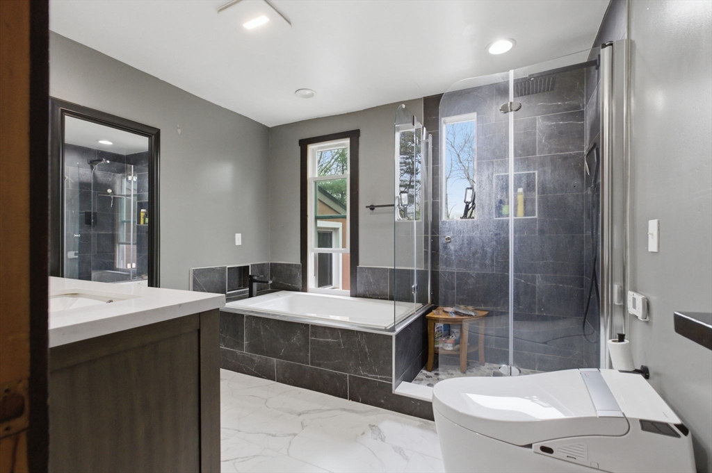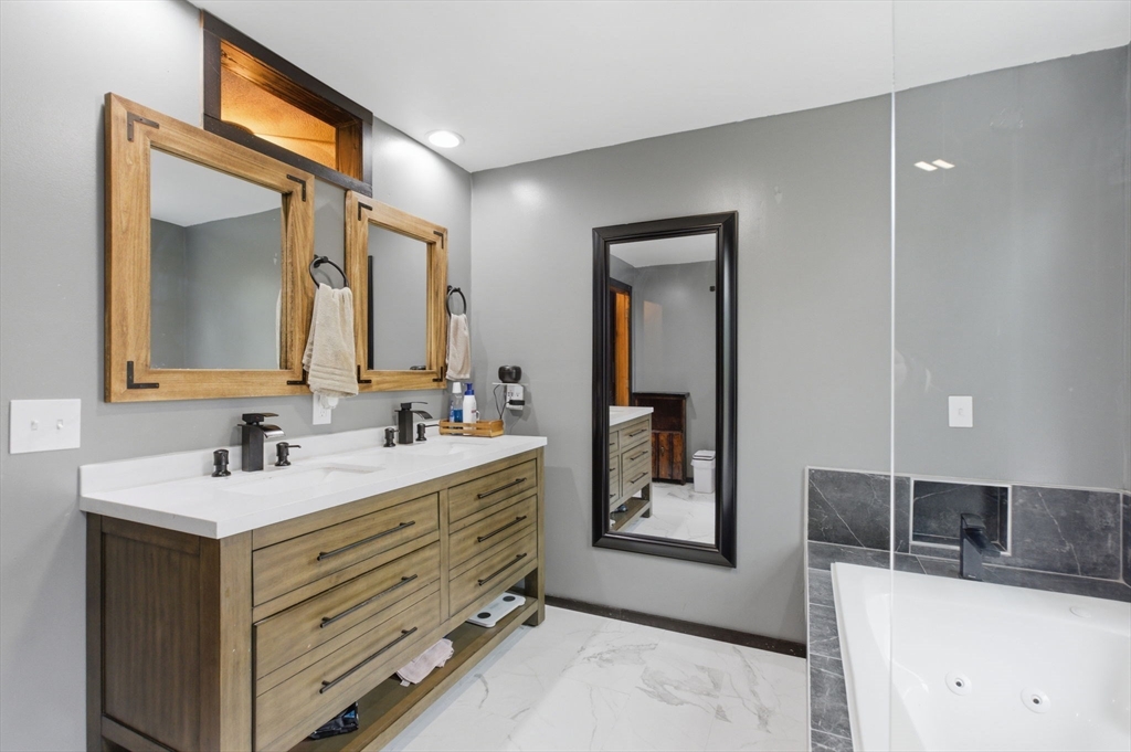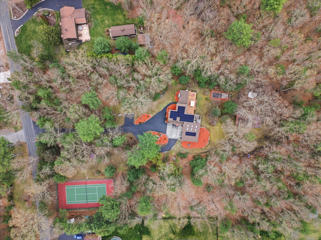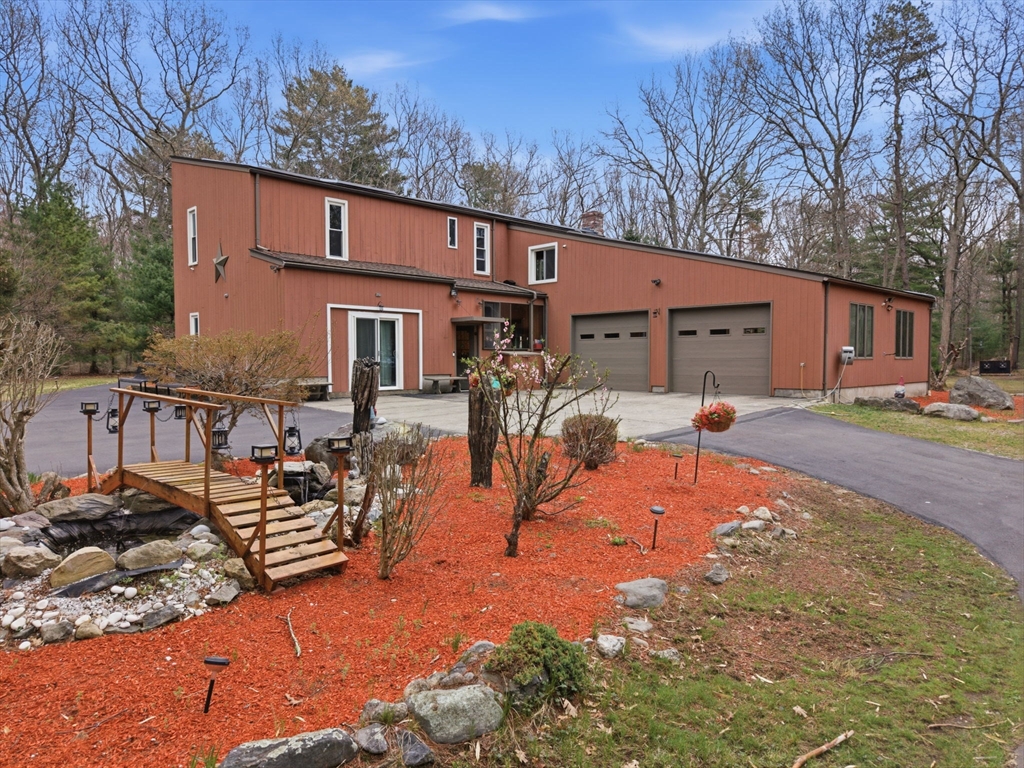 Maximize your outdoor freedom with this massive 4.48-acre combined parcel—a truly rare find. This exceptional three-level contemporary estate is thoughtfully curated for the discerning buyer seeking both serenity and scale. Rich natural wood finishes flow seamlessly throughout the interior, lending warmth and understated elegance to the home’s sophisticated, lodge-inspired aesthetic. A dramatic open-concept layout centers around a grand stone fireplace, while the expansive eat-in kitchen is perfectly suited for both intimate gatherings and elevated entertaining. Spanning three levels, the residence offers a remarkable sense of volume and versatility, including a dedicated top-floor office retreat and an additional flexible living space ideal for a media lounge, library, or private family suite. Outdoors, a private, resort-like retreat awaits with an expansive patio, wraparound driveway, and spacious two-car garage. Experience your very own full basketball and tennis court. Welcome Home
