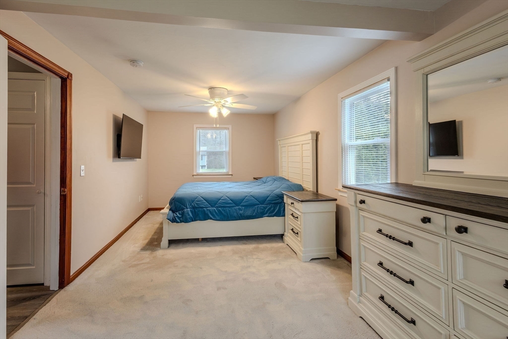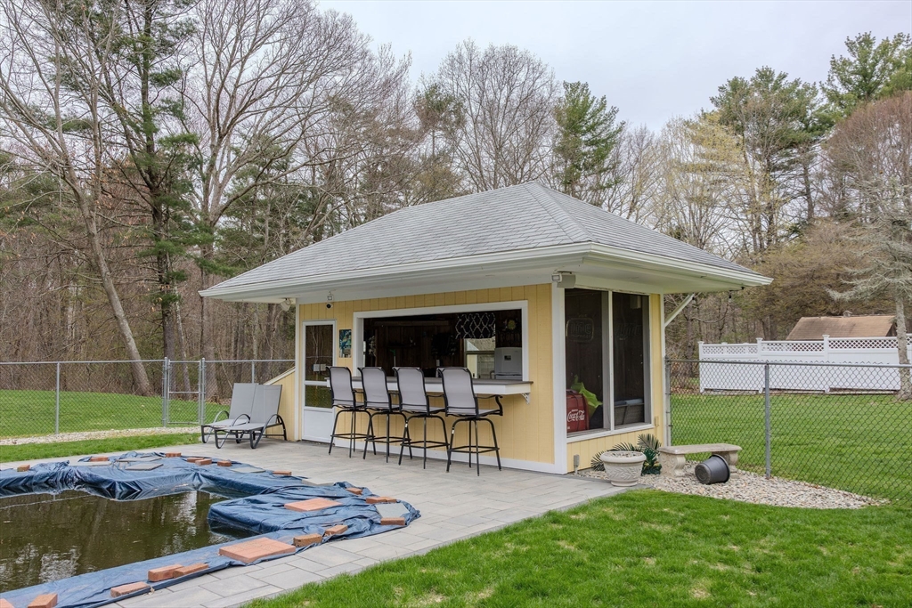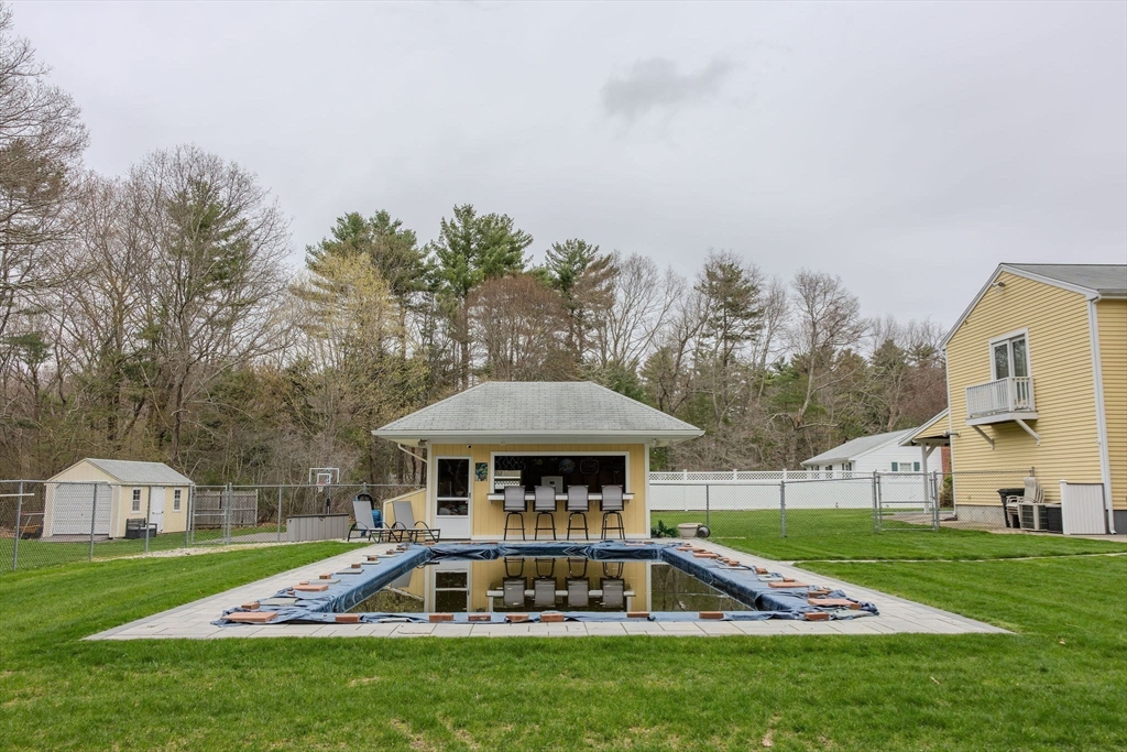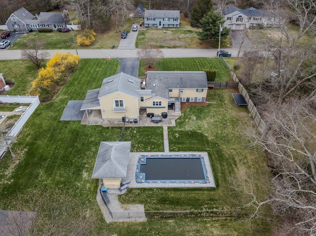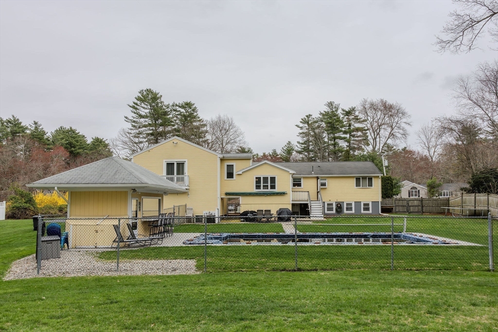 Nestled on a quiet cul-de-sac near the Hanover/Pembroke line, this exceptional home offers the perfect blend of comfort, space, and versatility. Meticulously maintained and in excellent condition, the open floor plan is ideal for both everyday living and entertaining. The kitchen features crisp white cabinetry, Corian countertops, and a sun-filled eat-in area, seamlessly flowing into a stunning family room with cathedral ceilings. Offering three bedrooms, three full bathrooms, and a spacious front-to-back primary suite, the home provides both functionality and comfort. The finished lower level presents a flexible in-law setup, ideal for extended family or additional living space. Step outside to your private backyard oasis—complete with an inground pool, charming cabana, and a beautifully landscaped, level acre lot with irrigation and full fencing—perfect for summer gatherings. An attached oversized heated garage with a dedicated workshop area adds even more appeal. Book your showing!