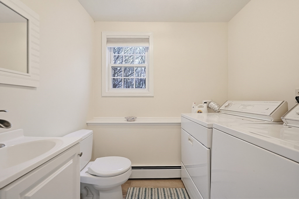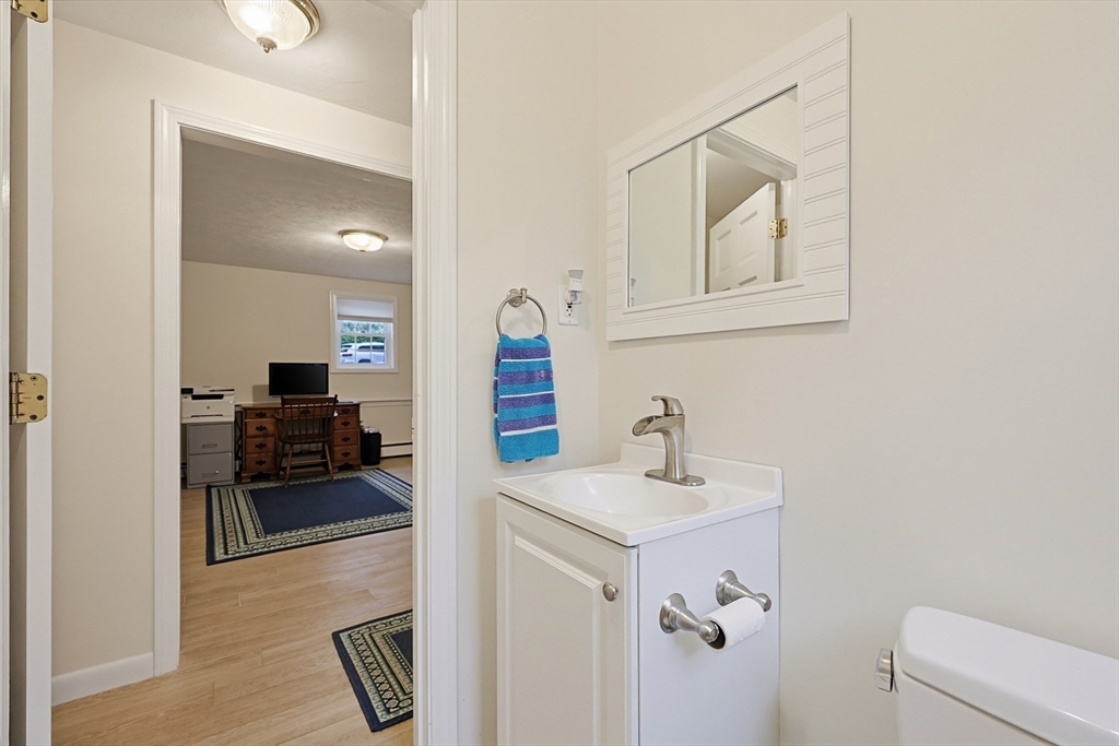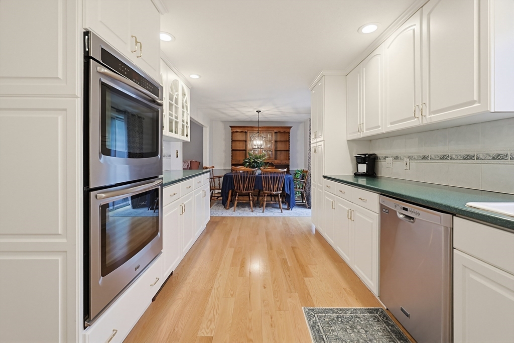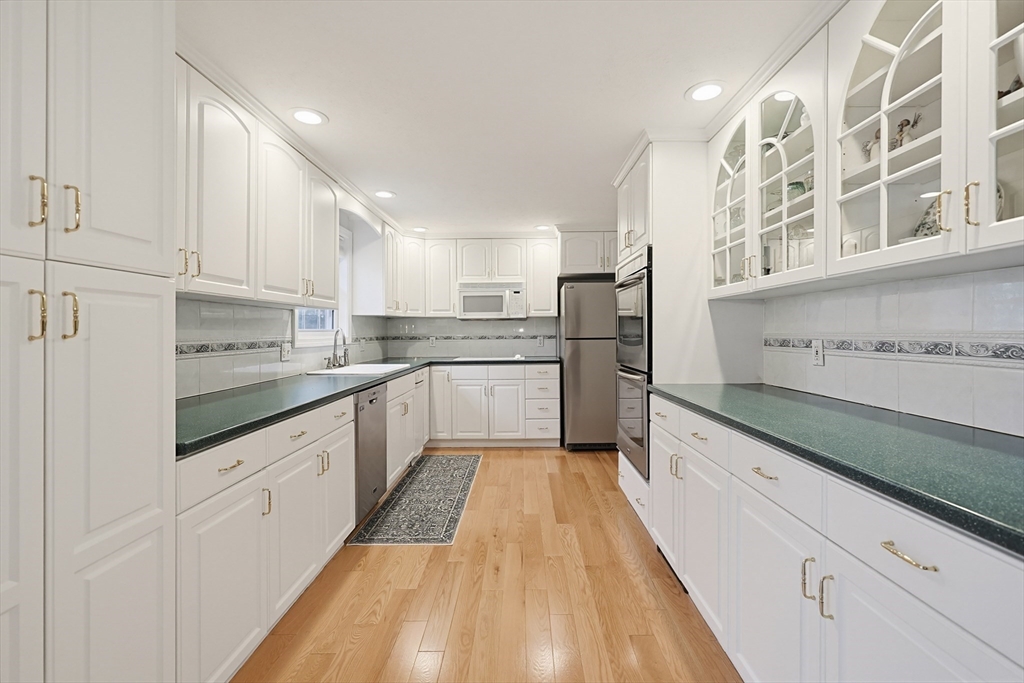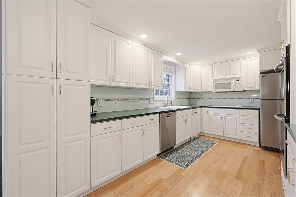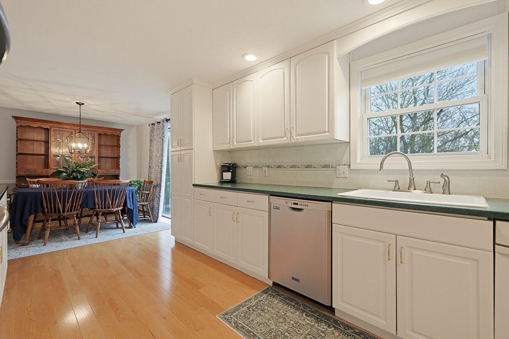 Welcome to this well-maintained three-bedroom 2.5 bath home ideally located in a desirable area just minutes from town. It features an open floor plan that seamlessly connects the living room, dining area, and bright white kitchen with Corian countertops. Highlights include gleaming wood floors throughout the main level, a primary bedroom with en-suite bath, two additional generous size bedrooms and full bath. The lower level showcases durable tile plank flooring, a fireside family room with built-in shelves, home office, half bath, laundry area and utility room. Additional space to relax or entertain, especially after enjoying the in-ground saltwater pool. Outside you will find a private backyard, storage shed and one-car garage. Numerous updates are throughout (see disclosures). Holliston offers a quaint, walkable downtown and the popular Rail Trail for outside recreation!