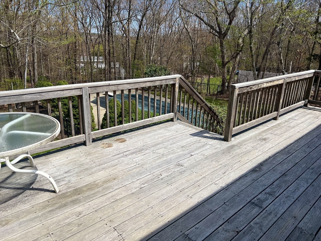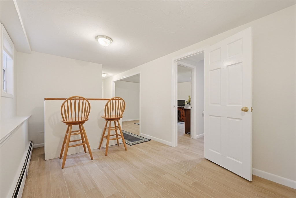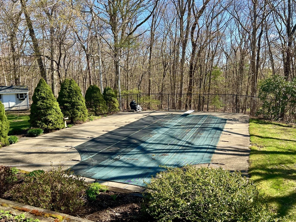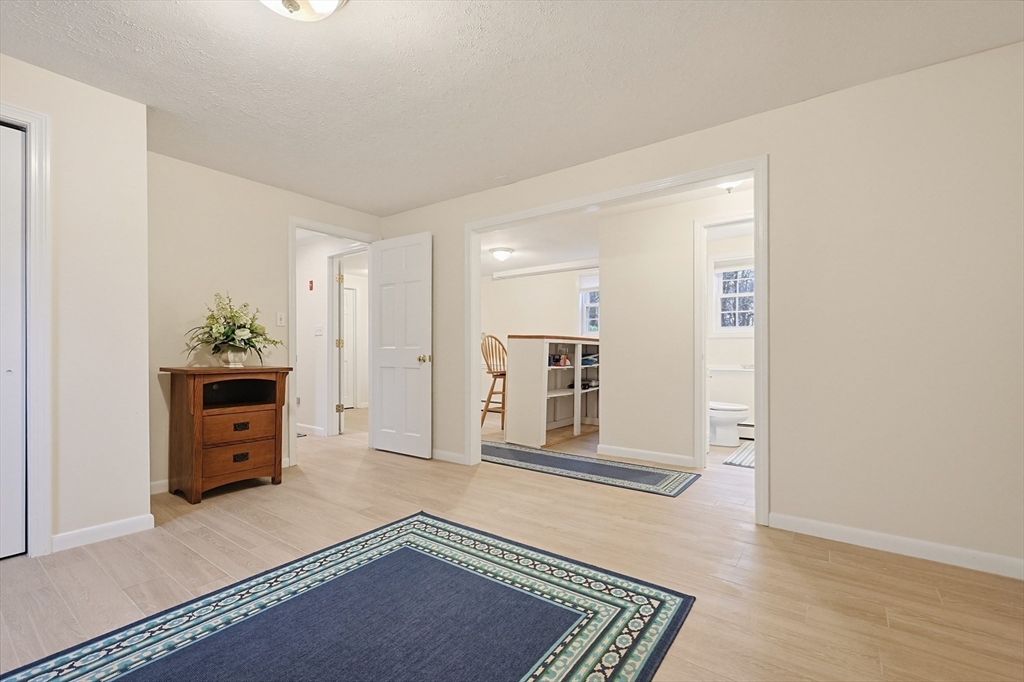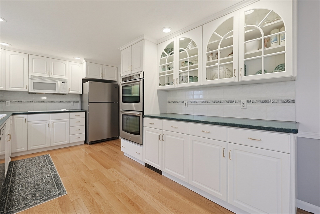 Welcome to this well-maintained three-bedroom 2.5 bath home ideally located in a desirable area just minutes from town. It features an open floor plan that seamlessly connects the living room, dining area, and bright white kitchen with Corian countertops. Highlights include gleaming wood floors throughout the main level, a primary bedroom with en-suite bath, two additional generous size bedrooms and full bath. The lower level showcases durable tile plank flooring, a fireside family room with built-in shelves, home office, half bath, laundry area and utility room. Additional space to relax or entertain, especially after enjoying the in-ground saltwater pool. Outside you will find a private backyard, storage shed and one-car garage. Numerous updates are throughout (see disclosures). Holliston offers a quaint, walkable downtown and the popular Rail Trail for outside recreation!