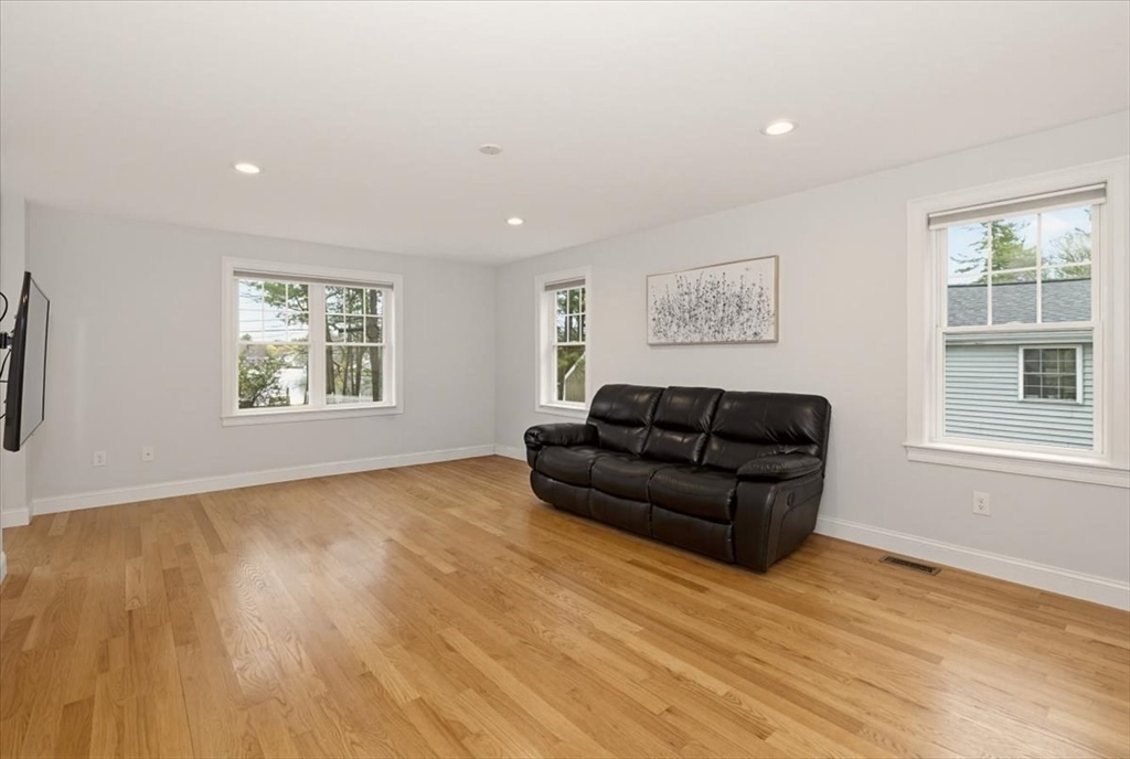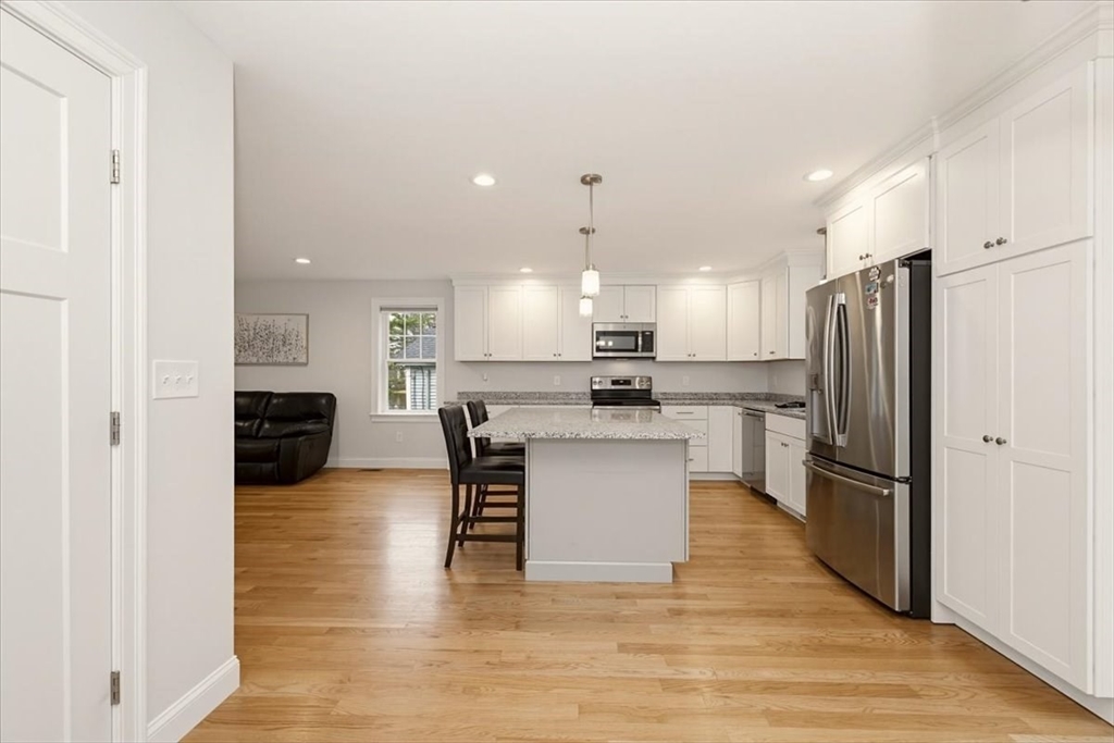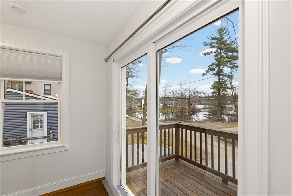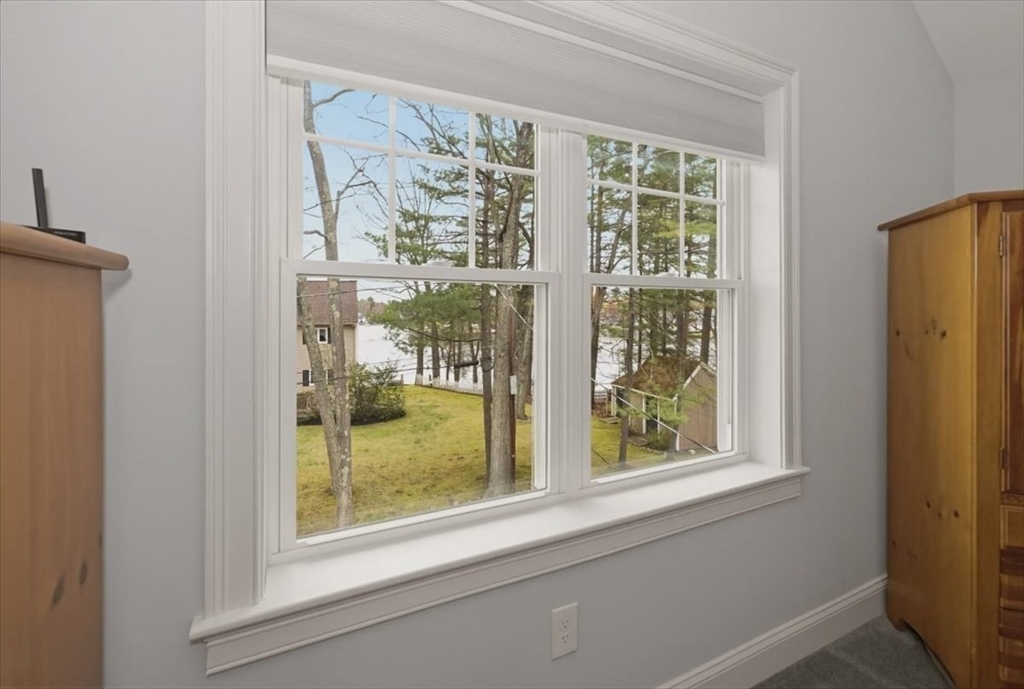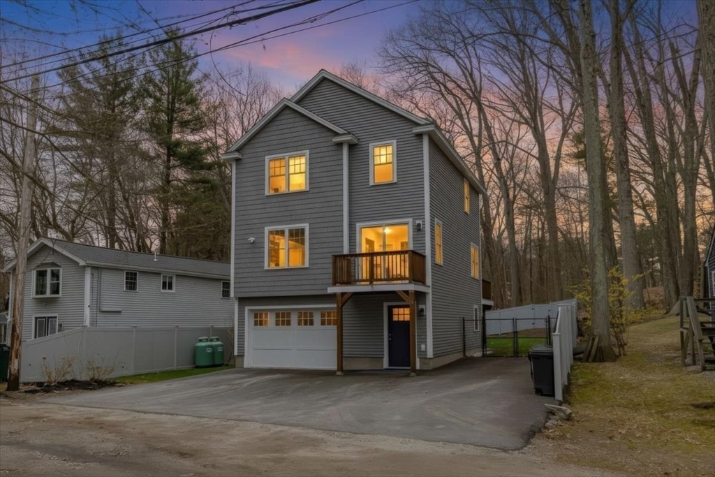 Built in 2019, this stunning turnkey home offers refined lakeside living across from Nabnasset Lake. Tucked away on a quiet dead-end road, it combines a peaceful, scenic setting with easy highway access, parks, the town beach, and an association beach with boat launch. Thoughtfully designed with high-quality craftsmanship throughout, the home has been meticulously maintained and enhanced with recent upgrades, including a new tankless water heater and furnace (2025), a concrete patio, and an epoxy-finished garage floor. Inside, a mudroom leads to a flexible bonus space ideal for a home office or potential 3rd bedroom, with sliders to a fenced yard. The open-concept main level features a modern kitchen with SS appliances, granite counters, and a dining area that opens to a spacious deck. The bright living room offers tranquil lake views and a private balcony. Upstairs, the primary bedroom includes a walk-in closet with scenic views, along with a second bedroom, full bath, and laundry.