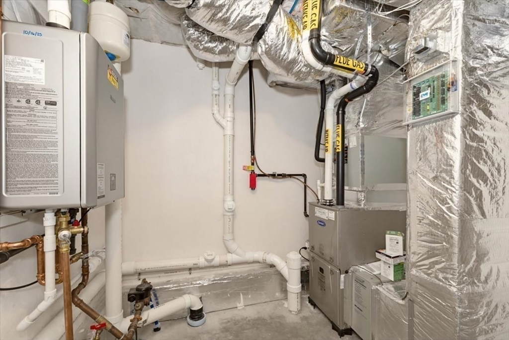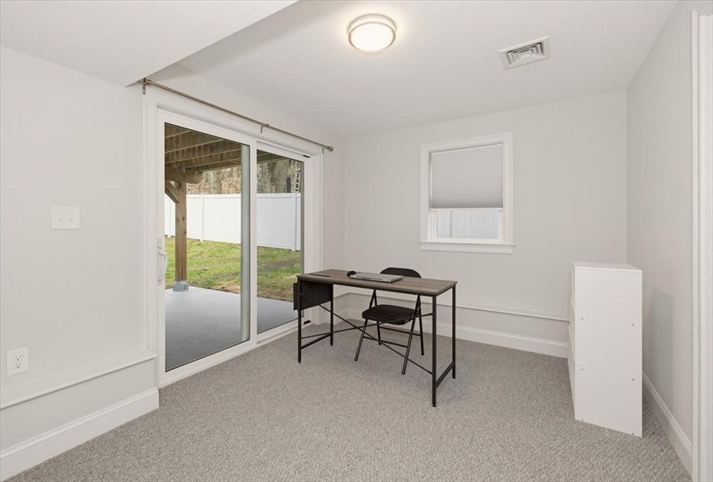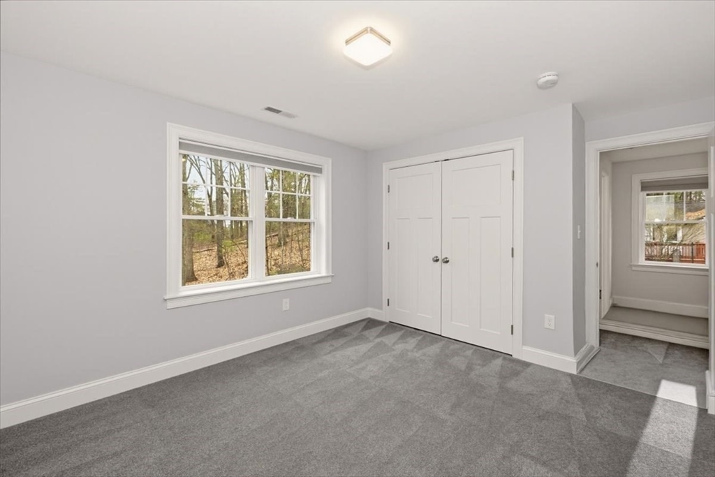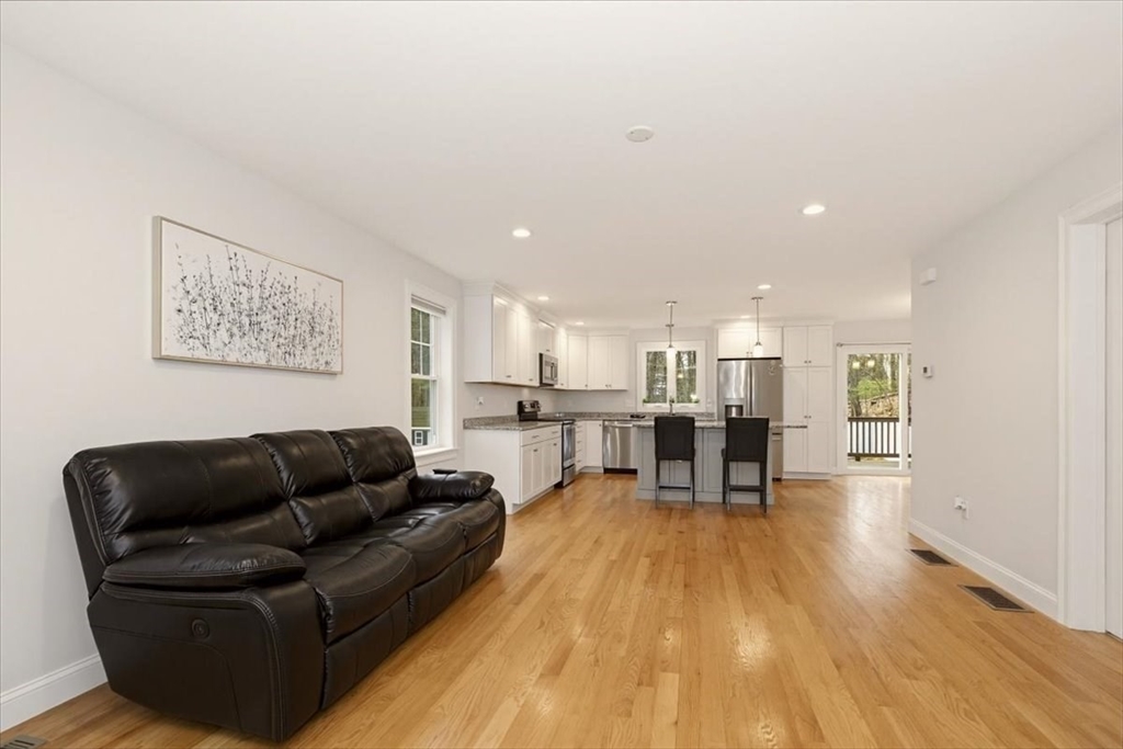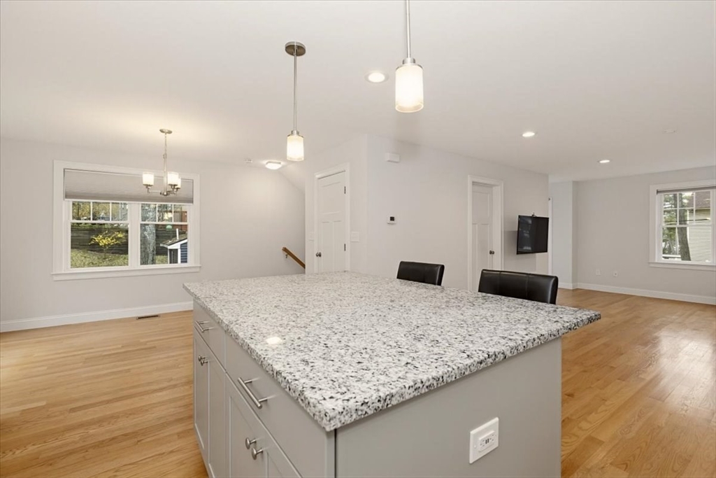 Built in 2019, this stunning turnkey home offers refined lakeside living across from Nabnasset Lake. Tucked away on a quiet dead-end road, it combines a peaceful, scenic setting with easy highway access, parks, the town beach, and an association beach with boat launch. Thoughtfully designed with high-quality craftsmanship throughout, the home has been meticulously maintained and enhanced with recent upgrades, including a new tankless water heater and furnace (2025), a concrete patio, and an epoxy-finished garage floor. Inside, a mudroom leads to a flexible bonus space ideal for a home office or potential 3rd bedroom, with sliders to a fenced yard. The open-concept main level features a modern kitchen with SS appliances, granite counters, and a dining area that opens to a spacious deck. The bright living room offers tranquil lake views and a private balcony. Upstairs, the primary bedroom includes a walk-in closet with scenic views, along with a second bedroom, full bath, and laundry.