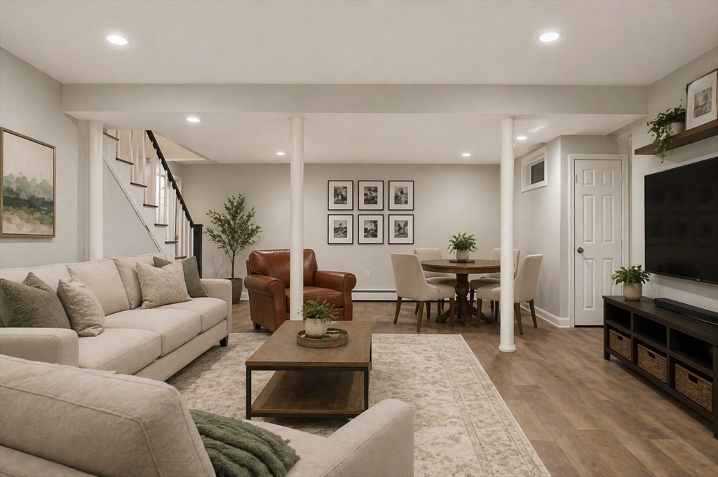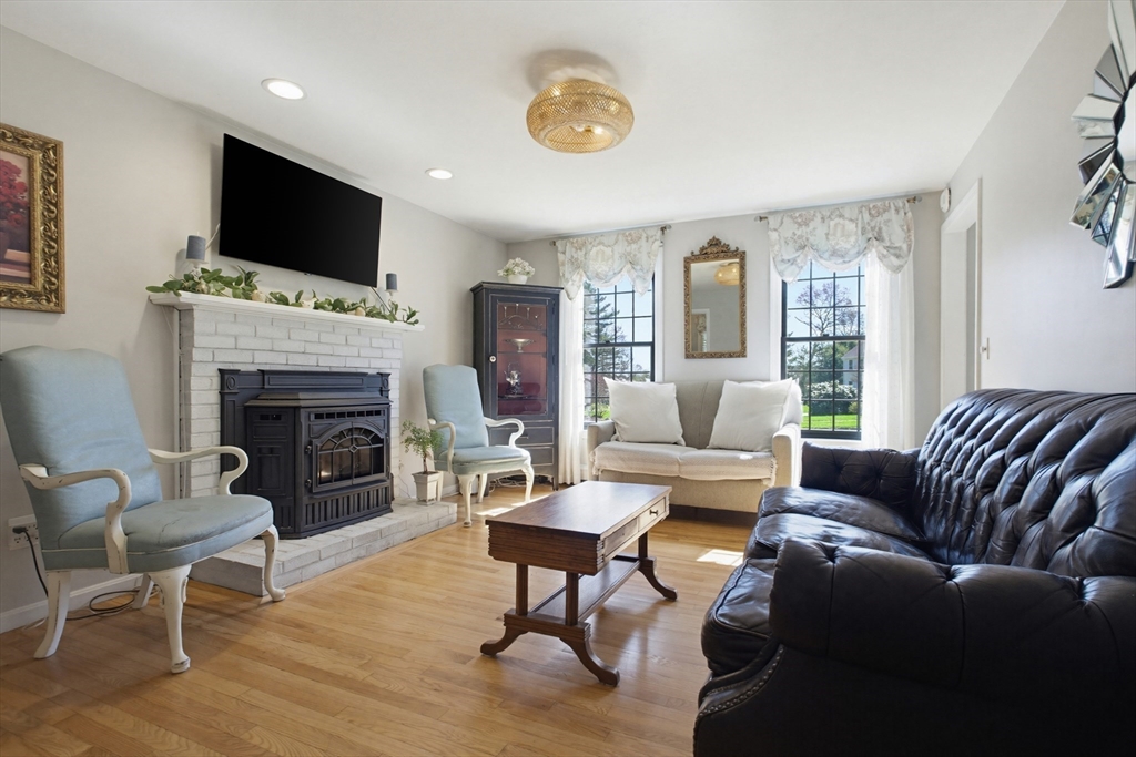 Beautiful Brick Front Colonial with backyard oasis in desirable neighborhood! This lovingly cared for home is currently set up as a 3-bedroom home but has a 4-bedroom septic system and flexible layout to convert the first floor office space into a potential bedroom. The open floor plan features a front to back living room with cozy wood pellet stove that flows right into the updated eat-in kitchen. There is a dining room off the front entry that opens into the office with a glass door leading to the kitchen. A convenient full bathroom right off the 2 car garage completes the first floor. The second floor features another full bathroom and three generous sized bedrooms. The primary bedroom is front to back and has an abundance of natural light. The finished lower level is perfect for a family room, playroom, or even another office space. Gorgeous 1 acre mature landscaped corner lot. Septic 2025 Roof 2024 Heating System 2021 - Complete list of updates attached!
