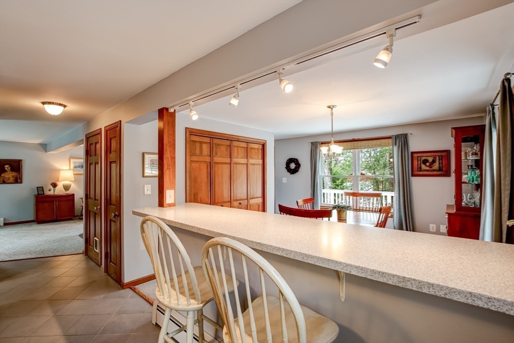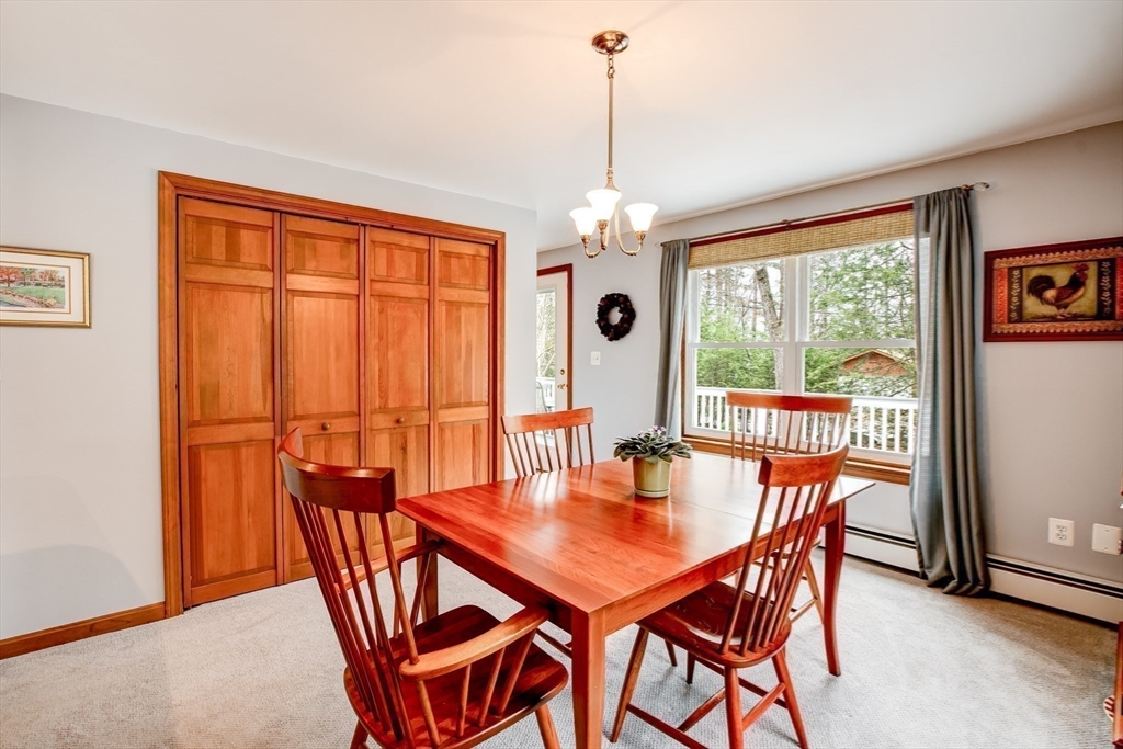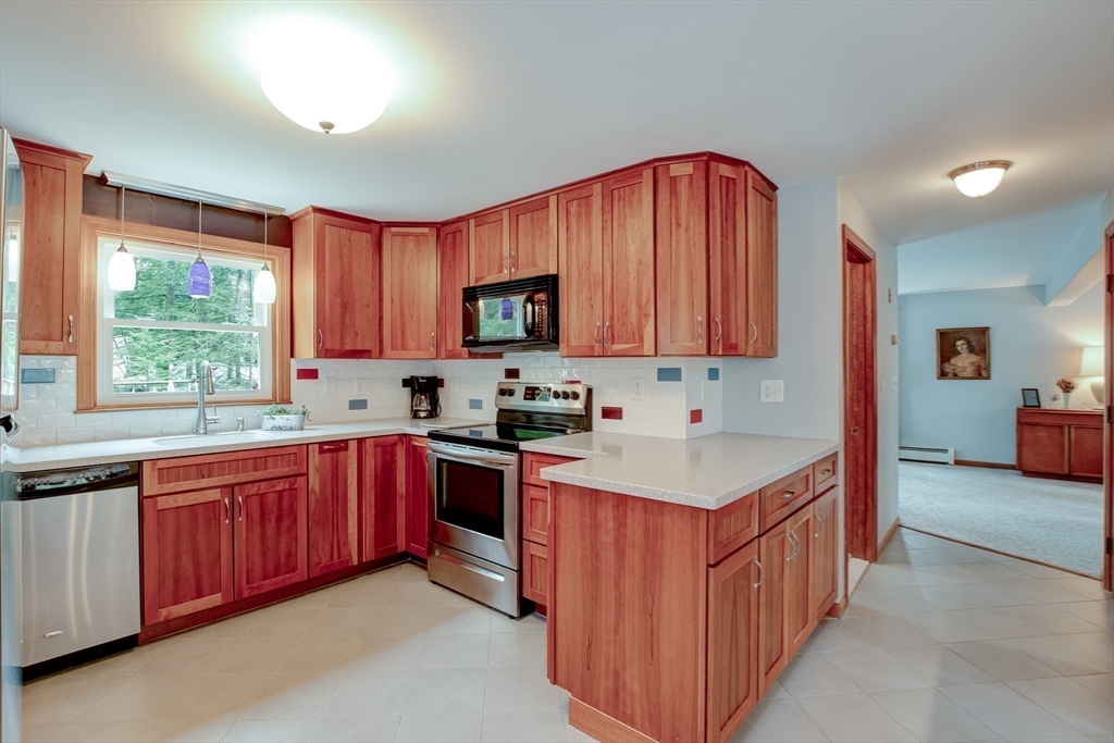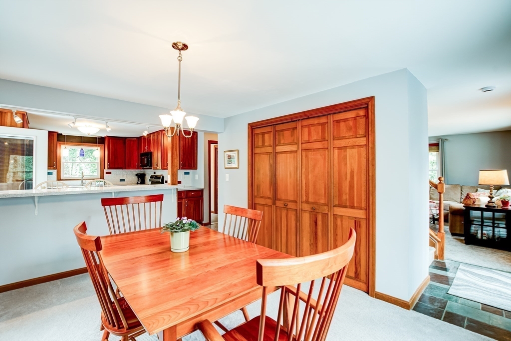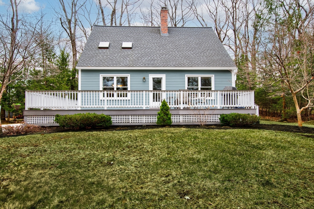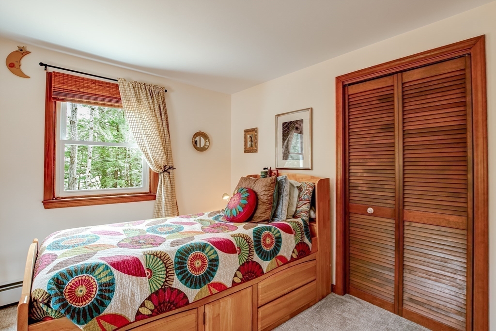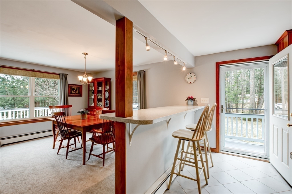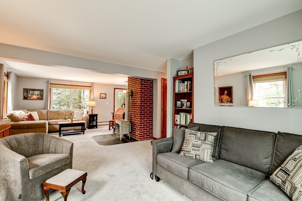 Paradise in the Sunset Lake area with water access just across the street and stunning sunsets! Located in the desirable Far Hills community, this 3-bedroom, 2 full bath Saltbox offers privacy and tranquility. Features include a 30x12 wraparound deck plus a 5x7 deck off the front-to-back primary bedroom. Spacious front-to-back living room with wood stove and rear deck access—ideal for entertaining. Dining room with countertop bar opens to kitchen with cherry cabinets, solid surface counters, tile backsplash, and ceramic tile flooring. Skylit bedroom adds natural light and charm. Recent updates: roof, oil tank, and storm doors (2025), plus 2-year-old electric panel with generator hookup. Set on nearly ½ acre with access to boating, kayaking, swimming, fishing, and more. Year-round living or getaway, minutes to beach, boat ramps, playground, and clubhouse.